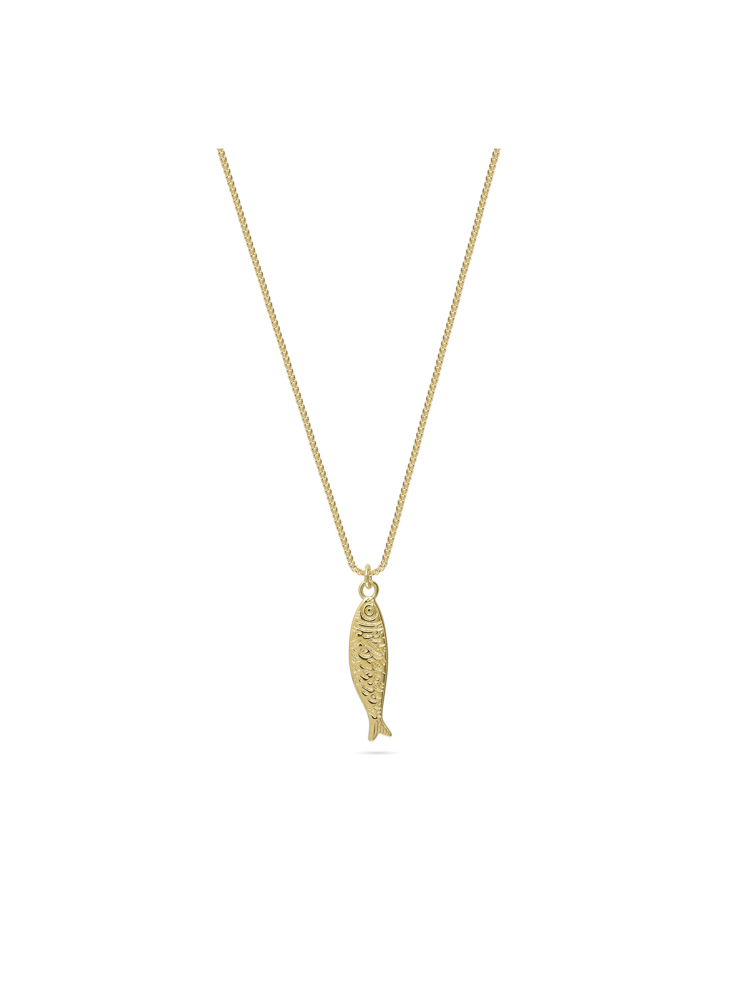 Fio com pendente, Banhado a Ouro, Nenhuma pedra, Sem cor, Peixe, Dourado, comprimento do pendente: 2.2 cm, largura do pendente: 0.5 cm, 2.95 gramas.