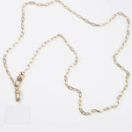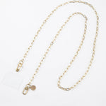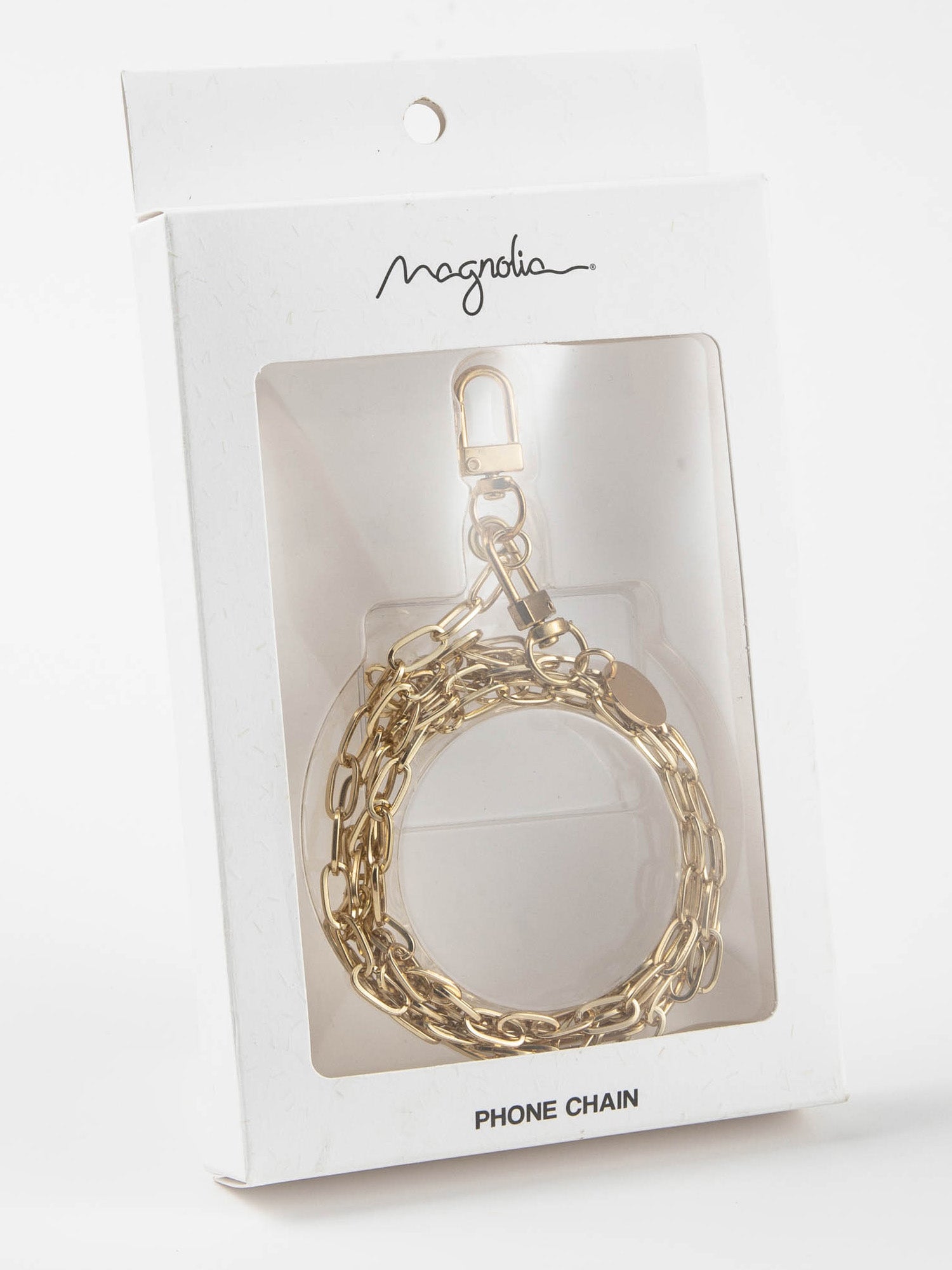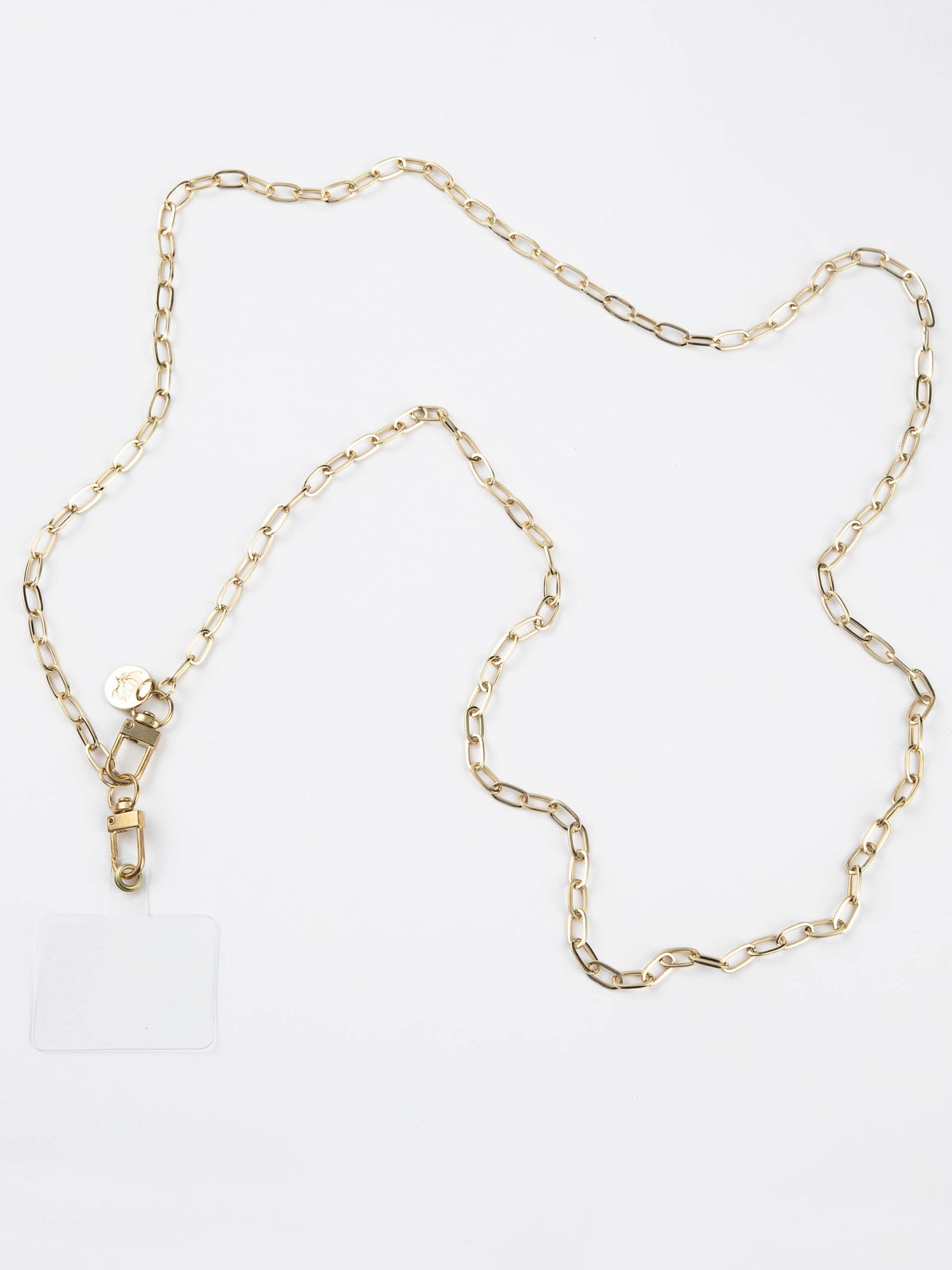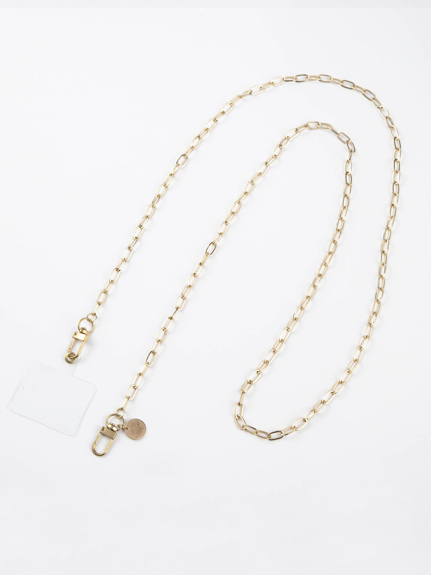 Corrente dourada para colocar o telemóvel à tiracolo.