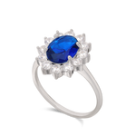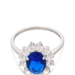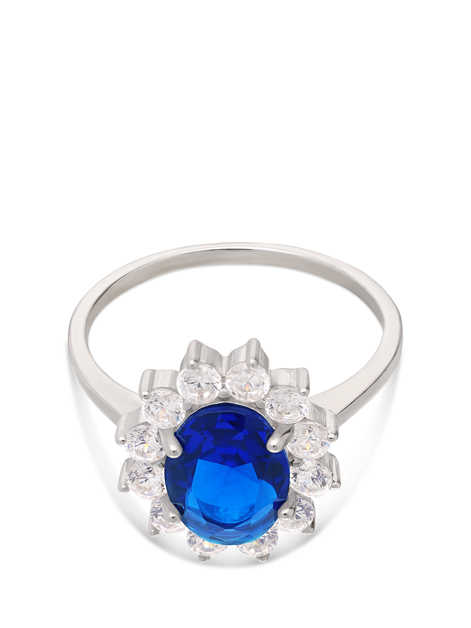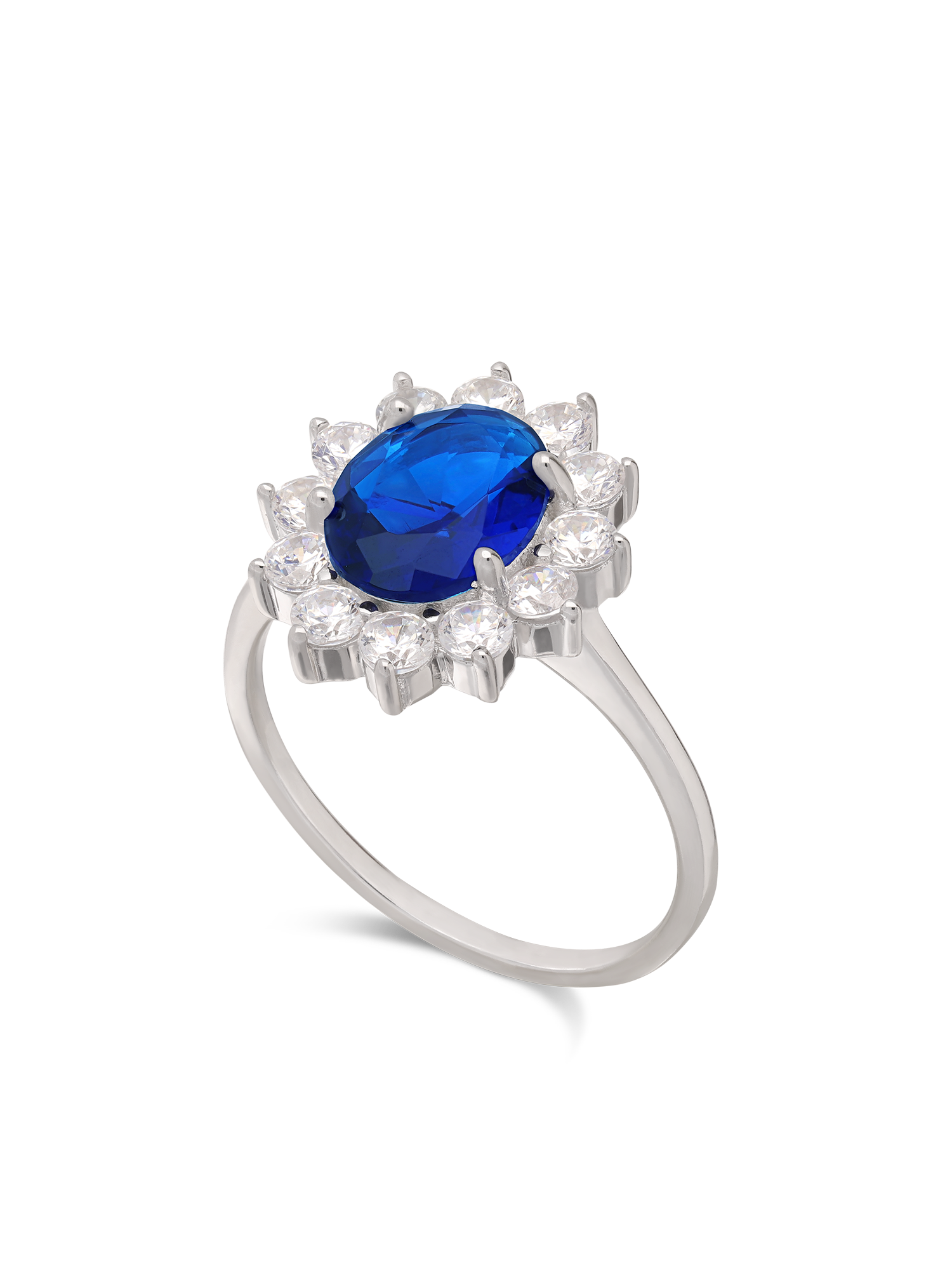 Anel Delicado, Prata de lei 925, Zircónia de cultivo, Azul, Claro, Círculo, Feito à mão,, Prateado, 3.00 gramas.