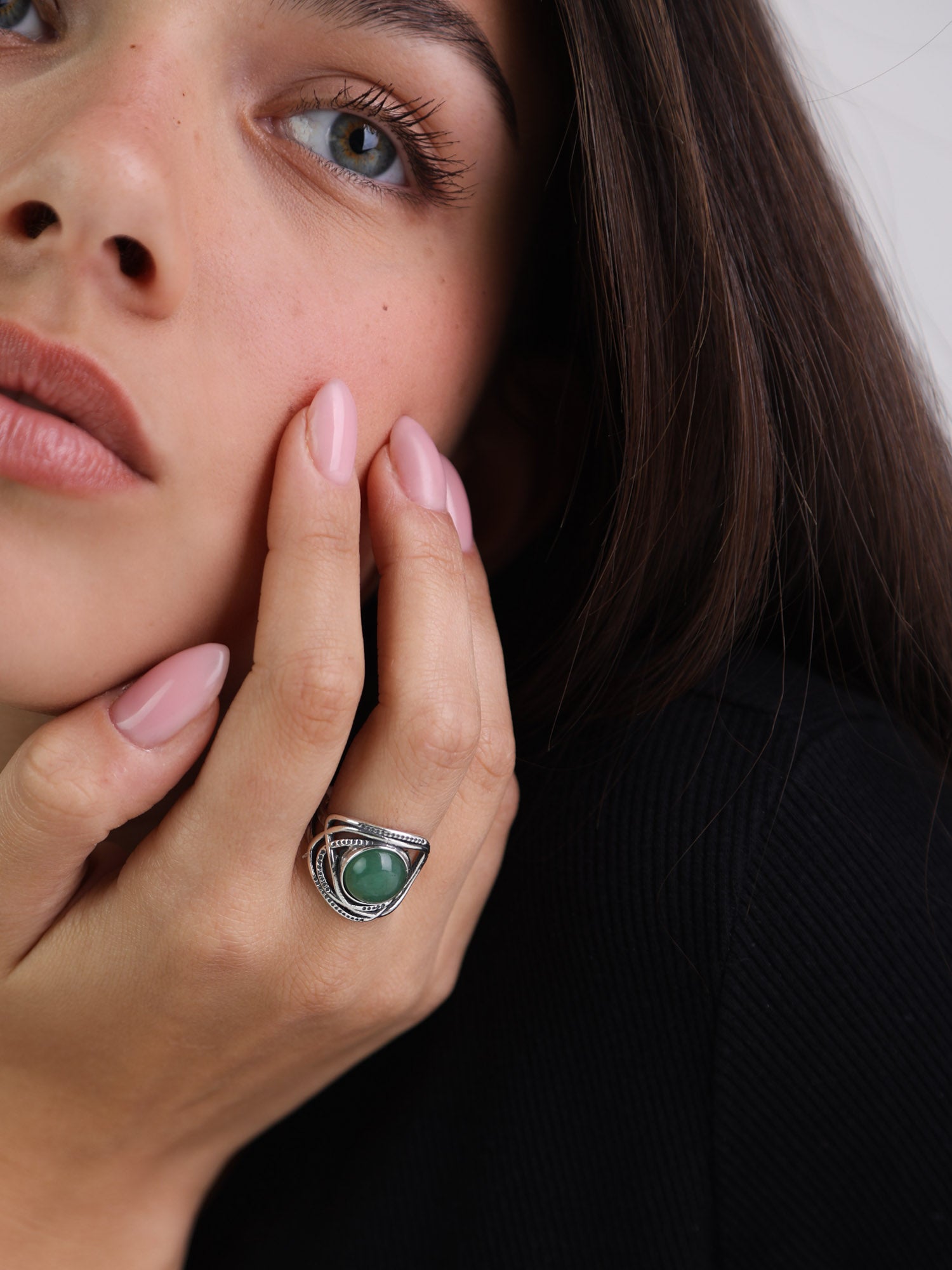 Anel em prata 925 com aventurina verde