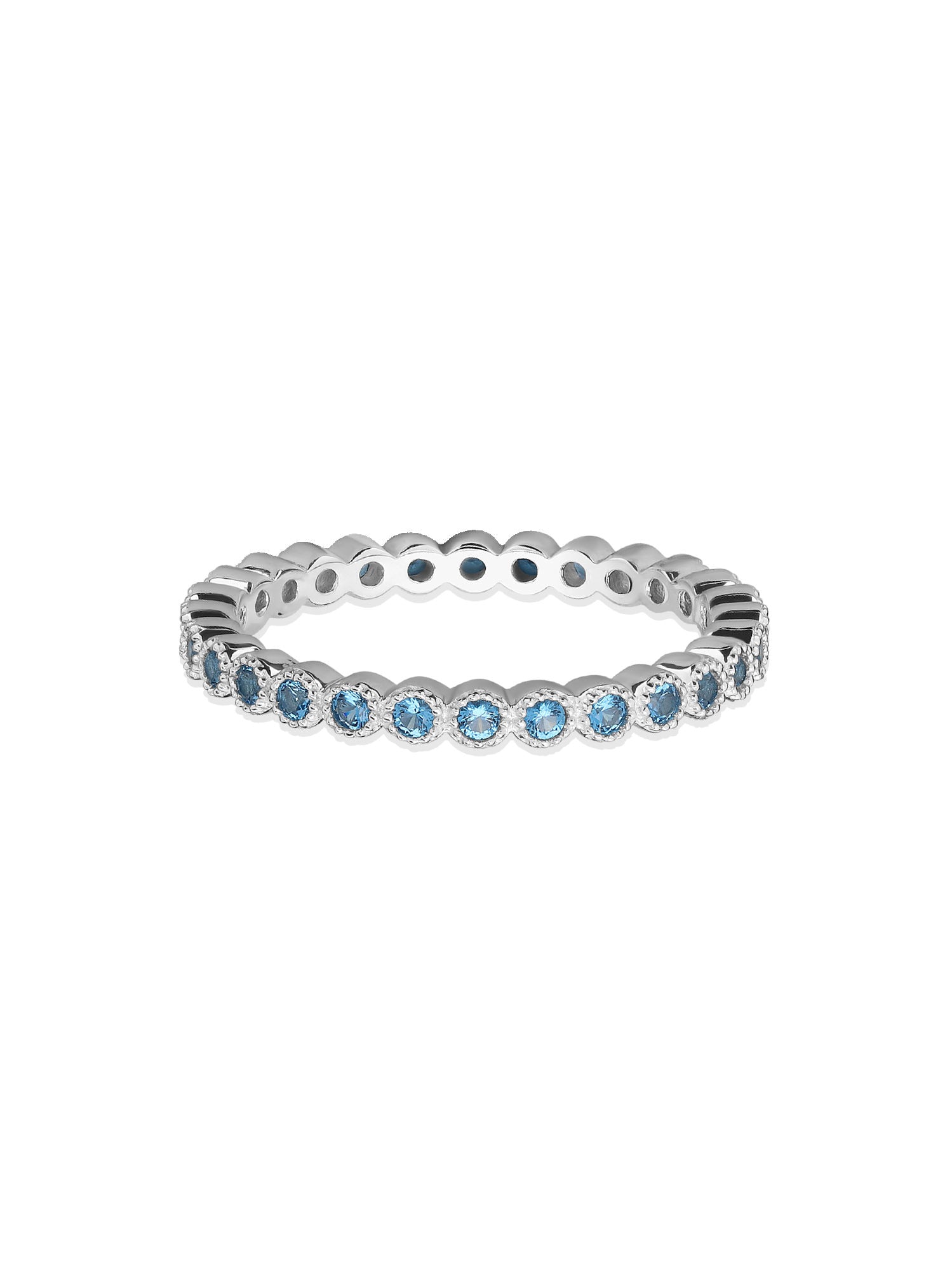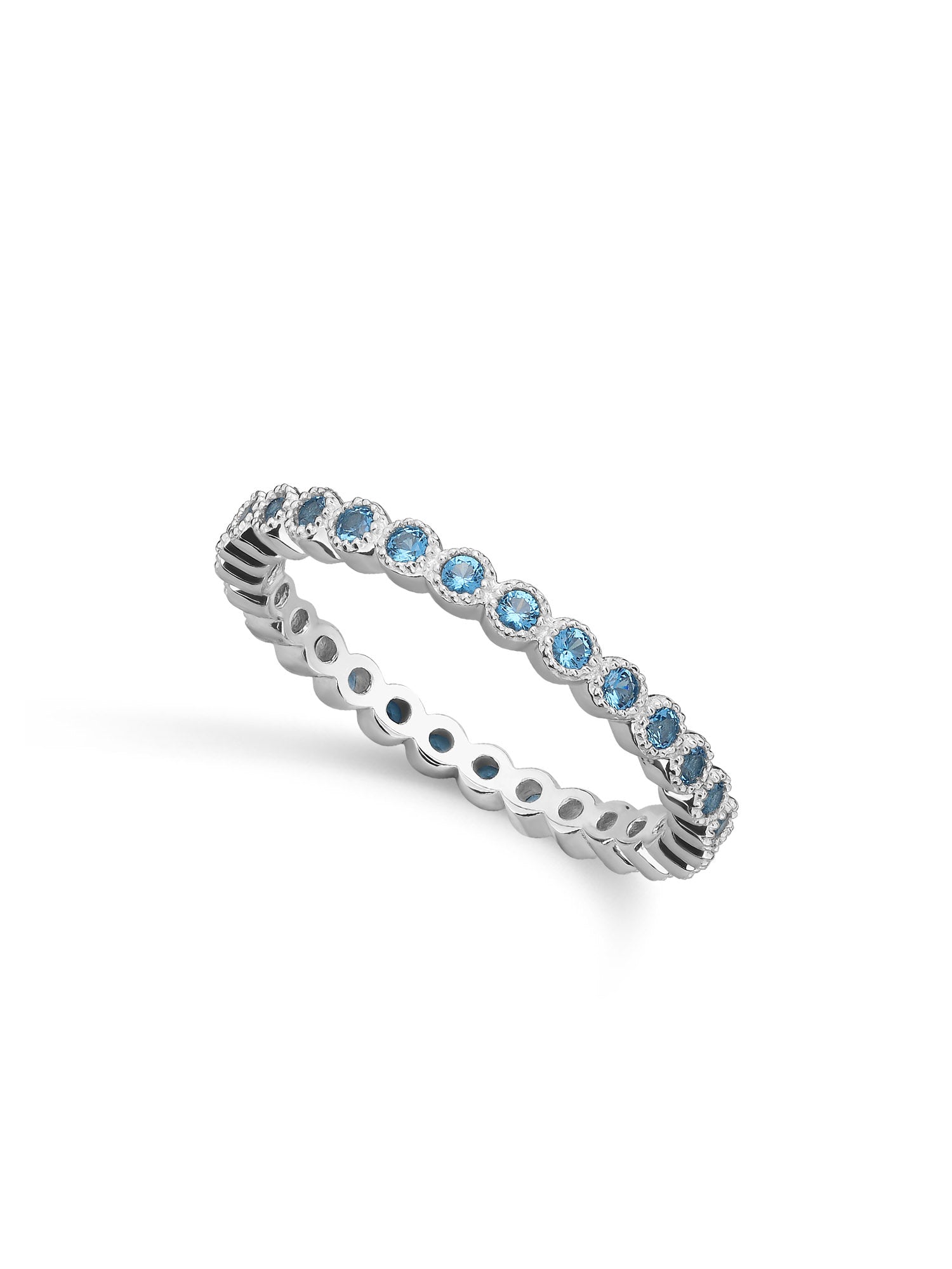 Anel Delicado, Prata de lei 925, Zircónia de cultivo, Azul céu, Círculo, Feito à mão,, Prateado, 1.58 gramas.