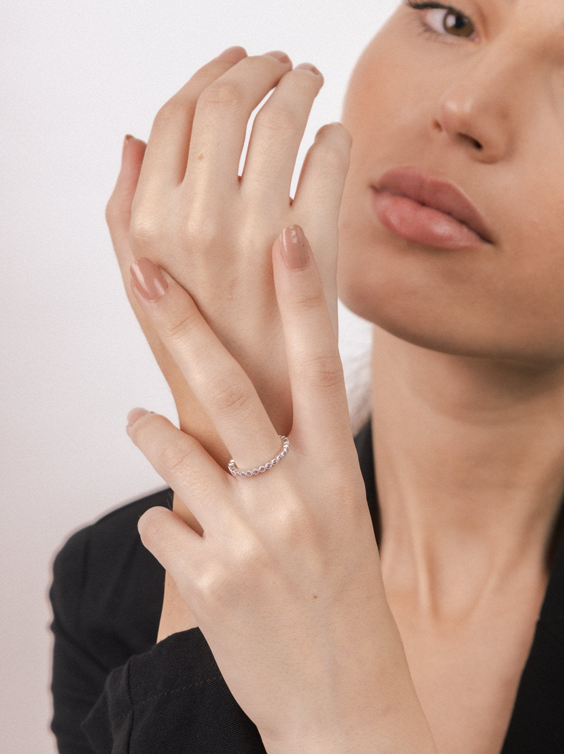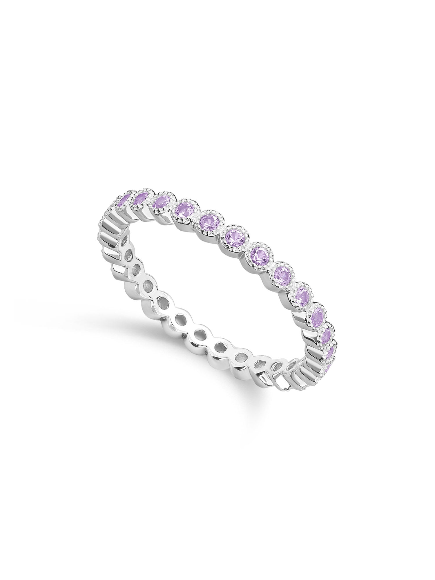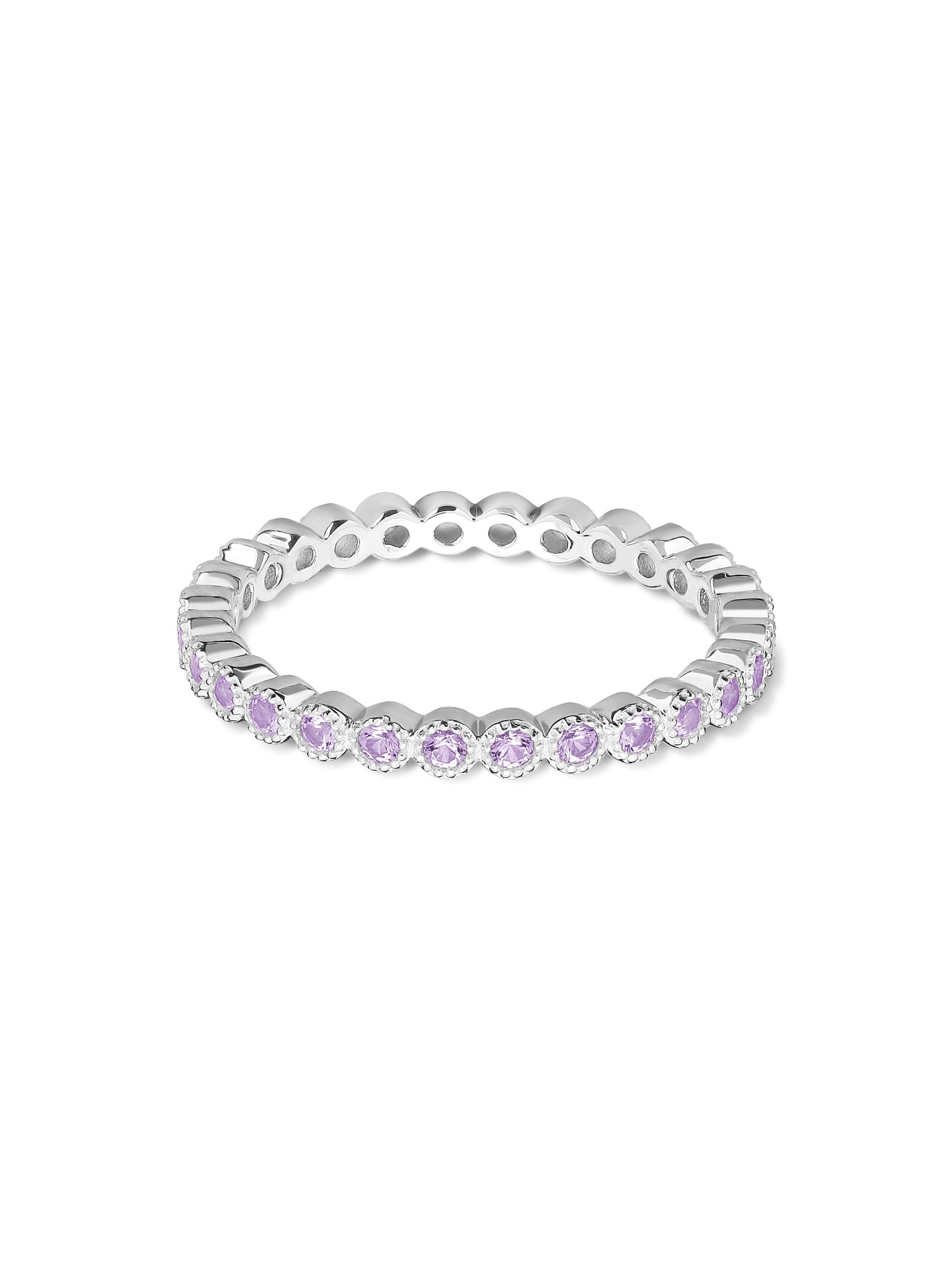 Anel Delicado, Prata de lei 925, Zircónia de cultivo, Violeta, Círculo, Feito à mão,, Prateado, 1.61 gramas.