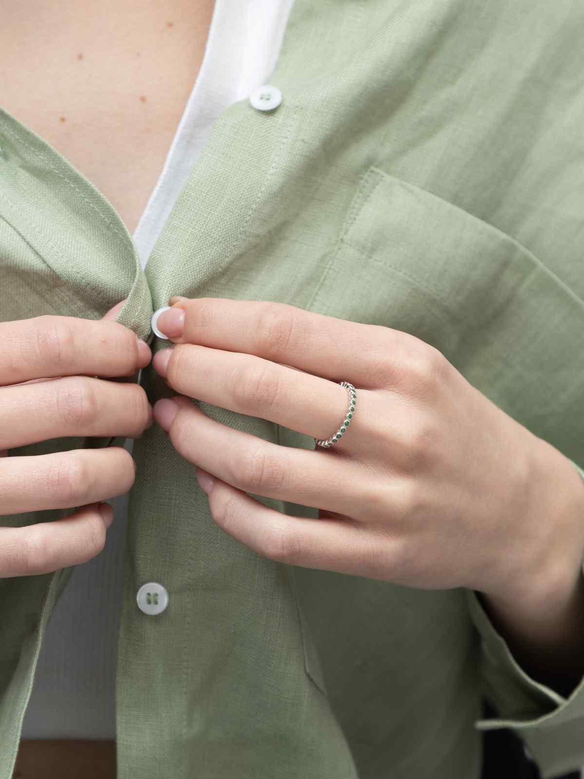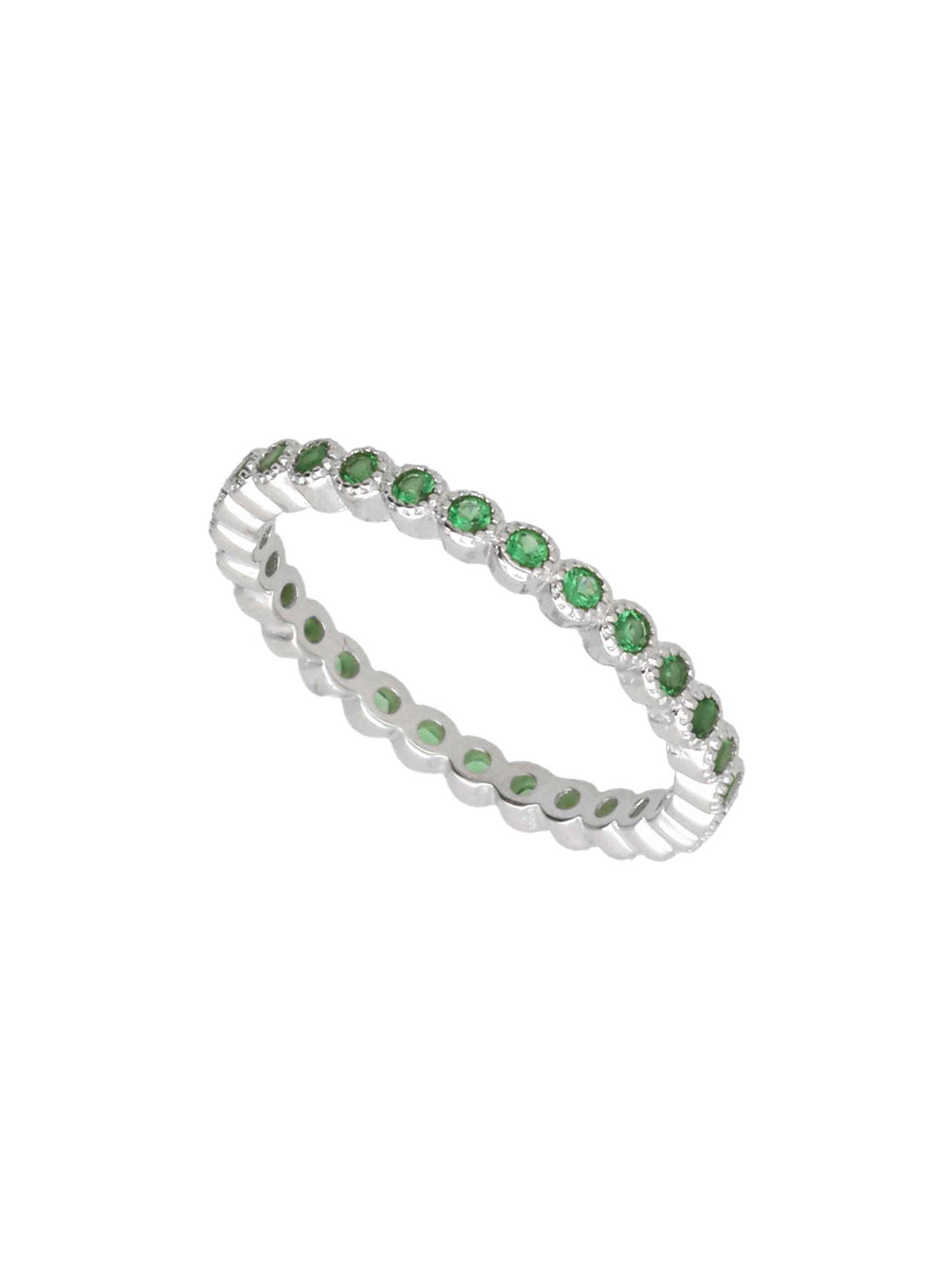 Anel Delicado, Prata de lei 925, Zircónia de cultivo, Verde, Círculo, Feito à mão,, Prateado, 1.51 gramas.