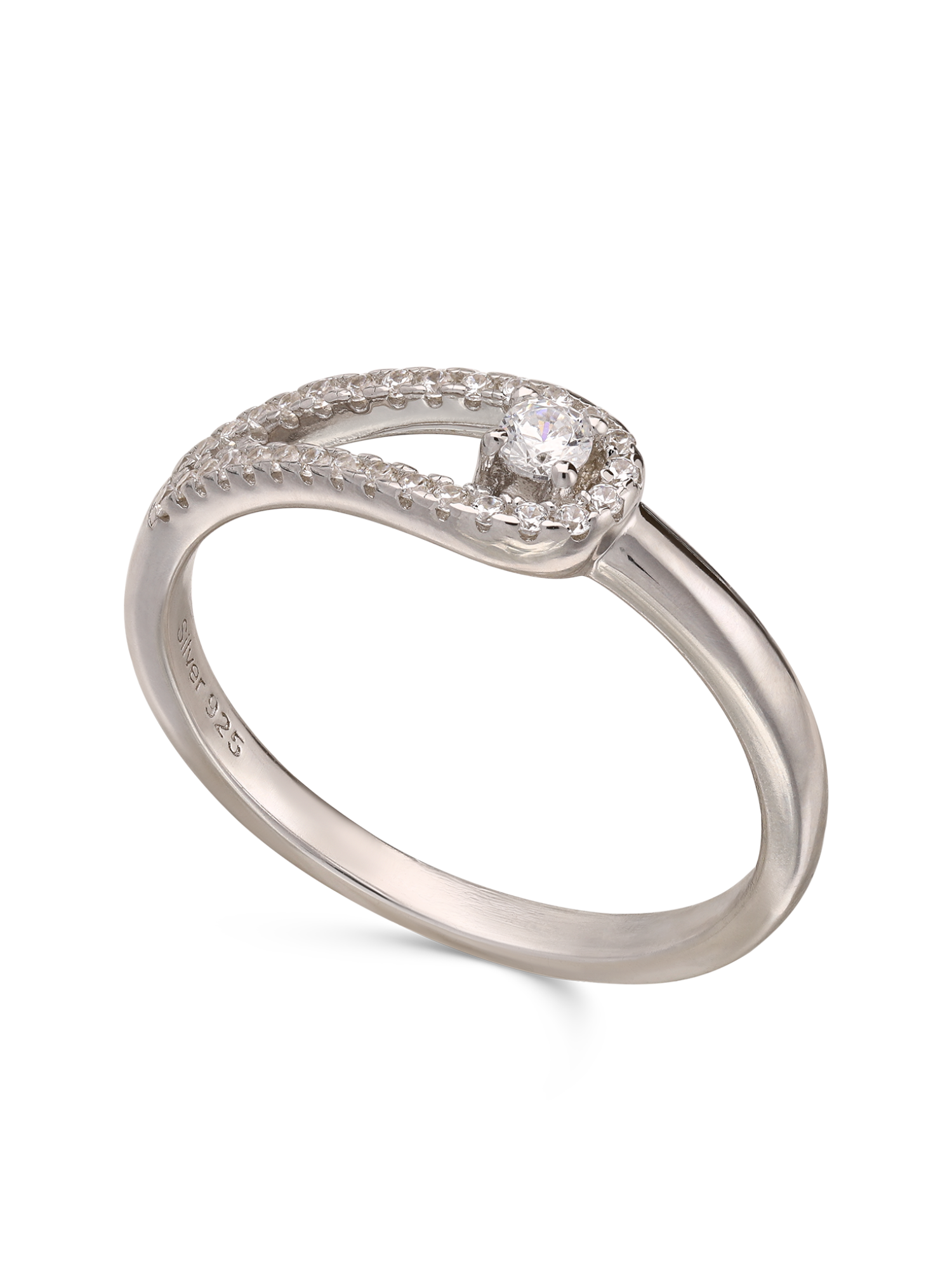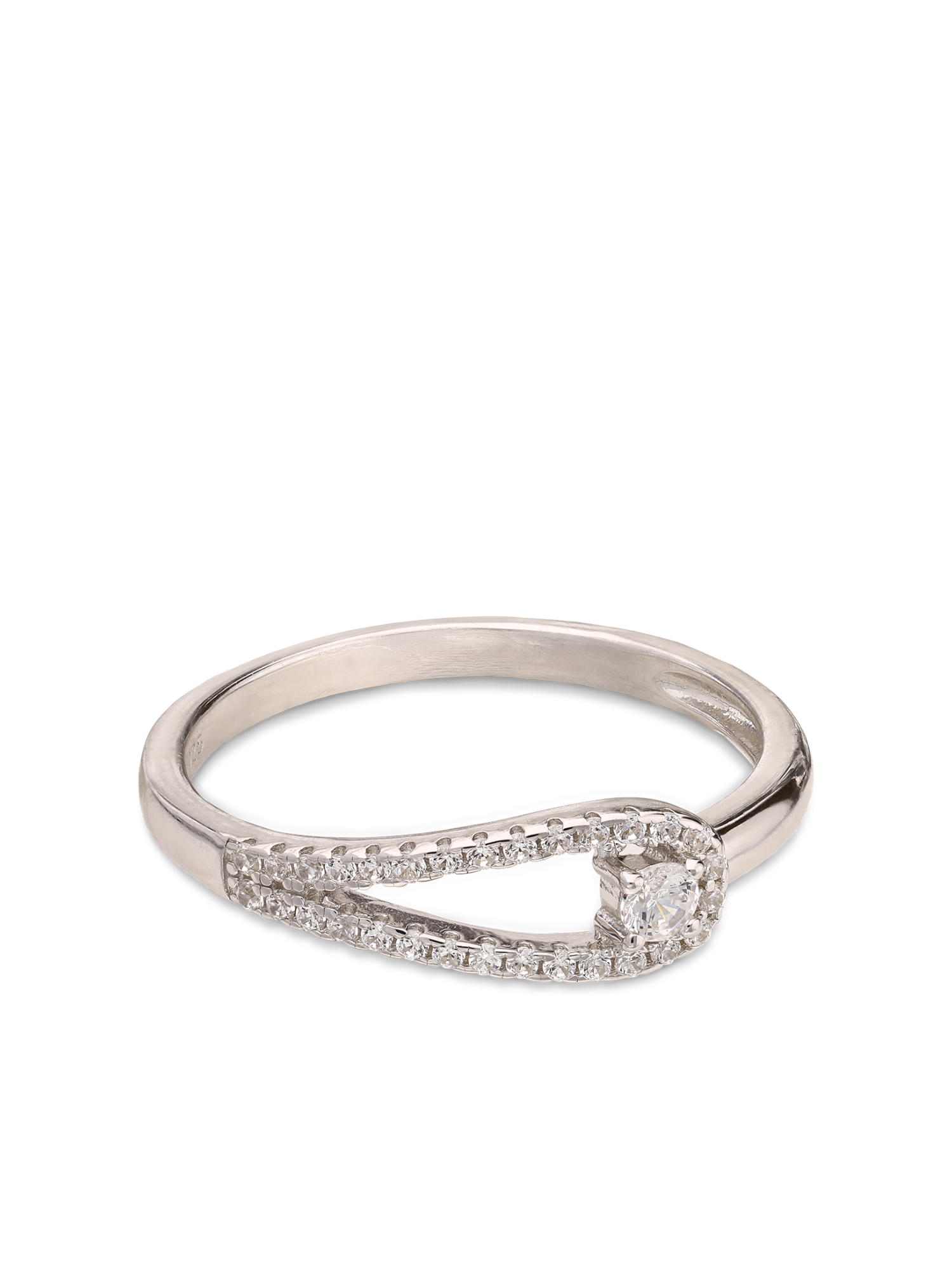 Anel Delicado, Prata de lei 925, Zircónia de cultivo, Claro, Redondo, Feito à mão,, Prateado, altura do anel: 0.5 cm, 1.80 gramas.