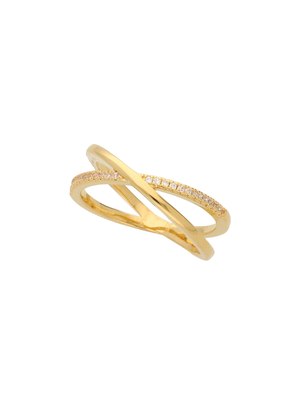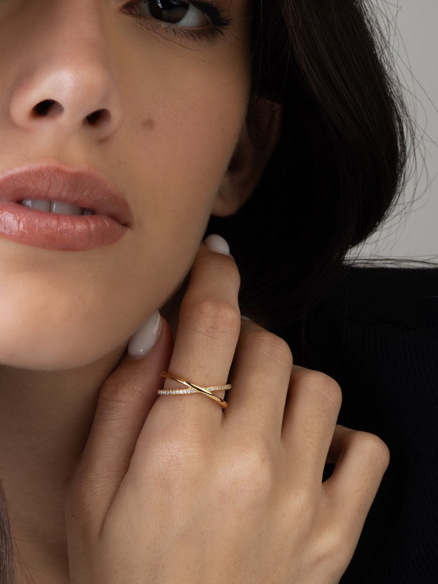 Anel Delicado, Banhado a Ouro, Zircónia de cultivo, Claro, Círculo, Feito à mão,, Dourado, 2.68 gramas.