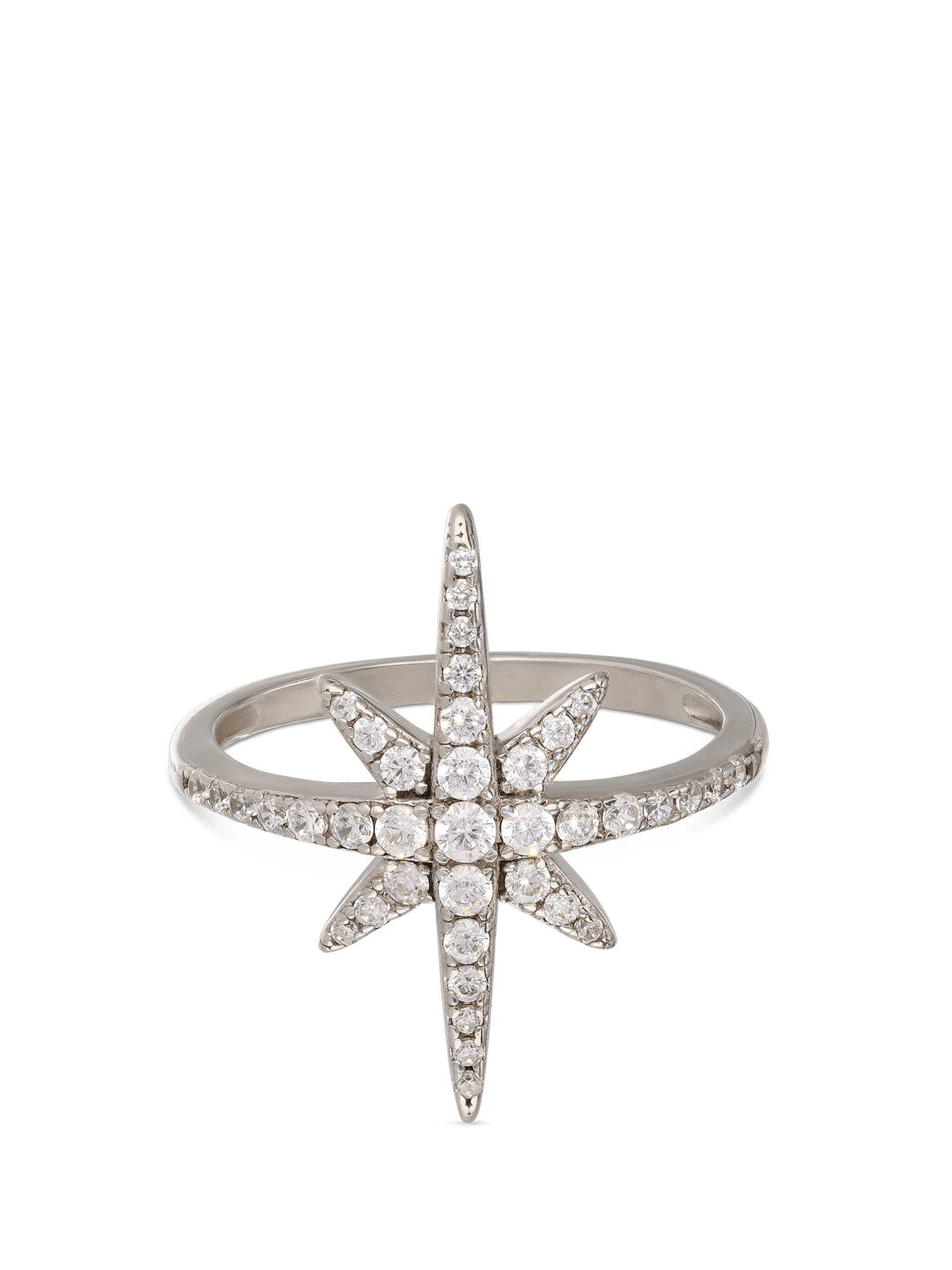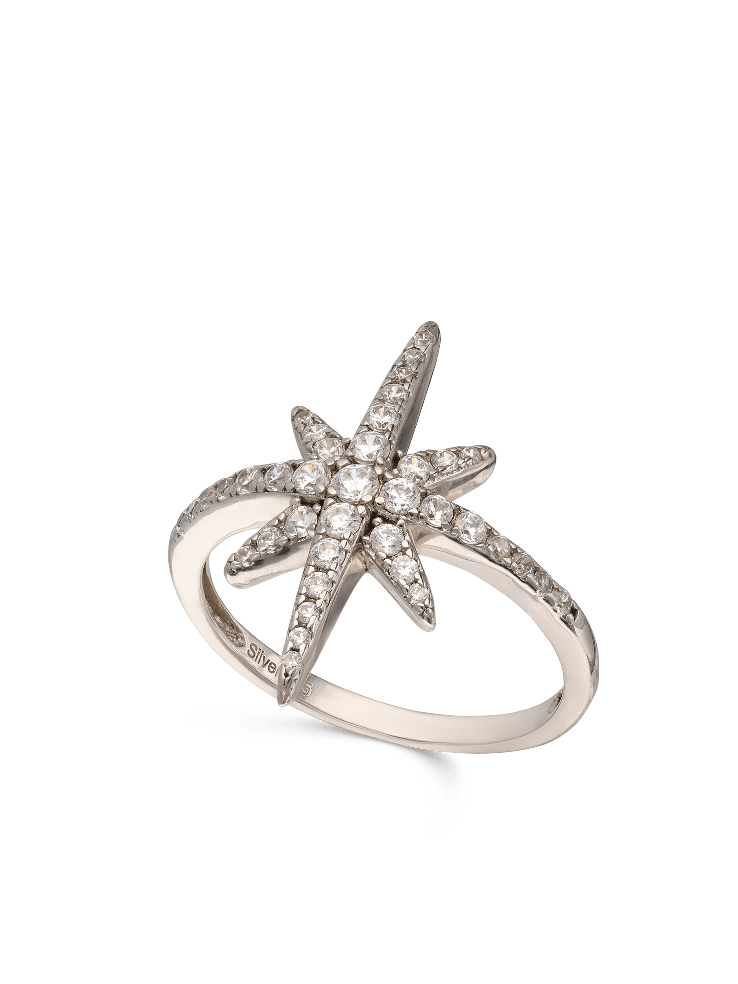Anel Delicado, Prata de lei 925, Zircónia de cultivo, Claro, Estrela, Feito à mão,, Prateado, altura do anel: 2.0 cm, 2.20 gramas.