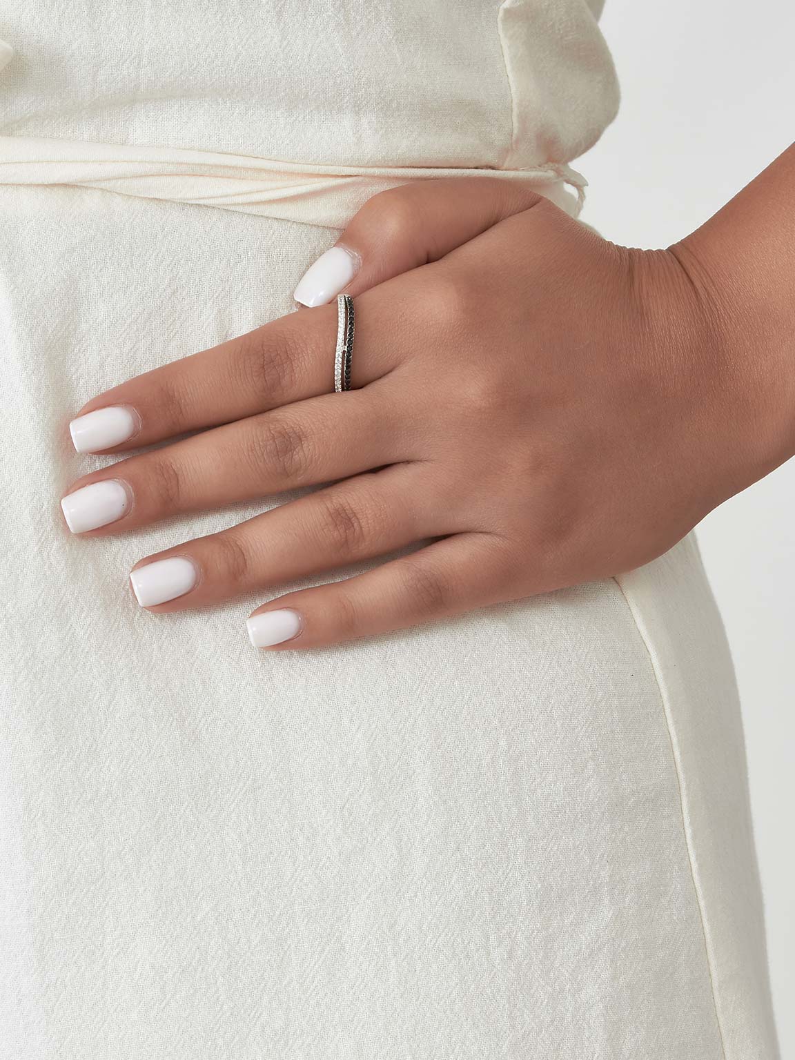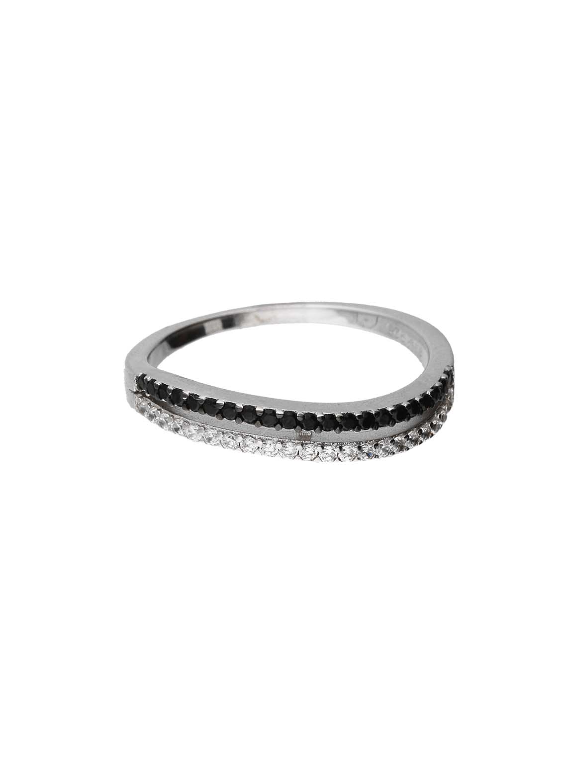 Anel Delicado, Prata, Zircónia de cultivo, Preto, Claro, Círculo, Feito à mão,, Prateado, 2.38 gramas.
