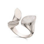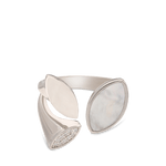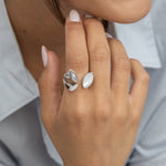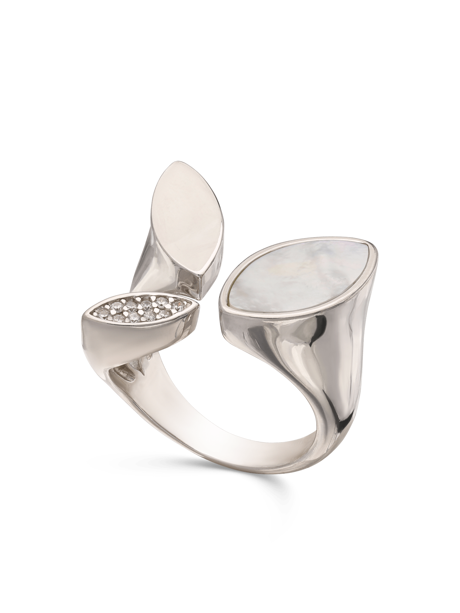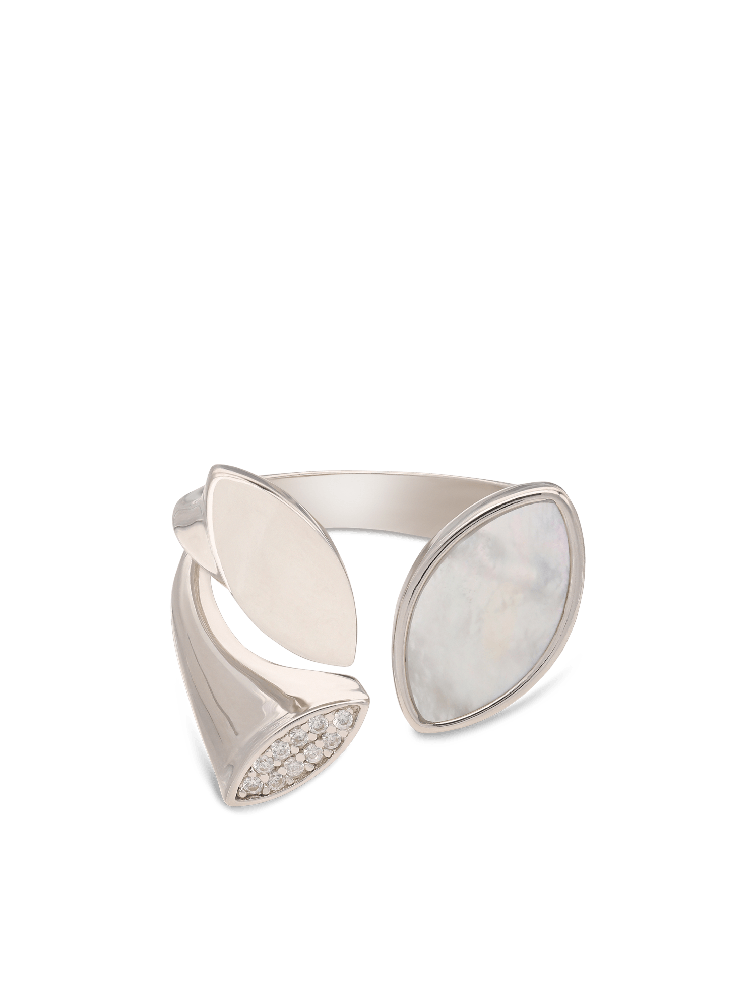 Anel Grande, Prata de lei 925, Zircónia de cultivo, Madrepérola de cultivo, Branco, Claro, Folha, Feito à mão,, Prateado, altura do anel: 1.5 cm, 6.06 gramas.