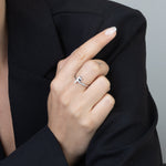 Anel Delicado, Prata de lei 925, Zircónia de cultivo, Claro, Letra, Feito à mão,, Prateado, altura do anel: 0.8 cm, 1.60 gramas.