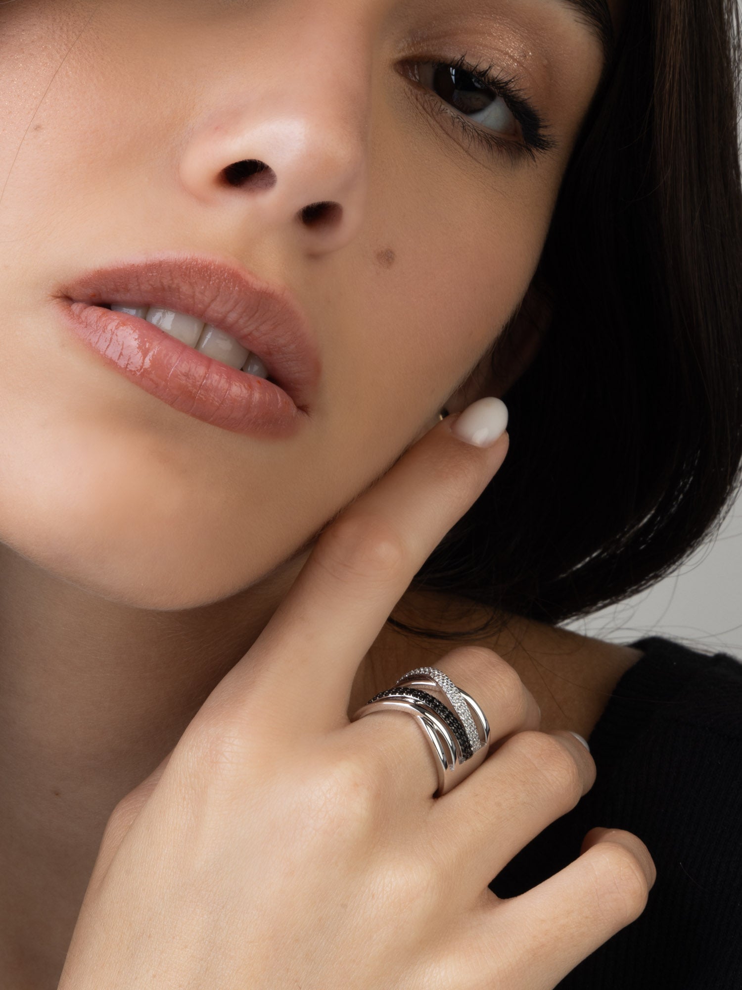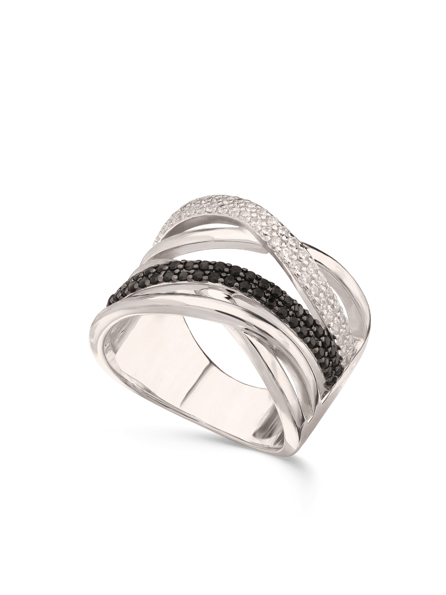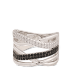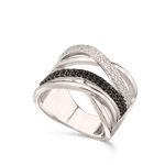 Anel Grande, Prata de lei 925, Zircónia de cultivo, Preto, Claro, Círculo, Feito à mão,, Prateado, 7.45 gramas.