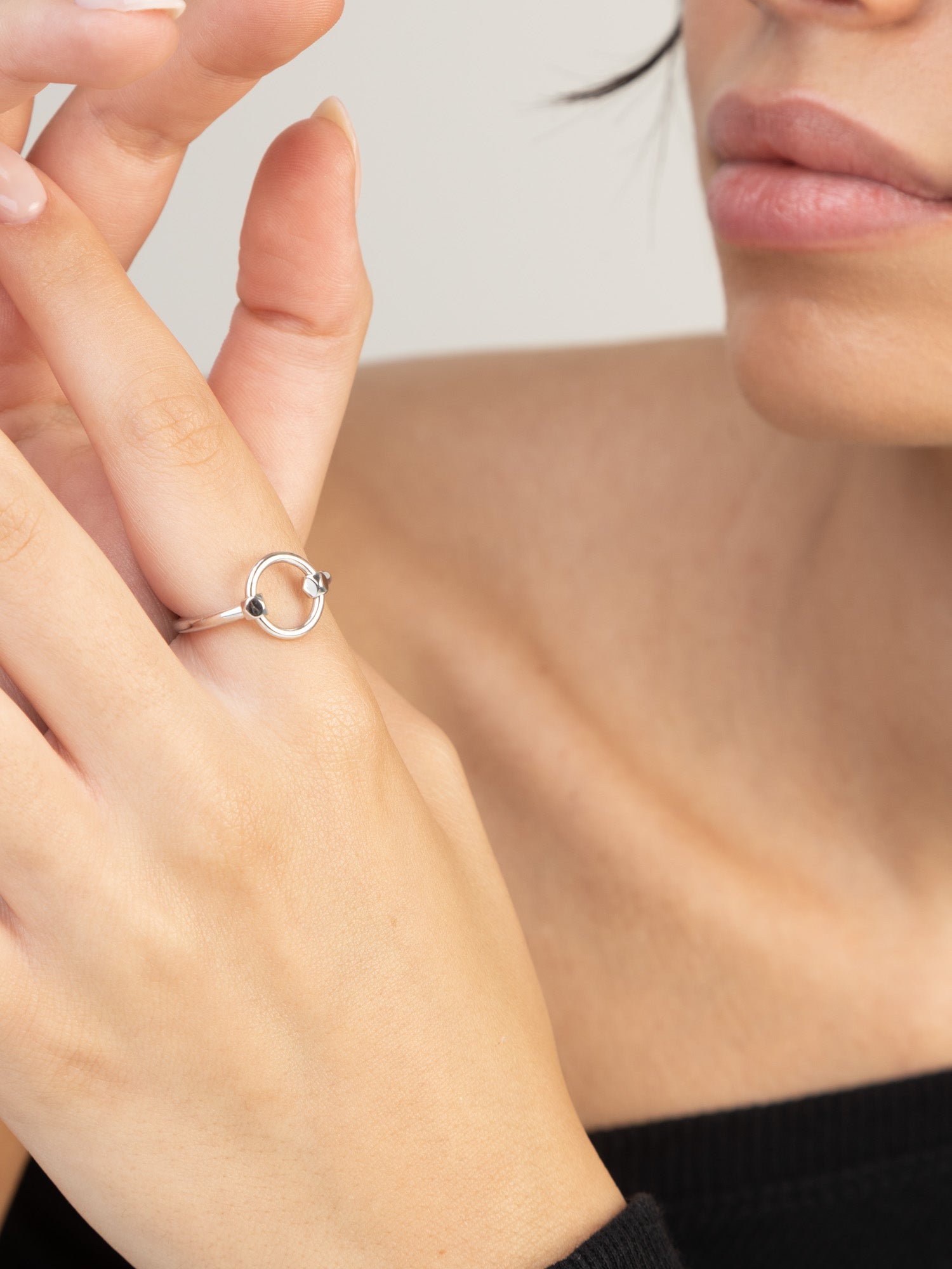 Anel Delicado, Prata de lei 925, Nenhuma pedra, Sem cor, Círculo,, Prateado, altura do anel: 1.0 cm, 2.77 gramas.