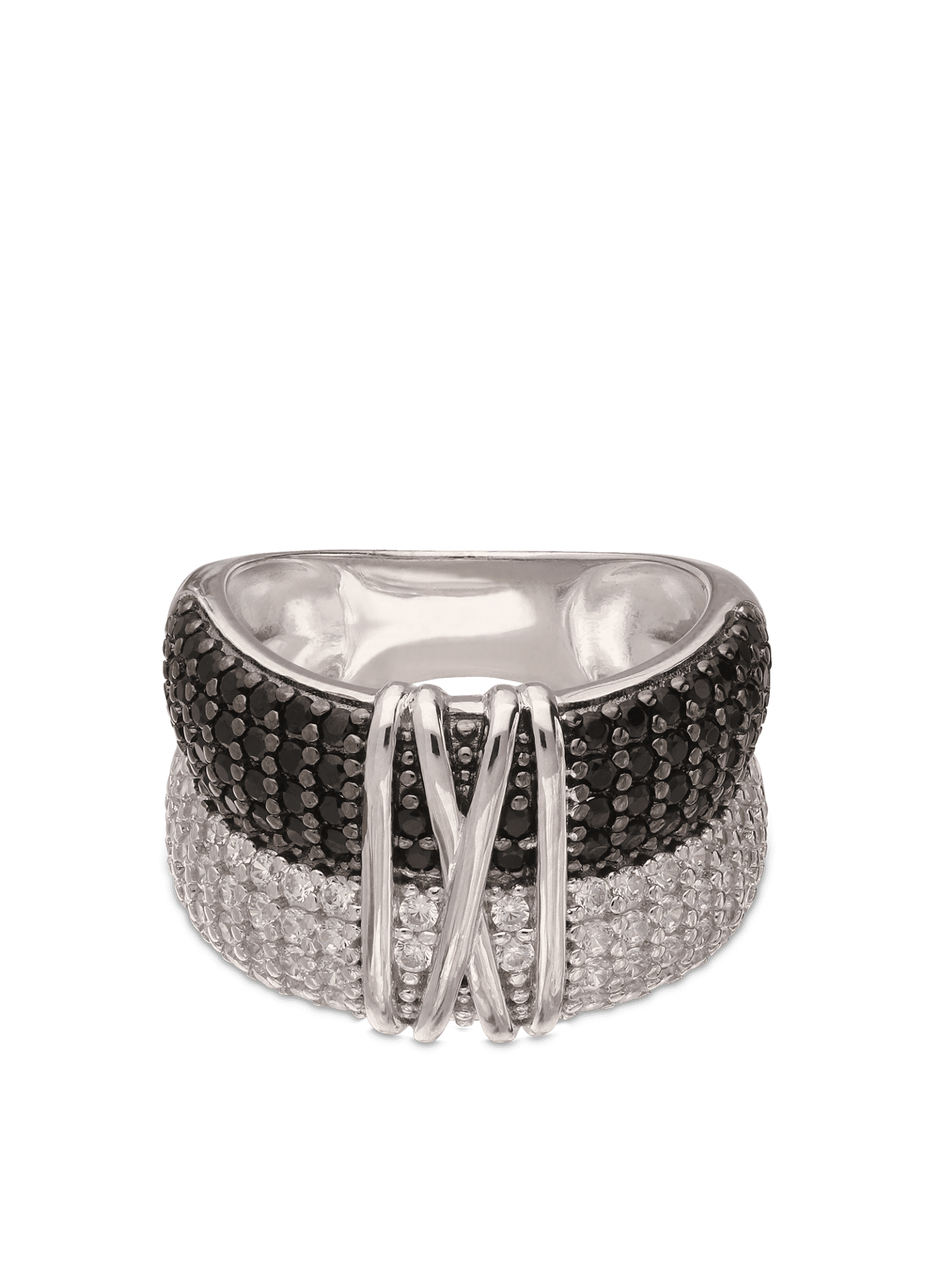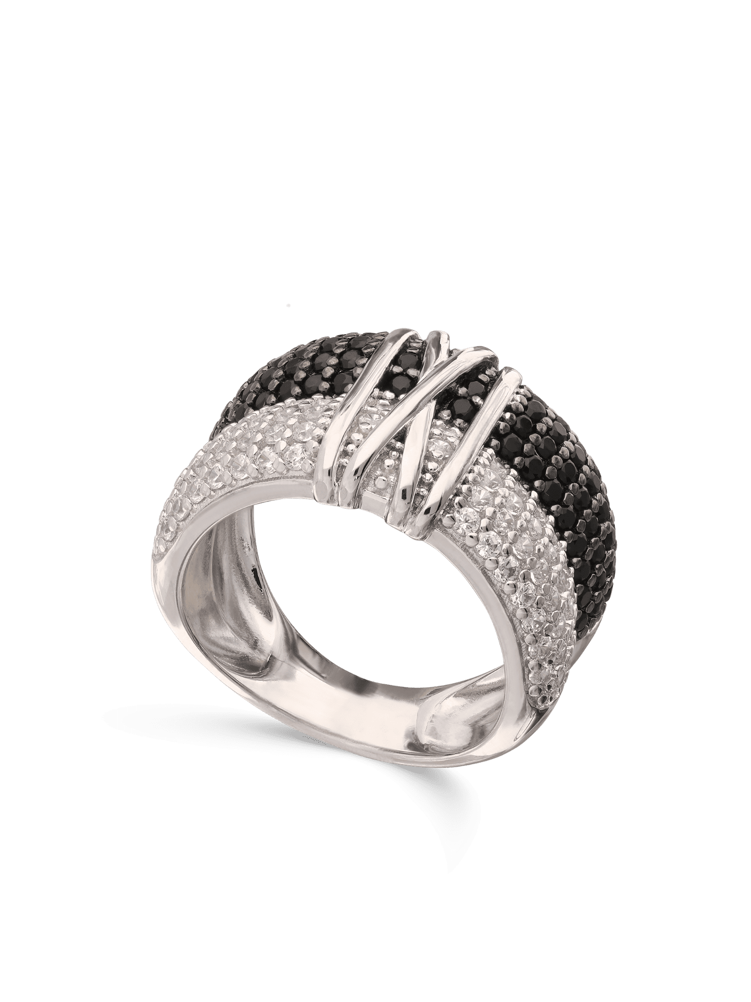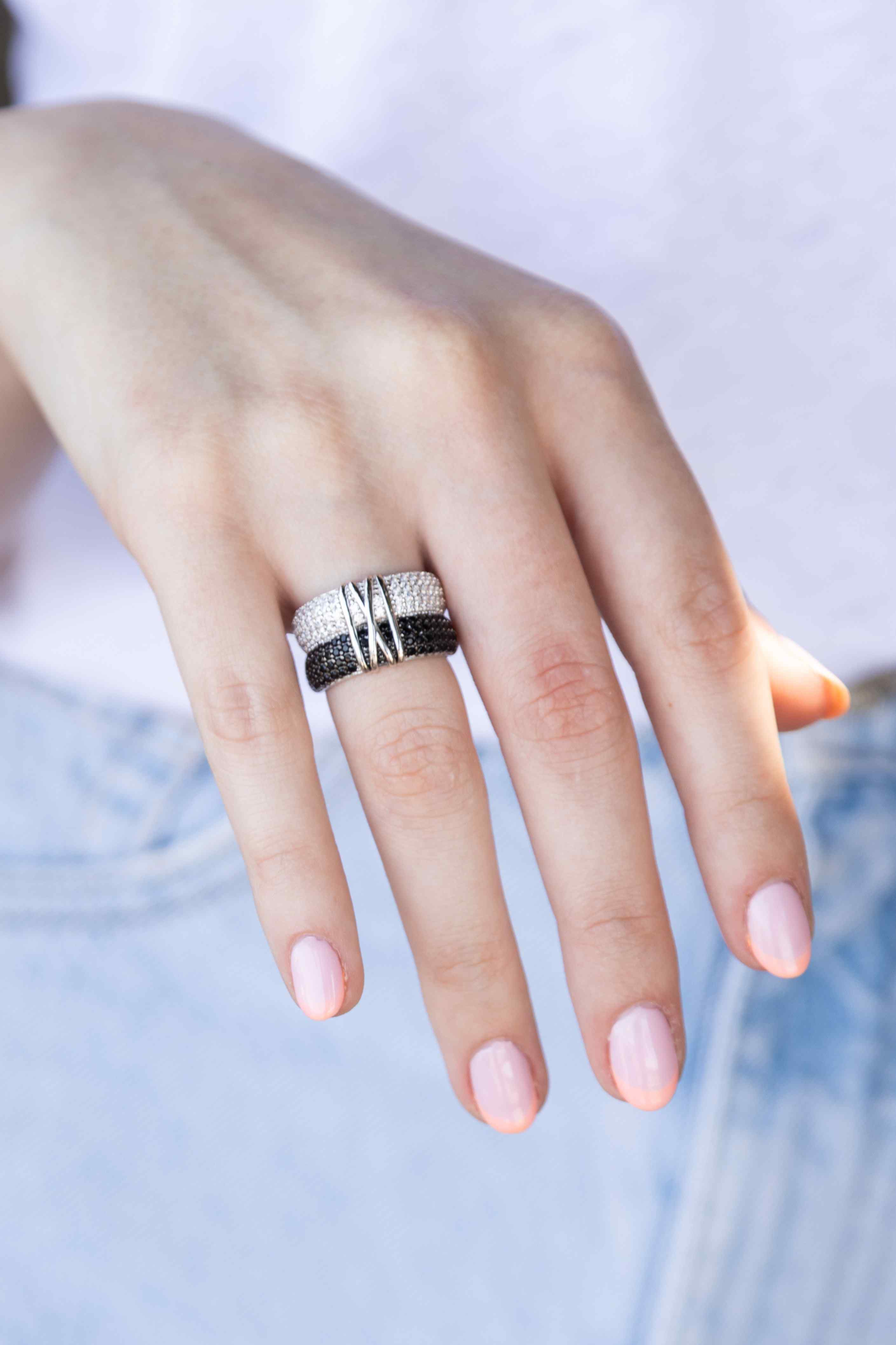 Anel Grande, Prata de lei 925, Zircónia de cultivo, Preto, Claro, Círculo, Feito à mão,, Prateado, 7.79 gramas.