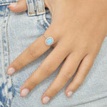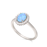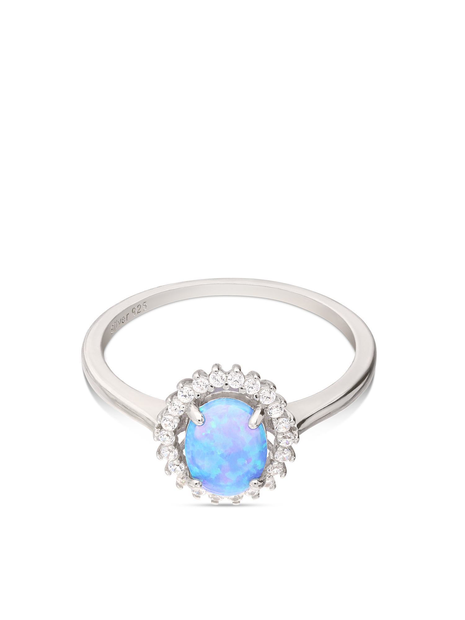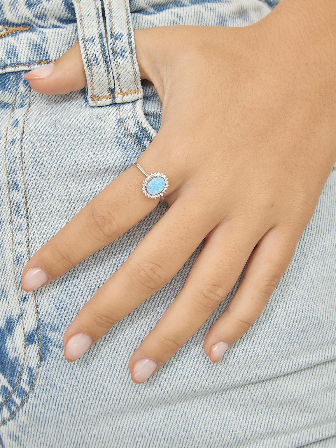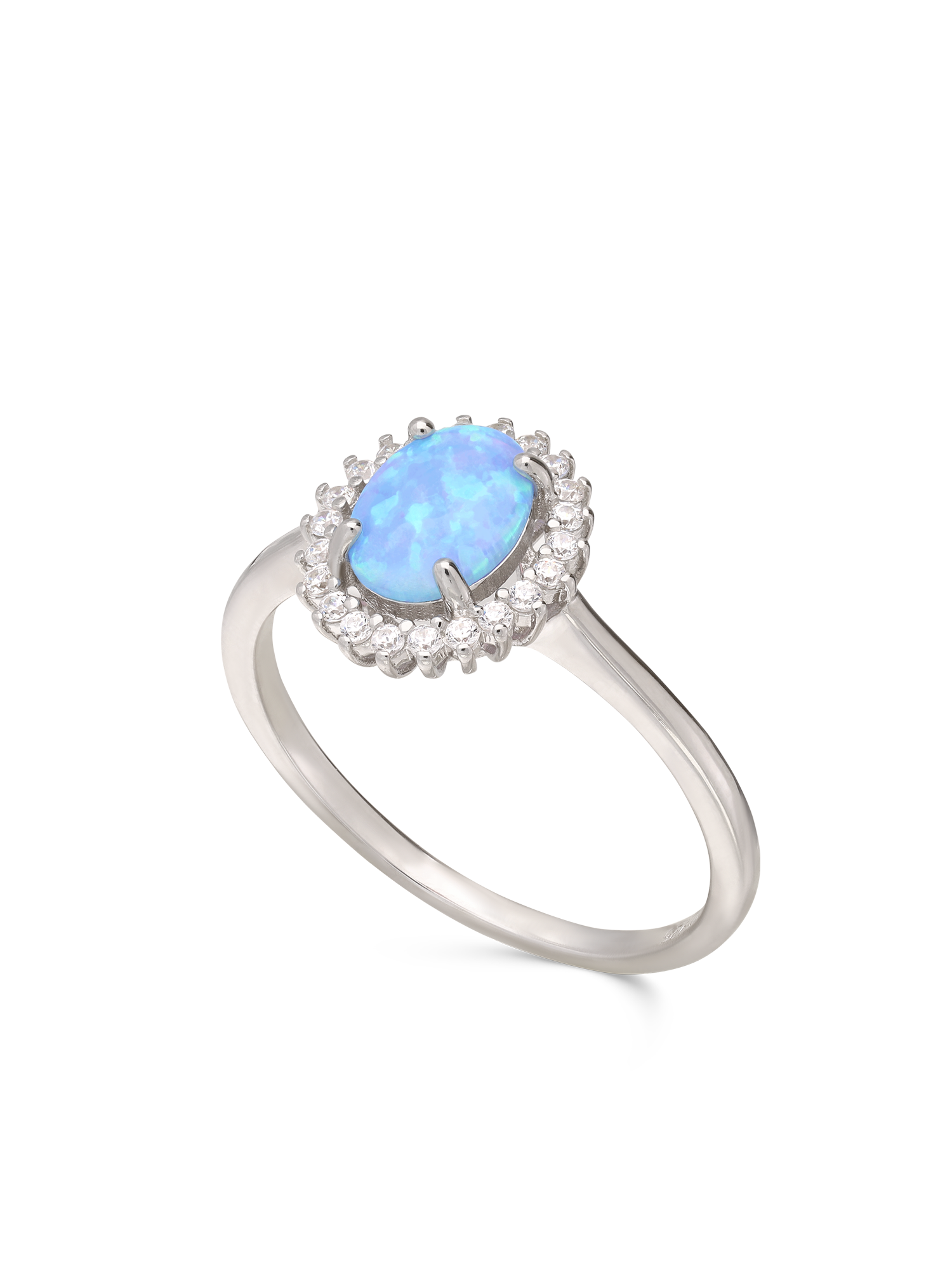 Anel Delicado, Prata de lei 925, Zircónia de cultivo, Opala de cultivo, Azul, Claro, Círculo, Feito à mão,, Prateado, altura do anel: 1.0 cm, 2.49 gramas.