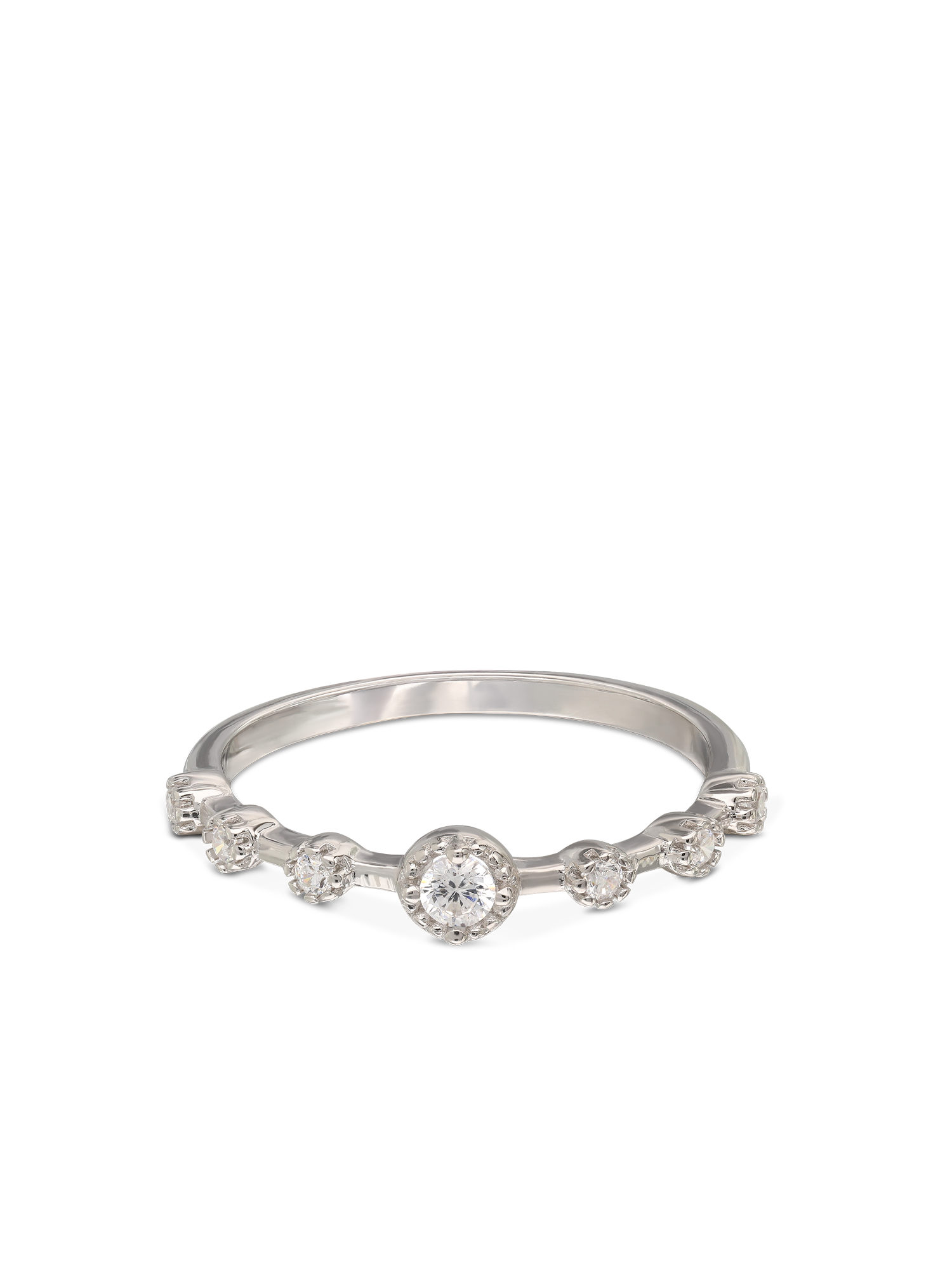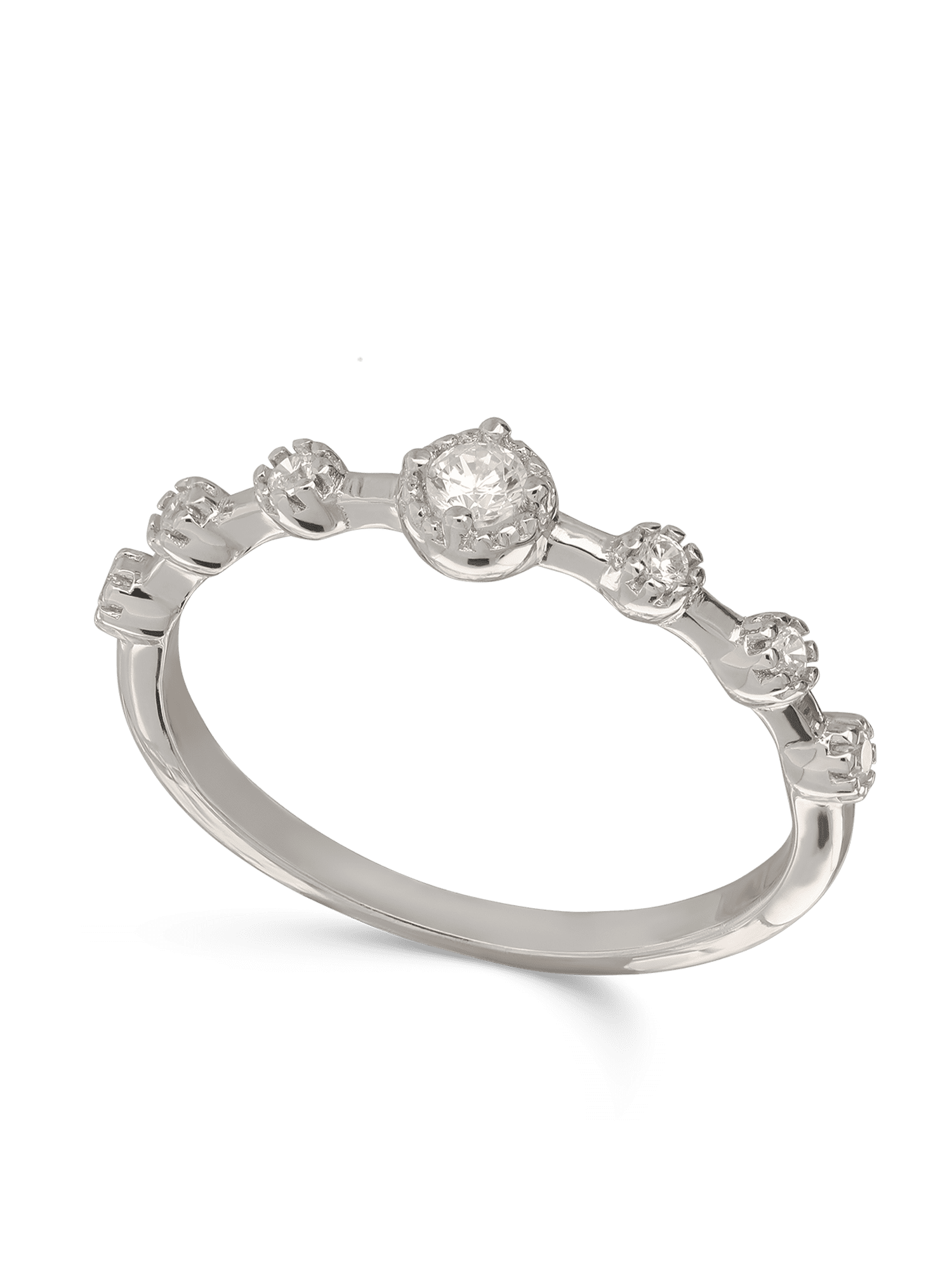 Anel Delicado, Prata de lei 925, Zircónia de cultivo, Claro, Círculo, Feito à mão, Prateado, 1.35 gramas.
