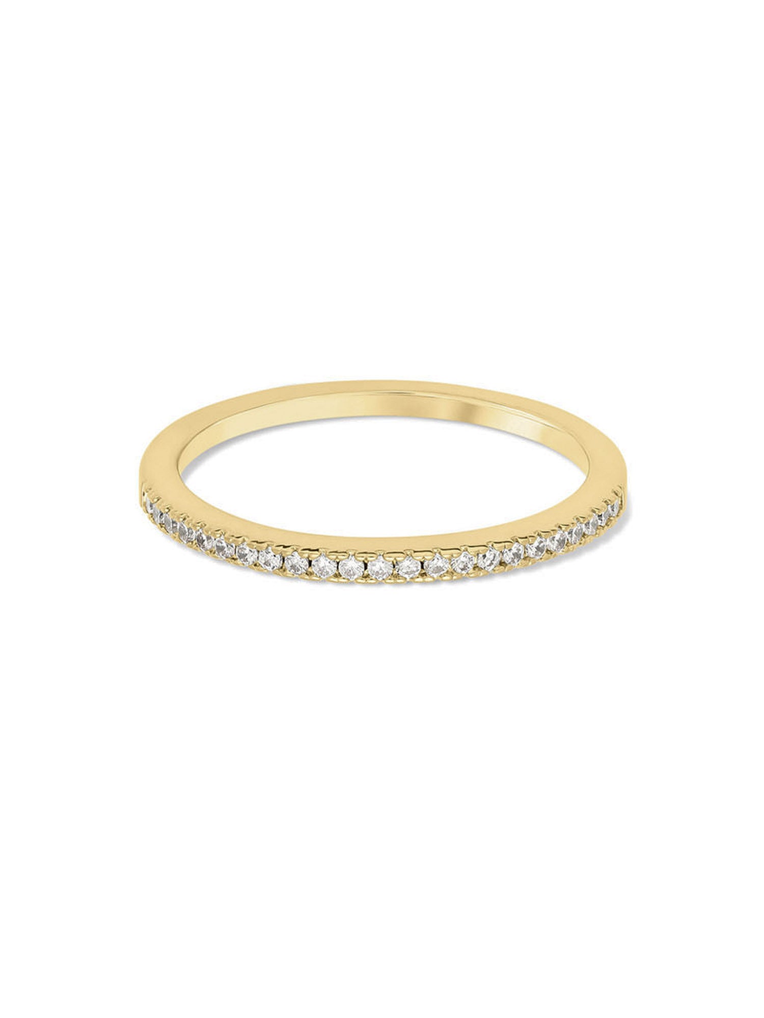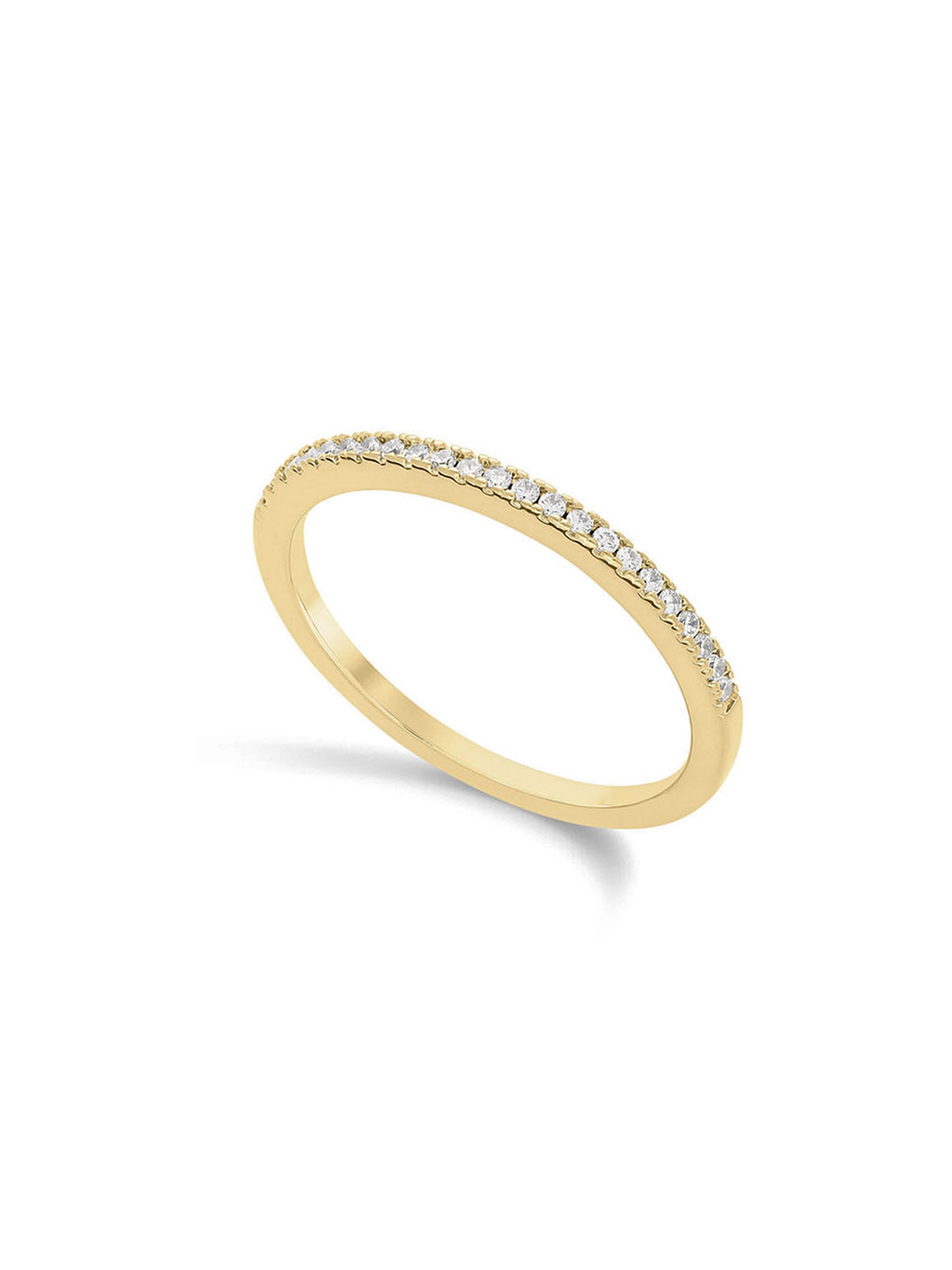 Anel Delicado, Banhado a Ouro, Zircónia de cultivo, Claro, Círculo, Feito à mão,, Dourado, 1.23 gramas.