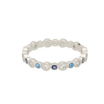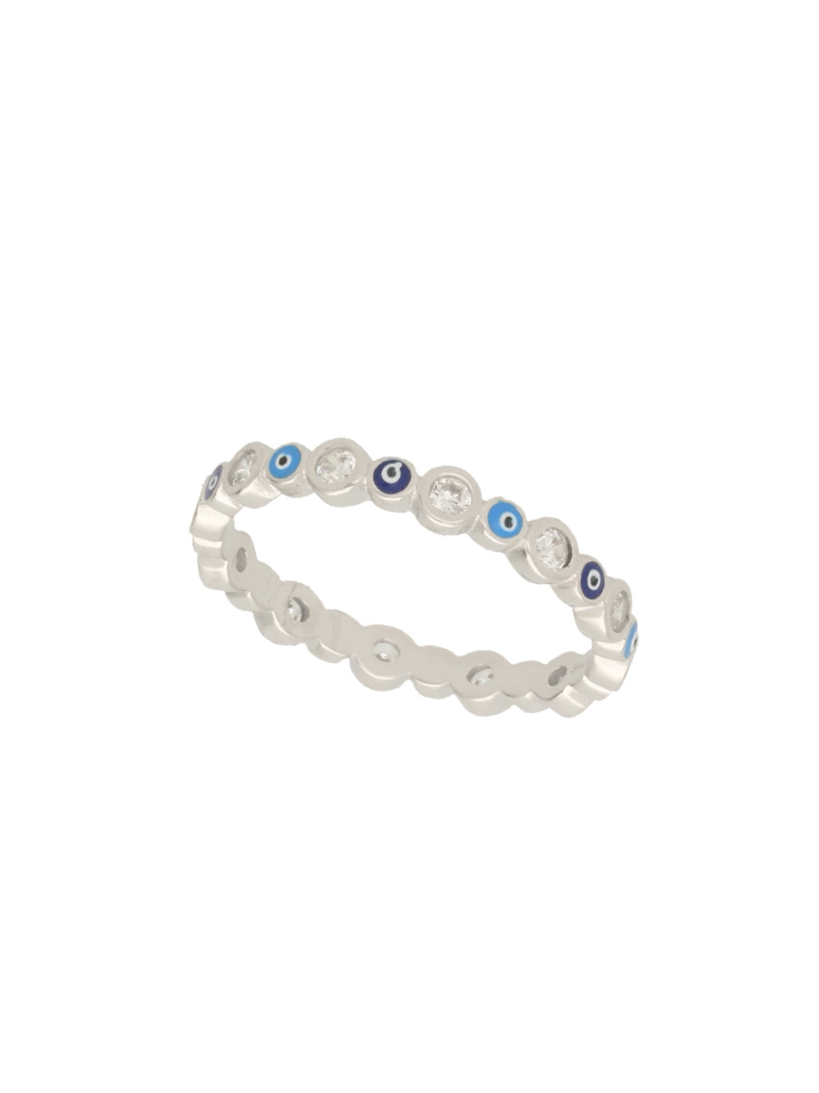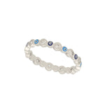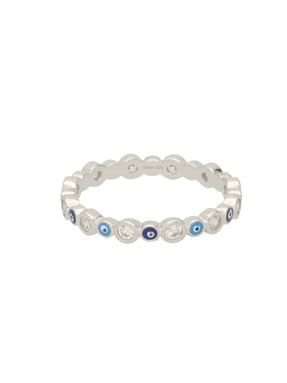 Anel Delicado, Prata de lei 925, Zircónia de cultivo, Esmalte, Azul, Olho, Feito à mão,, Prateado, 1.76 gramas.