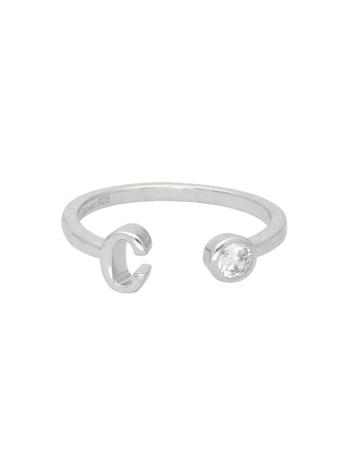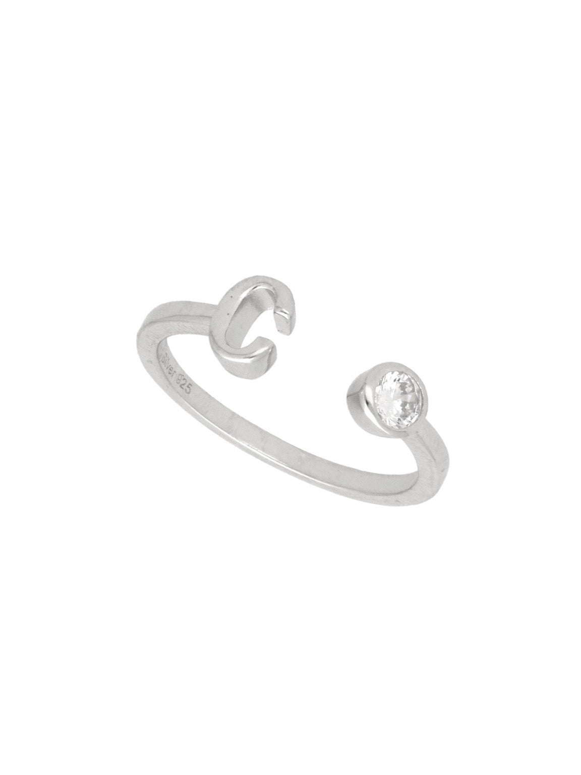 Anel C em prata de lei 925 com zircónia