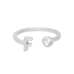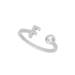 Anel Delicado, Prata de lei 925, Zircónia de cultivo, Claro, Círculo, Letra, Feito à mão,, Prateado, 1.54 gramas.