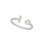 Anel Delicado, Prata de lei 925, Zircónia de cultivo, Claro, Círculo, Letra, Feito à mão,, Prateado, 1.60 gramas.