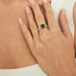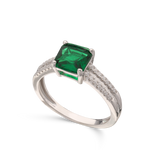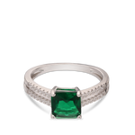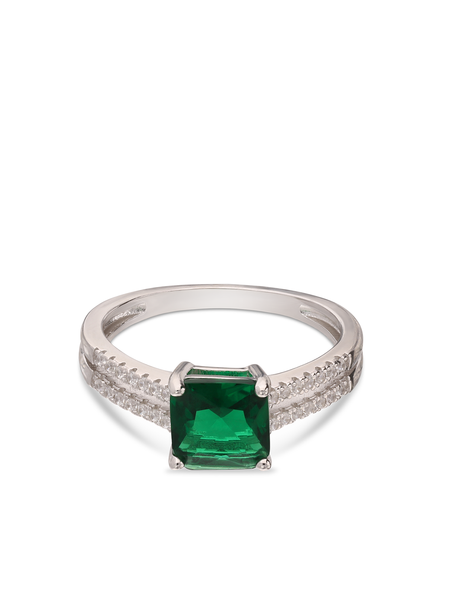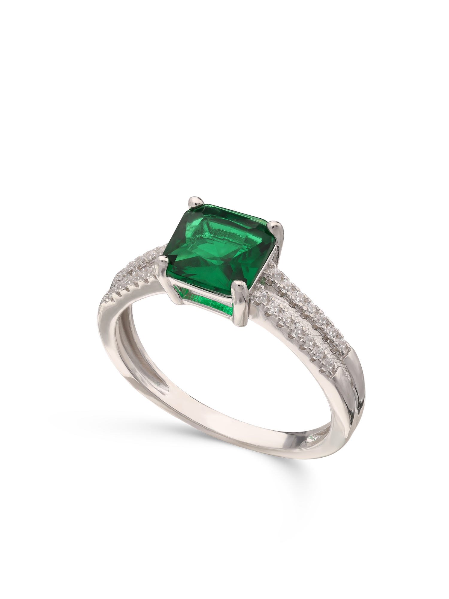 Anel Delicado, Prata de lei 925, Zircónia de cultivo, Verde, Claro, Quadrado, Feito à mão,, Prateado, 2.70 gramas.