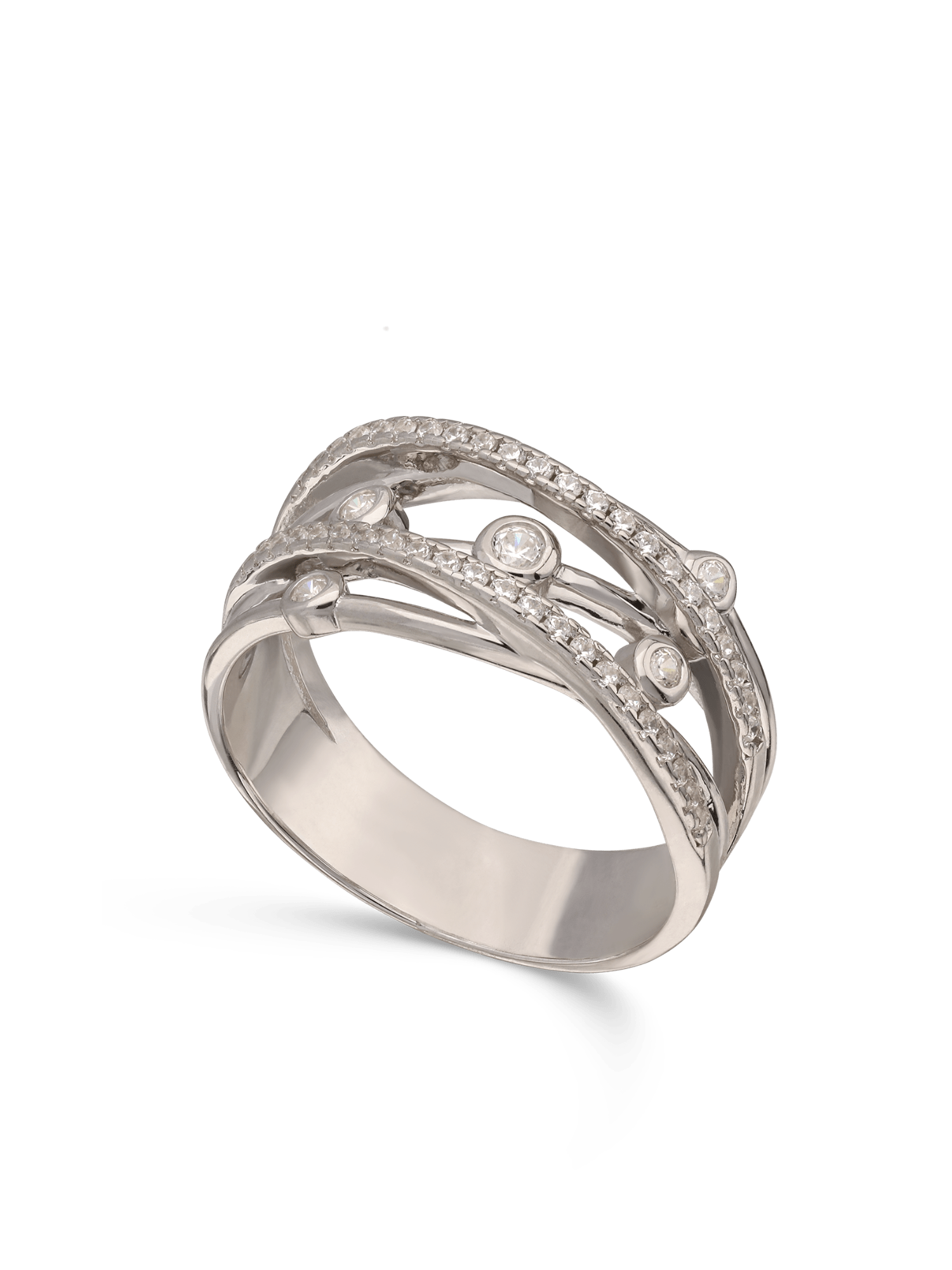 Anel Grande, Prata de lei 925, Zircónia de cultivo, Claro, Círculo, Feito à mão,, Prateado, 3.86 gramas.
