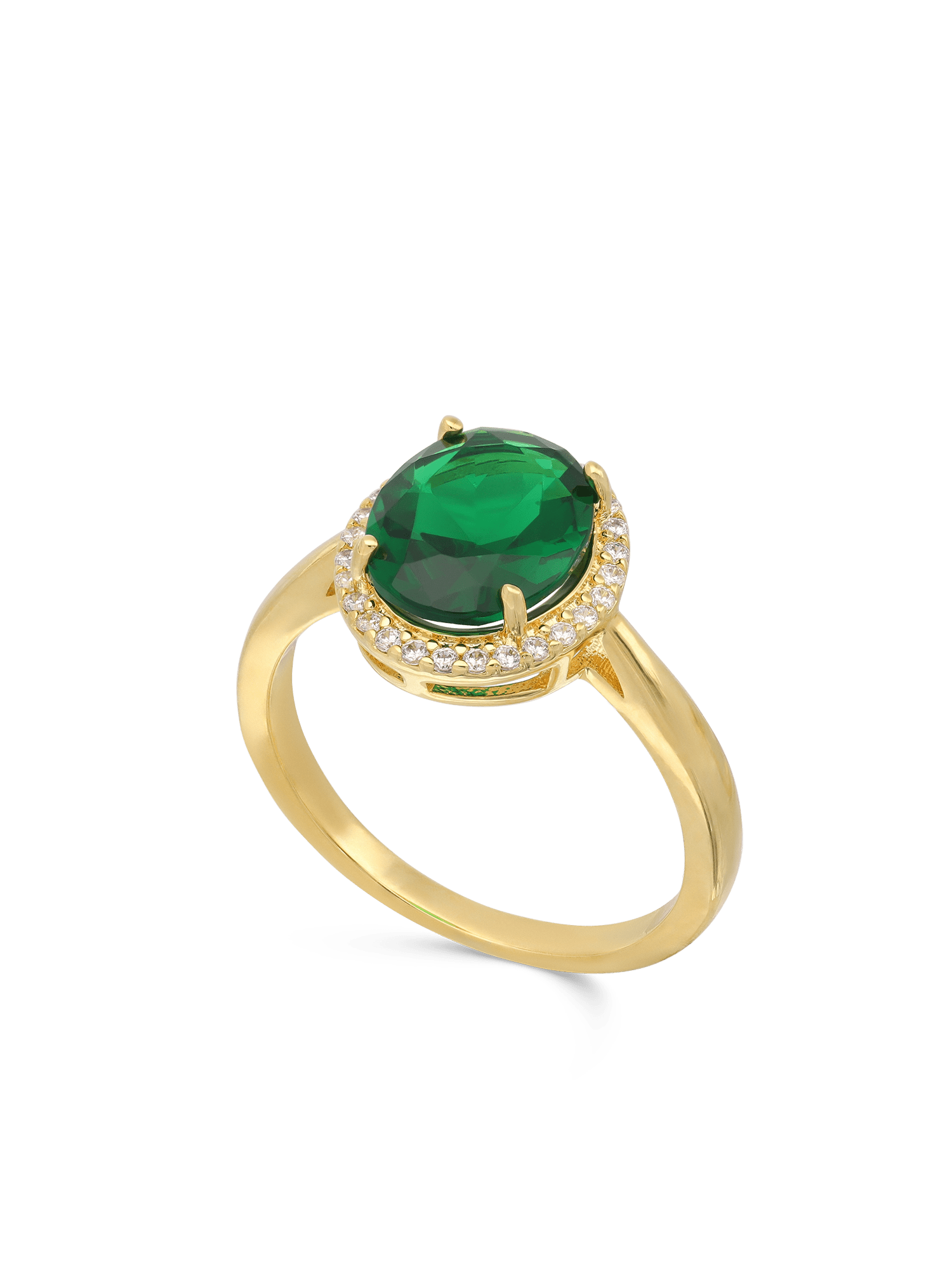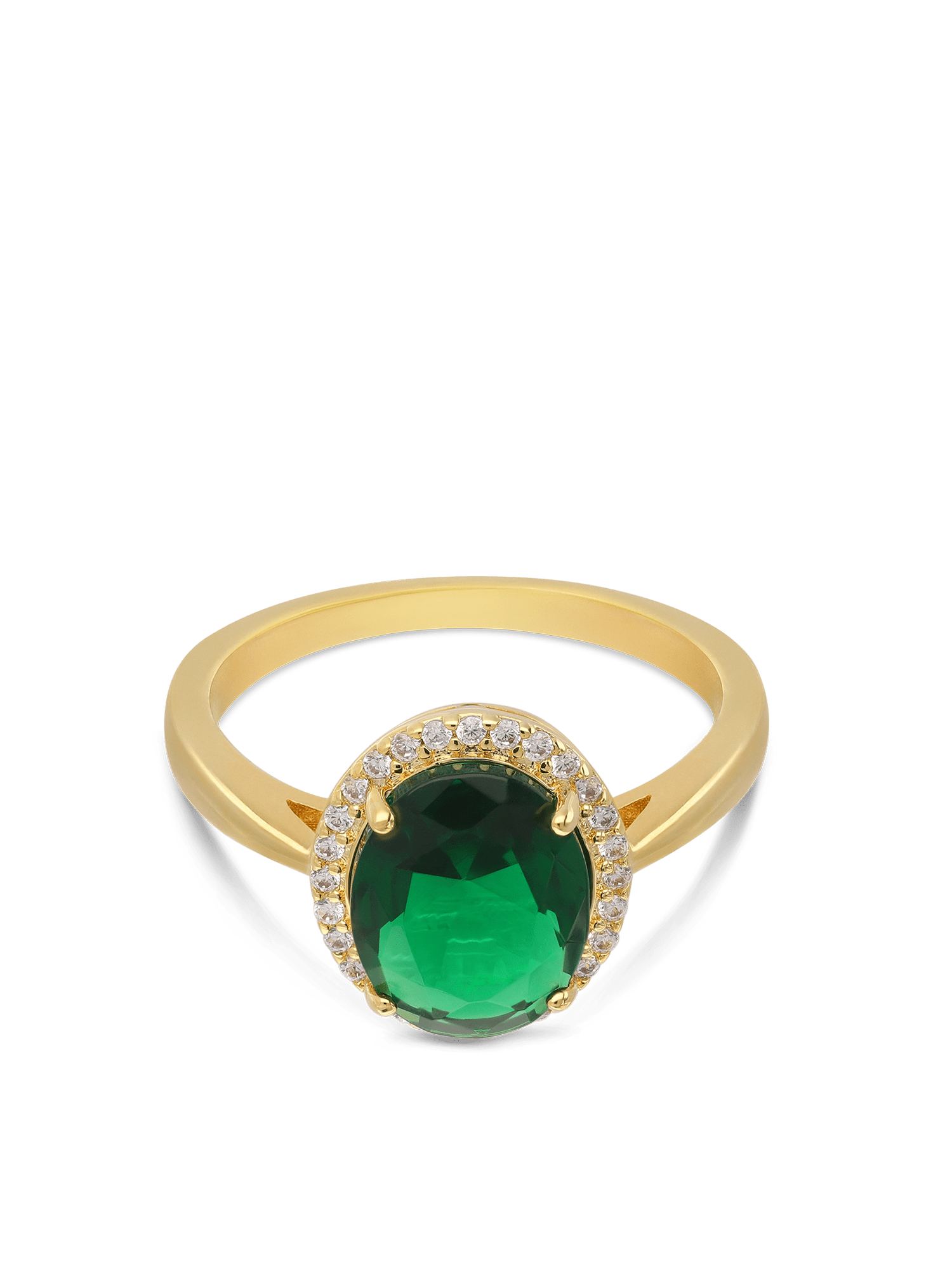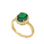 Anel banhado a ouro com zircónia verde
