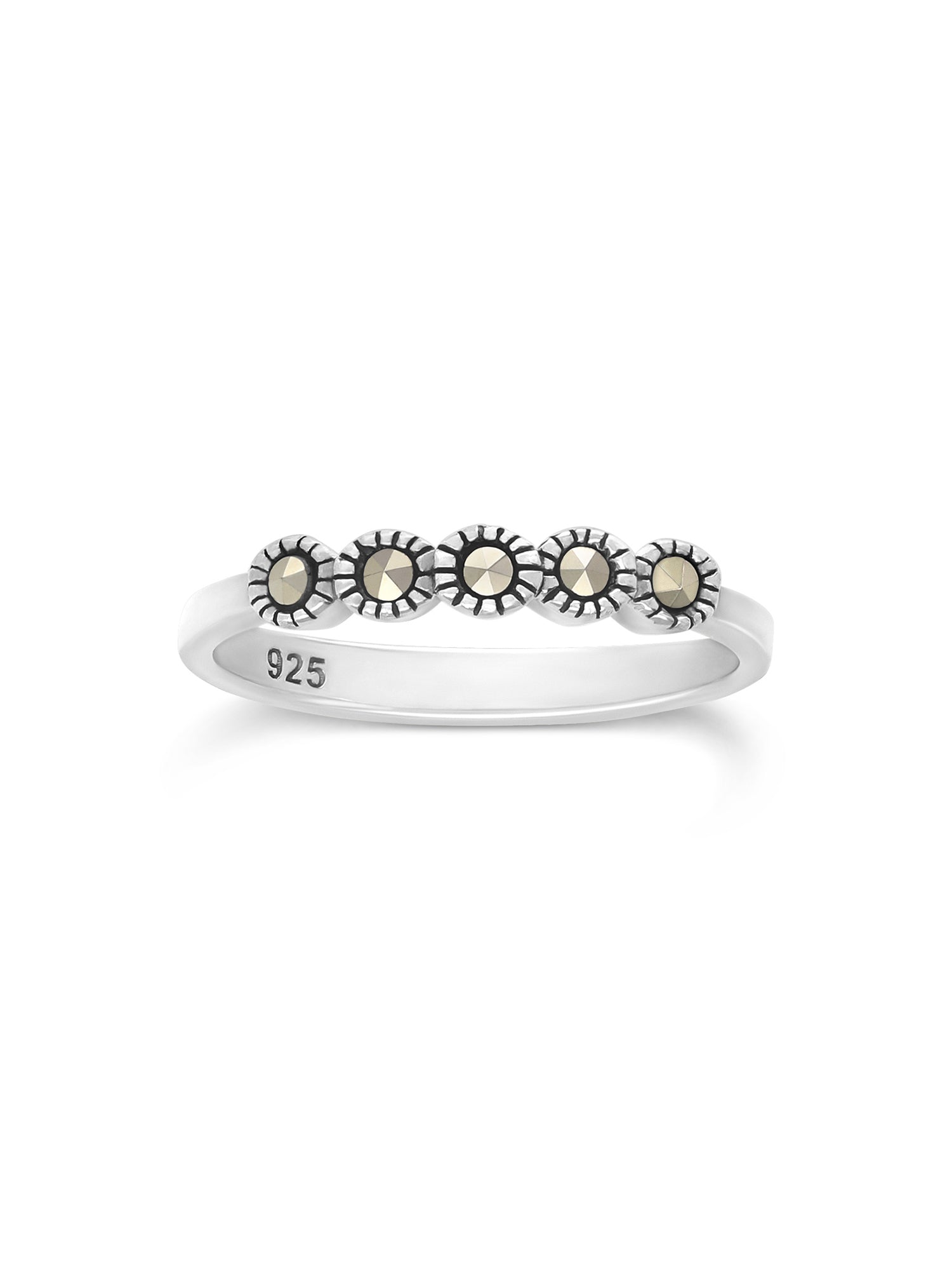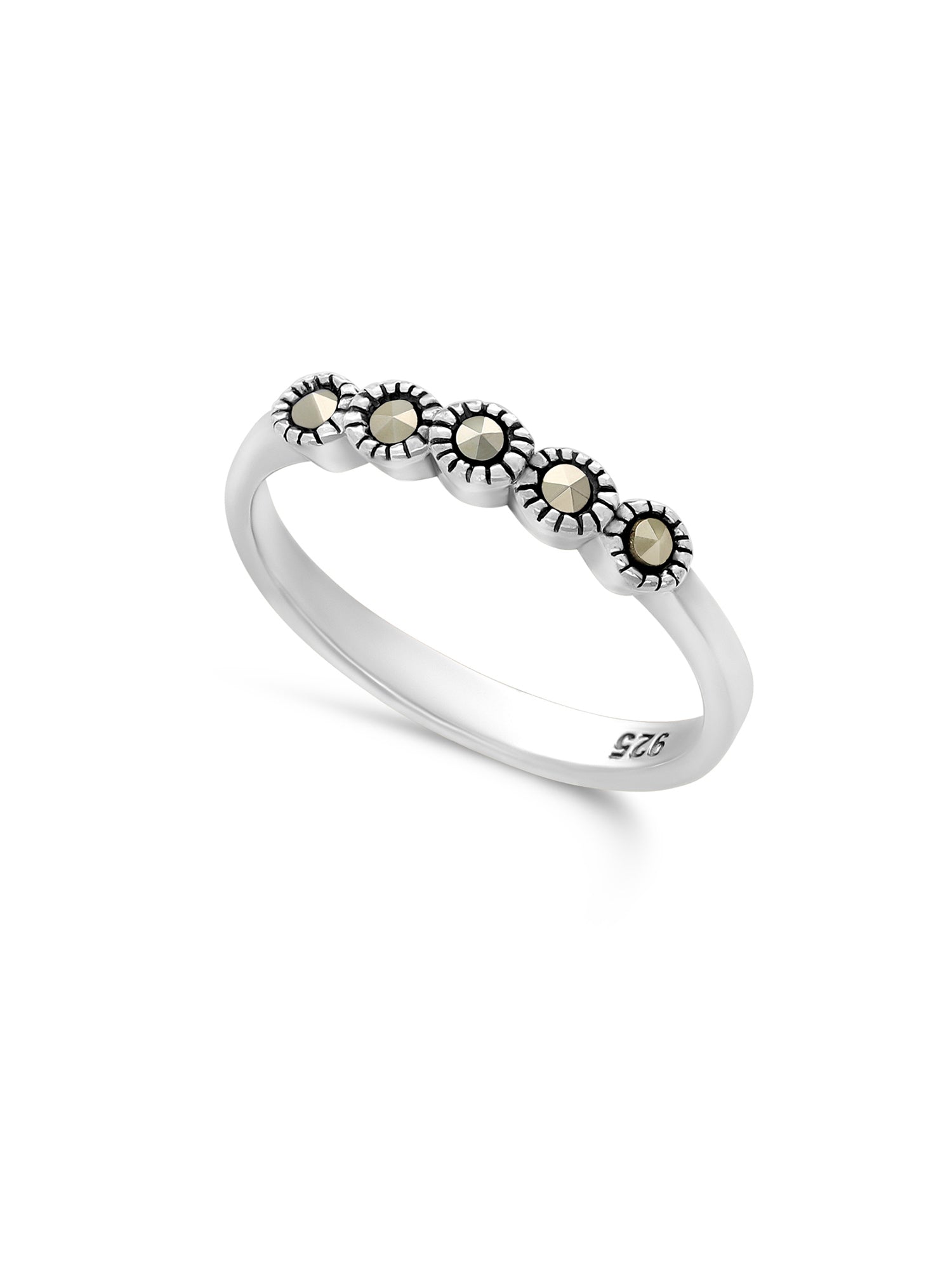 Anel Delicado, Prata de lei 925, Marcassita de cultivo, Cinzento, Círculo, Feito à mão,, Prateado, 1.94 gramas.
