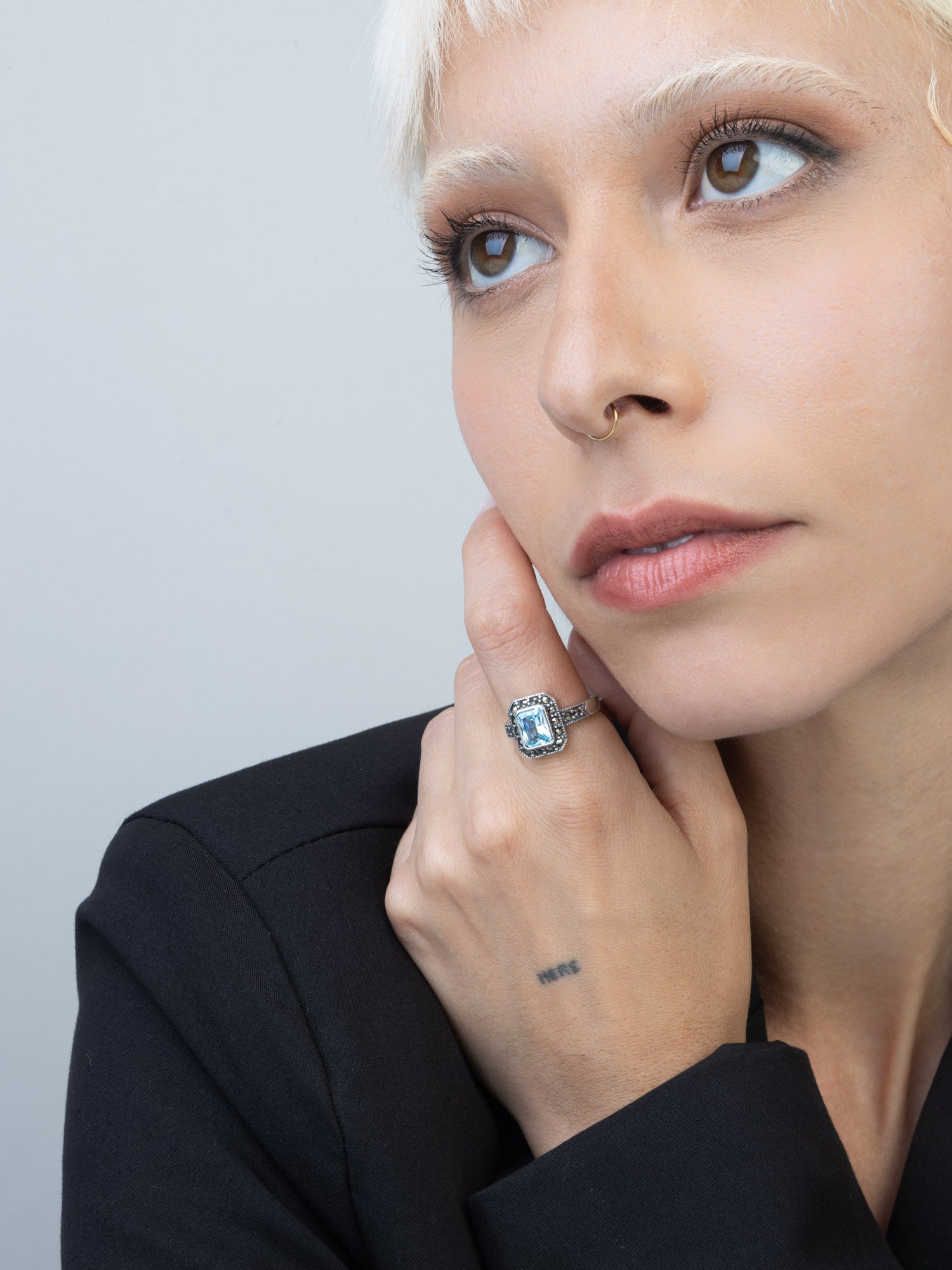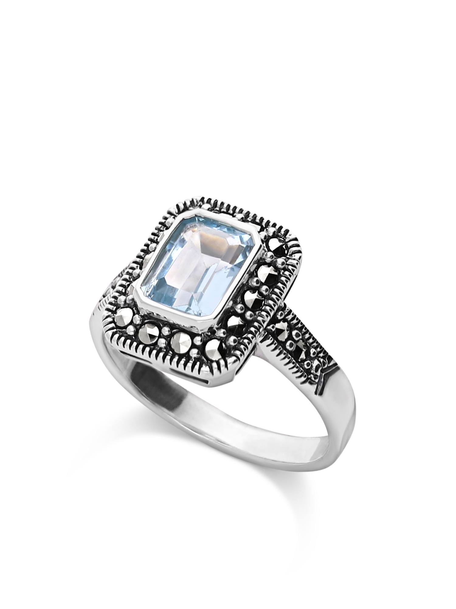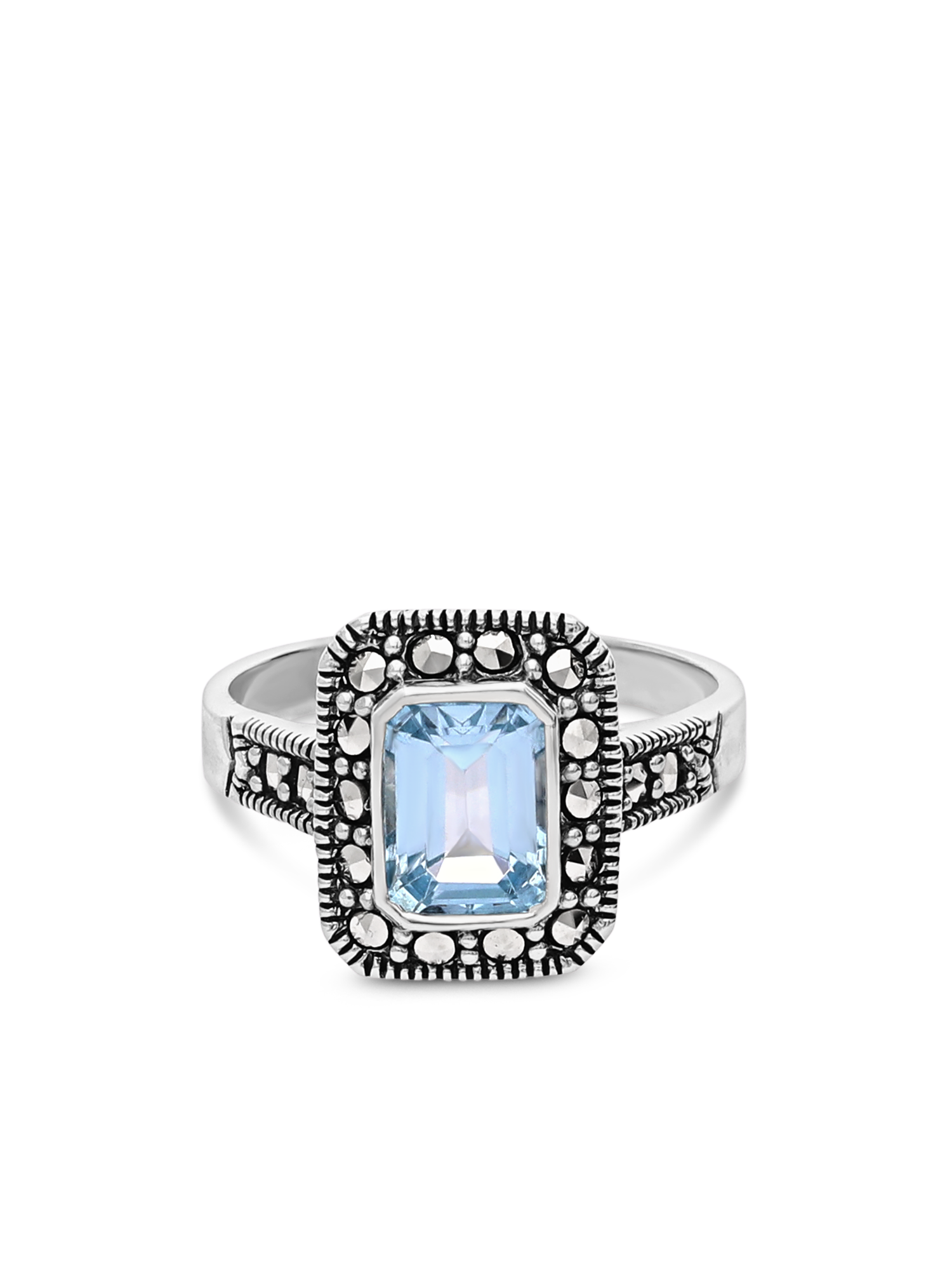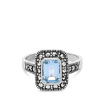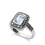 Anel em prata 925 com zircónia azul e marcassita