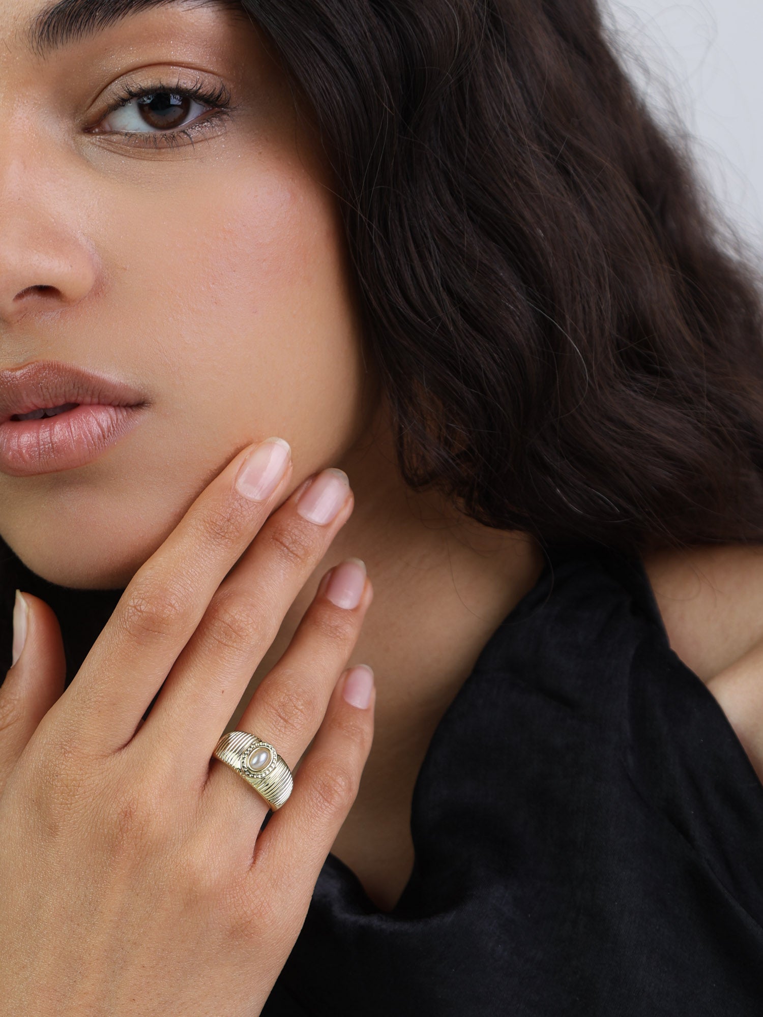 Anel Delicado, Banhado a Ouro, Pérola cultivada