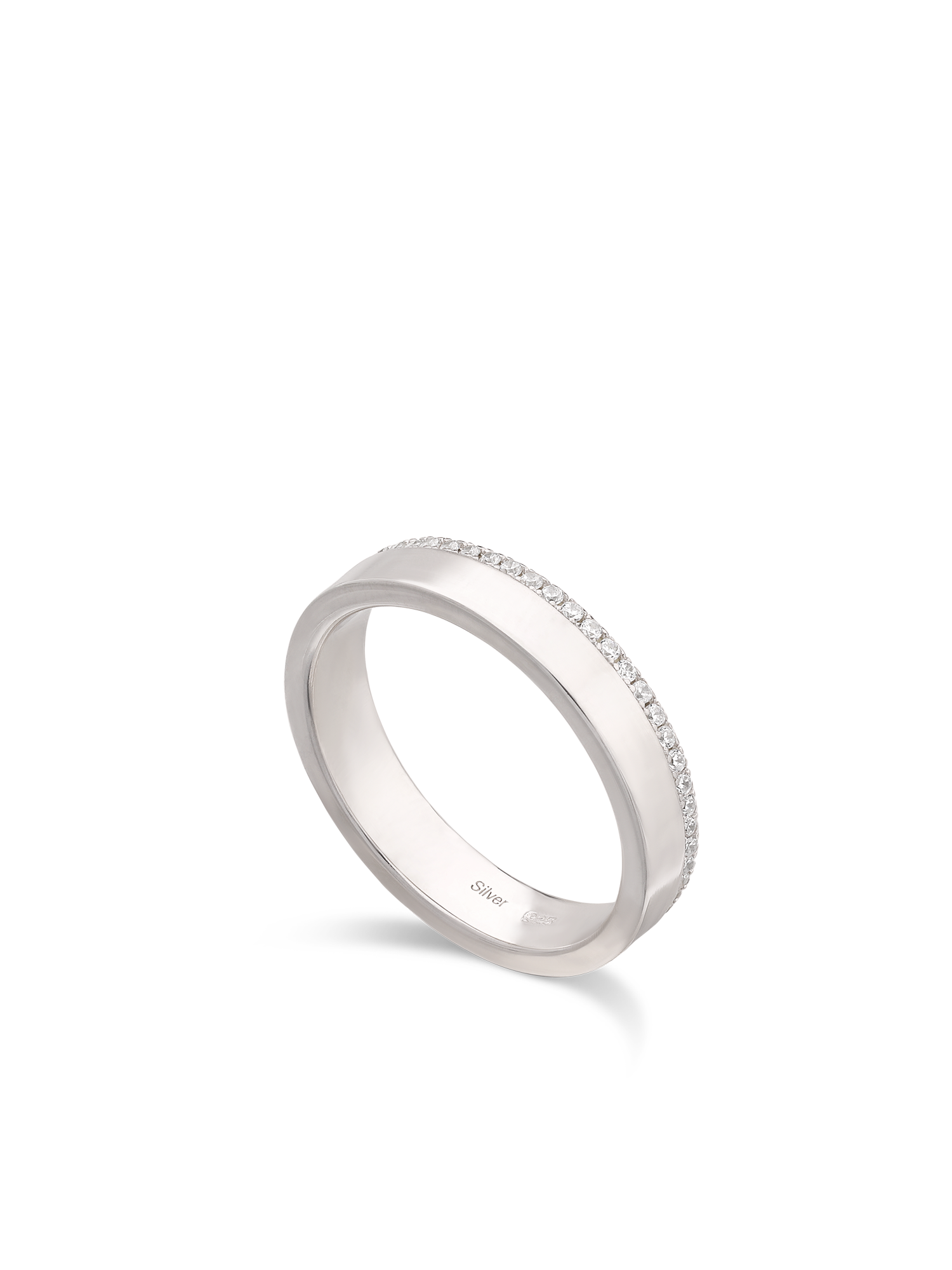 Anel Delicado, Prata de lei 925, Zircónia de cultivo, Claro, Forma não específica, Feito à mão,, Prateado, 3.75 gramas.