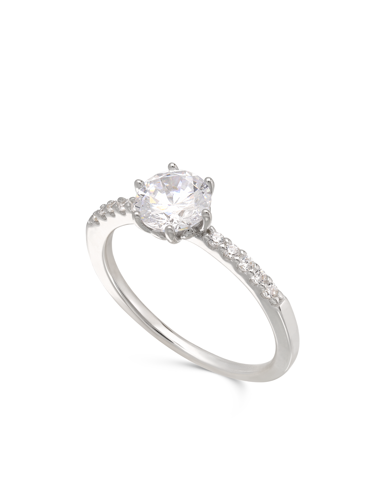 Anel Delicado, Prata de lei 925, Zircónia de cultivo, Claro, Forma não específica, Feito à mão,, Prateado, 3.13 gramas.