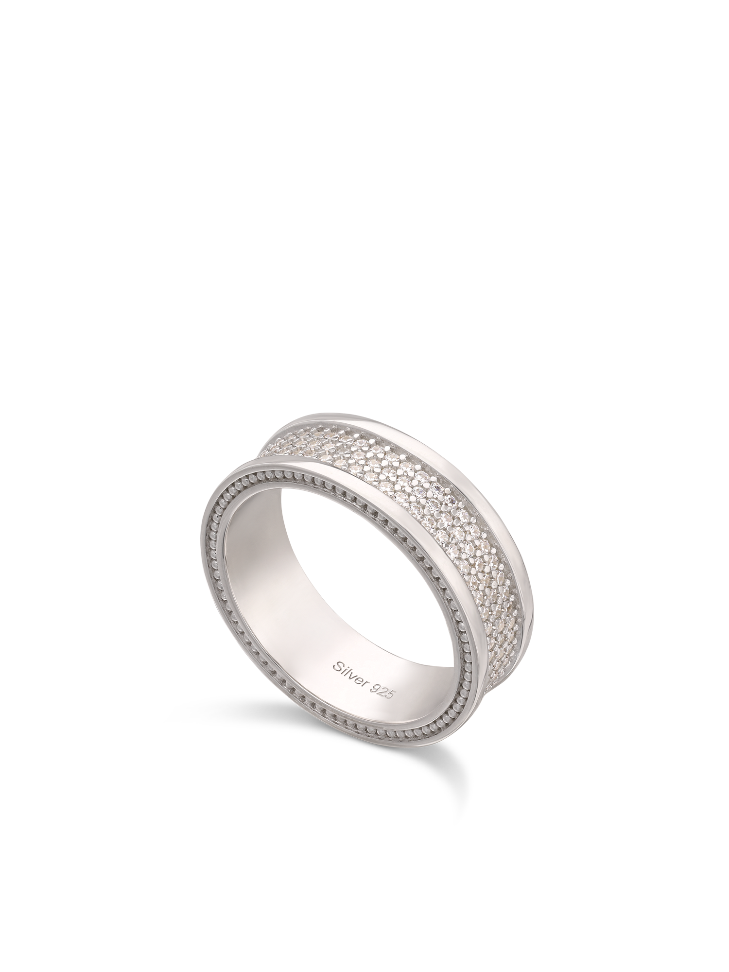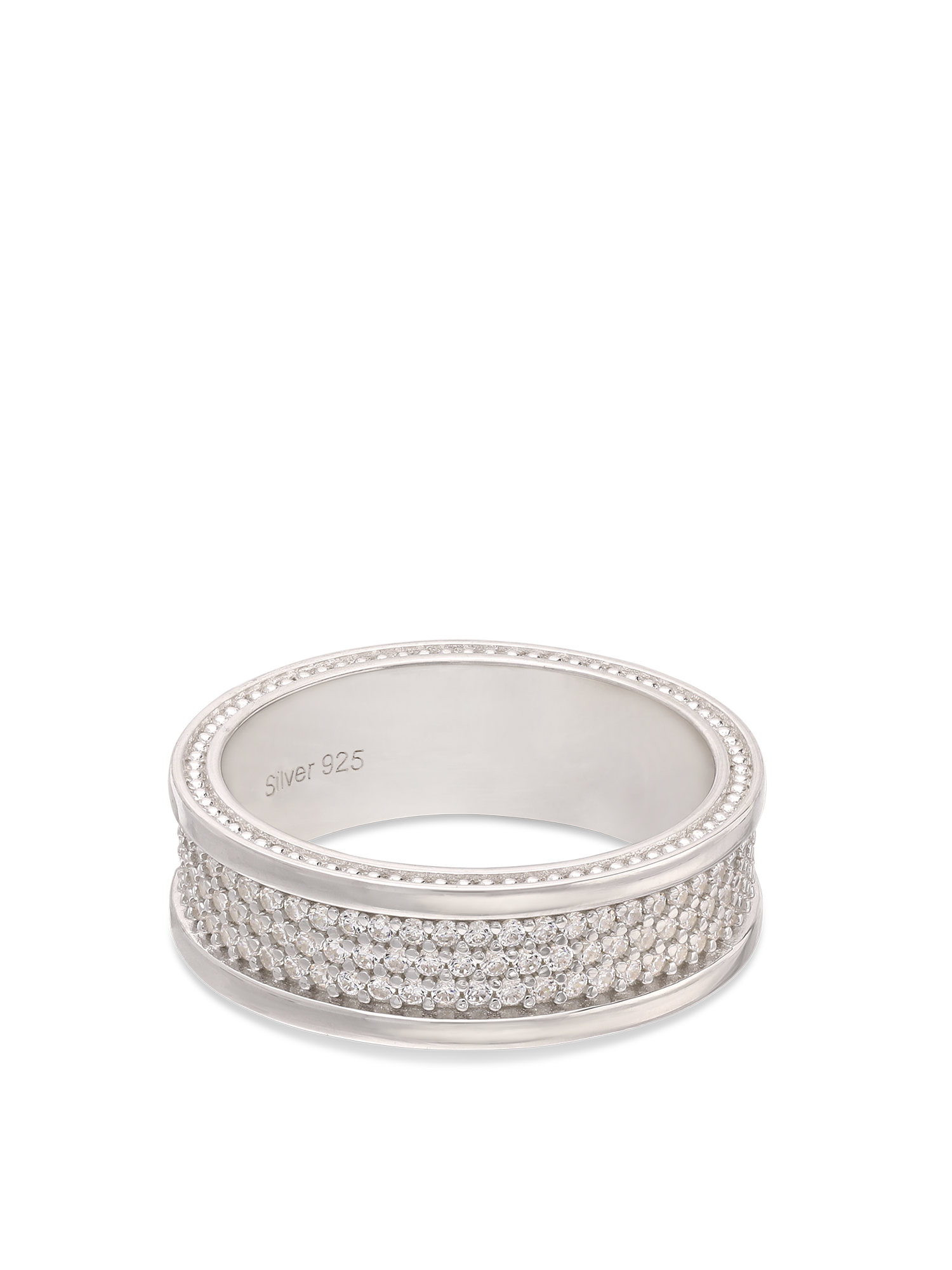 Anel Grande, Prata de lei 925, Zircónia de cultivo, Claro, Forma não específica, Feito à mão,, Prateado, 5.95 gramas.
