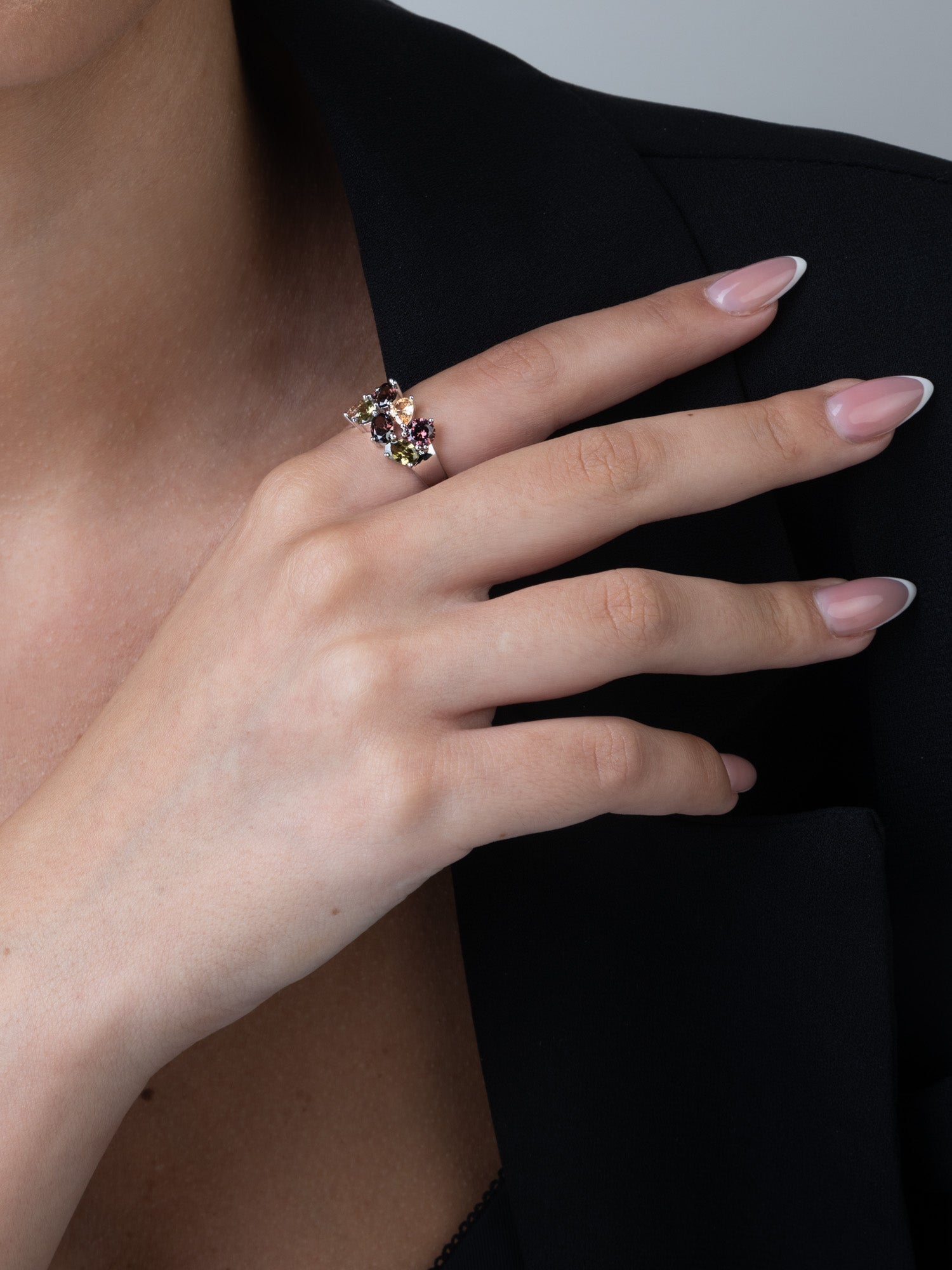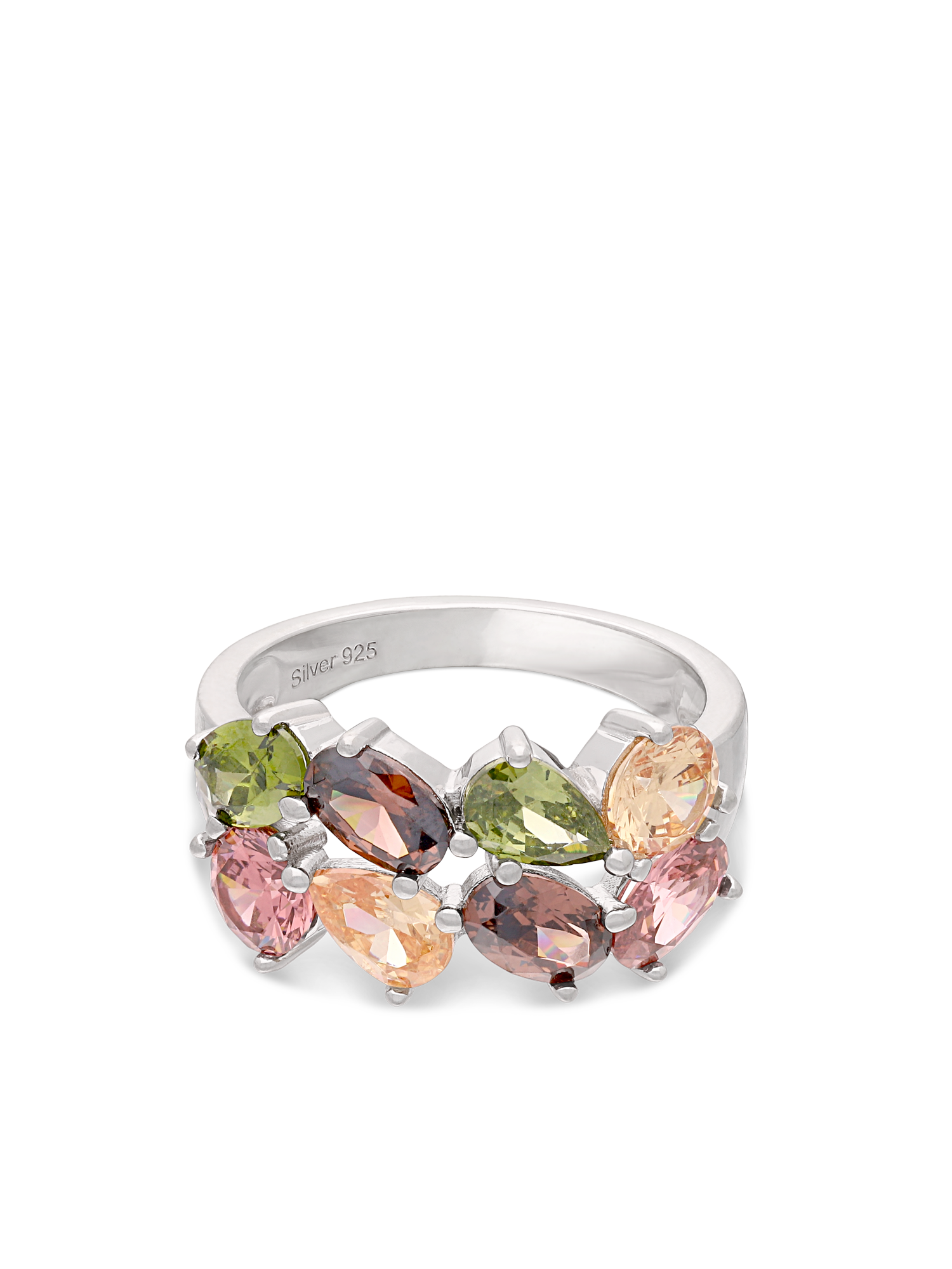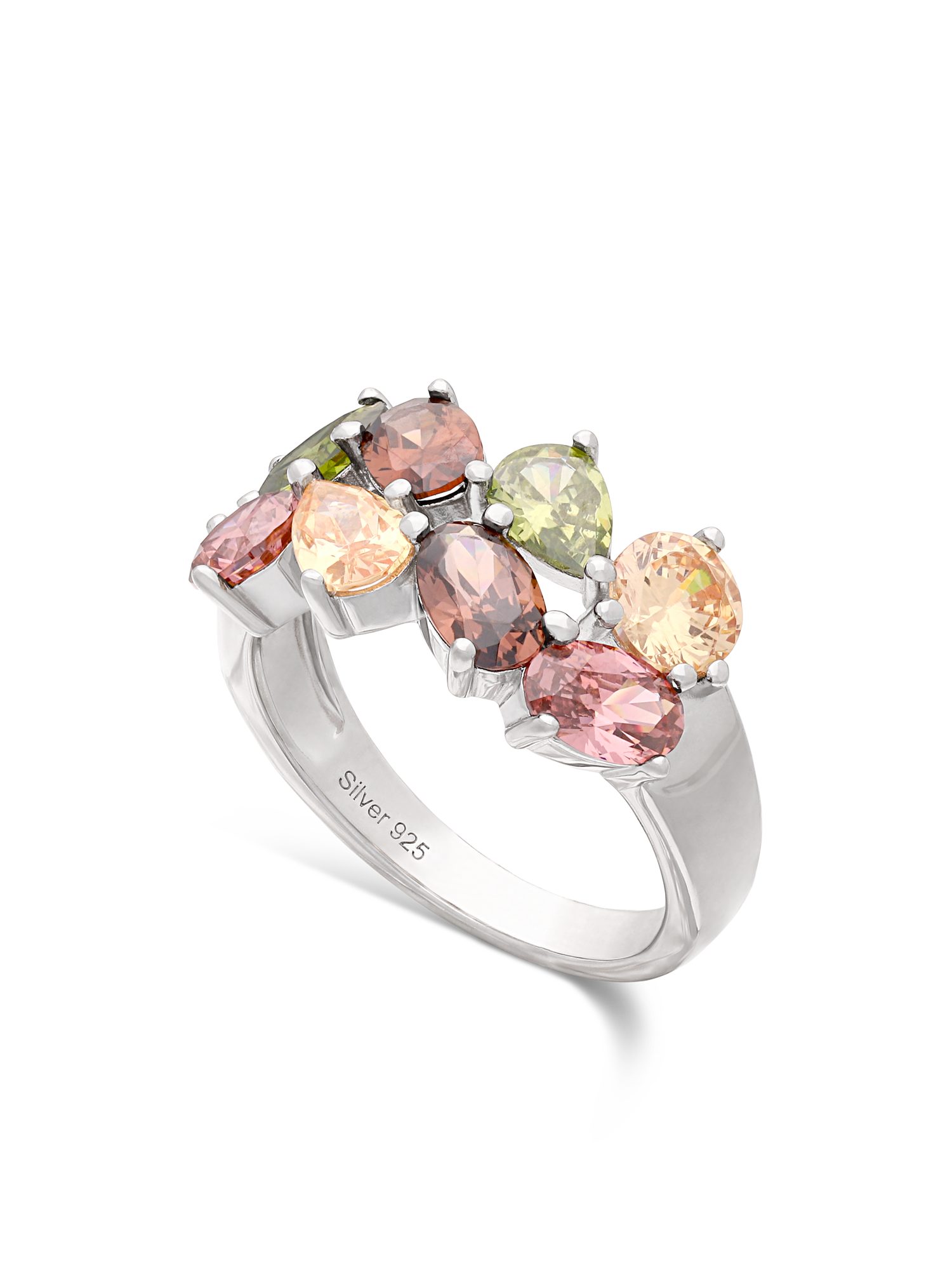 Anel Delicado, Prata de lei 925, Zircónia de cultivo, Colorido, Lágrima, Círculo, Feito à mão,, Prateado, 4.76 gramas.