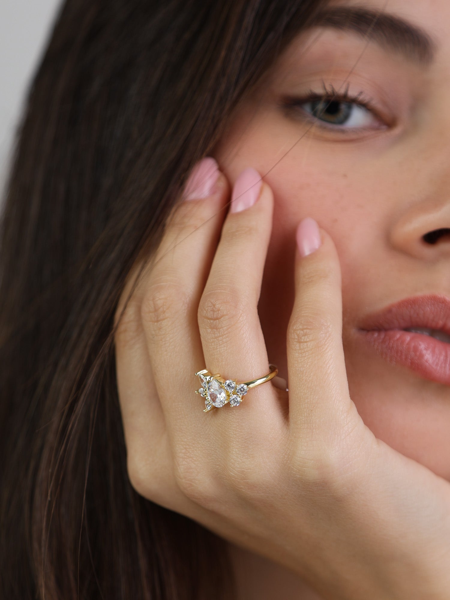 Anel Delicado, Banhado a Ouro, Zircónia de cultivo