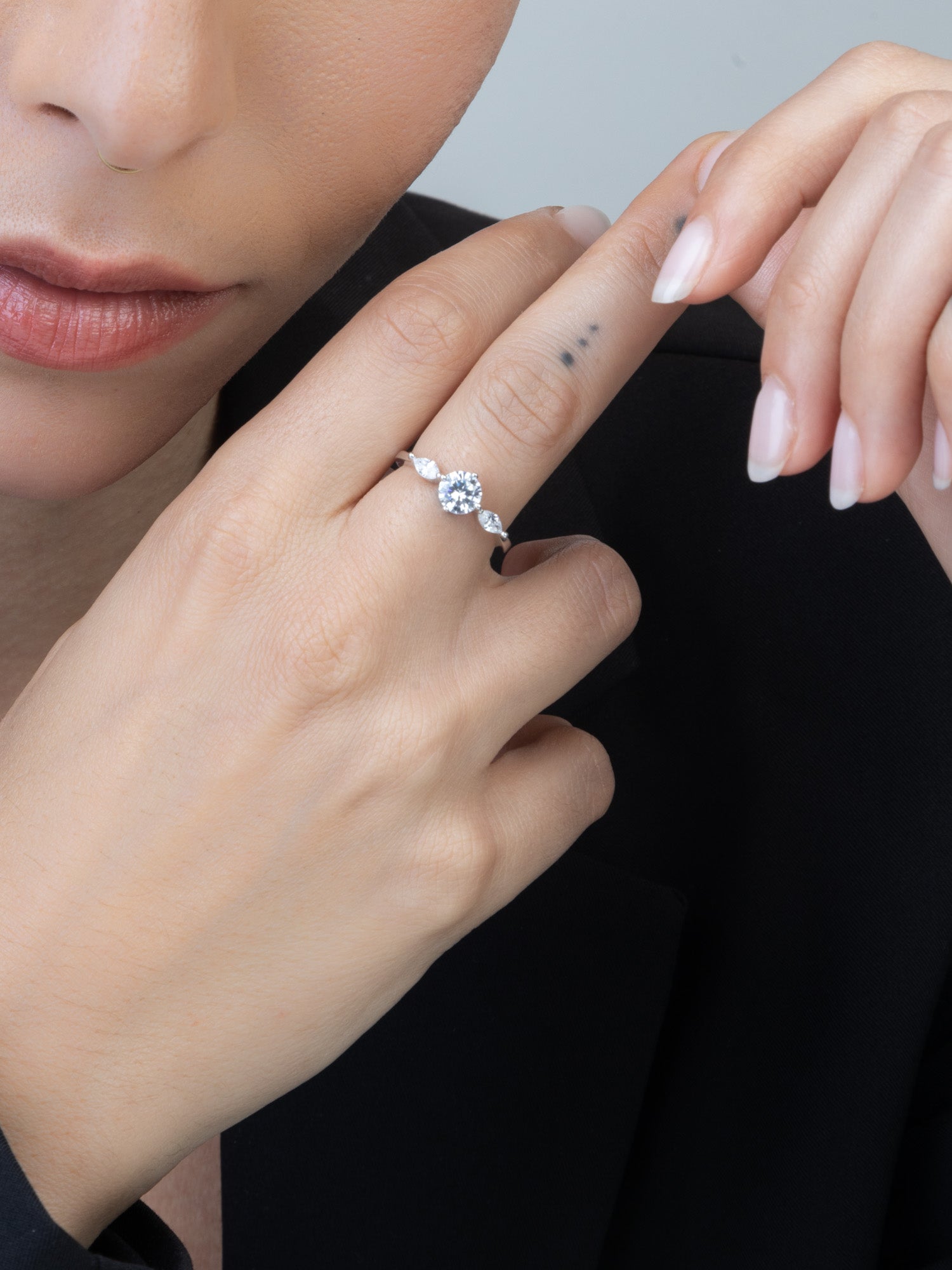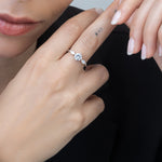 Anel Delicado, Prata de lei 925, Zircónia de cultivo, Claro, Círculo, Feito à mão,, Prateado, 2.16 gramas.