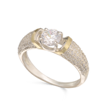 Anel Delicado, Prata de lei com ouro 9K, Zircónia de cultivo, Claro, Círculo, Feito à mão,, Dois tons, altura do anel: 0.5 cm, Largura do anel: 0.6 cm, 3.50 gramas.