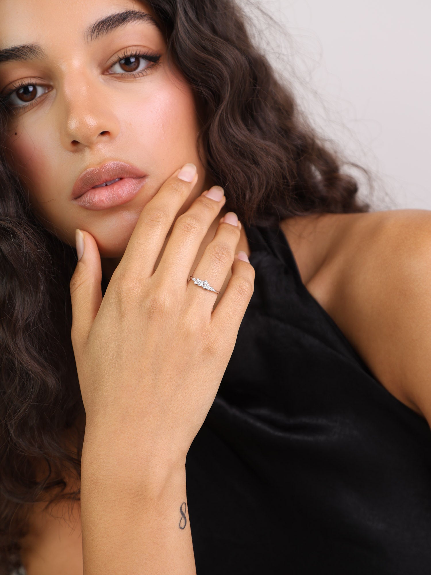 Anel Delicado, Prata de lei 925, Zircónia de cultivo, Claro, Círculo, Feito à mão, Prateado, 1.28 gramas.