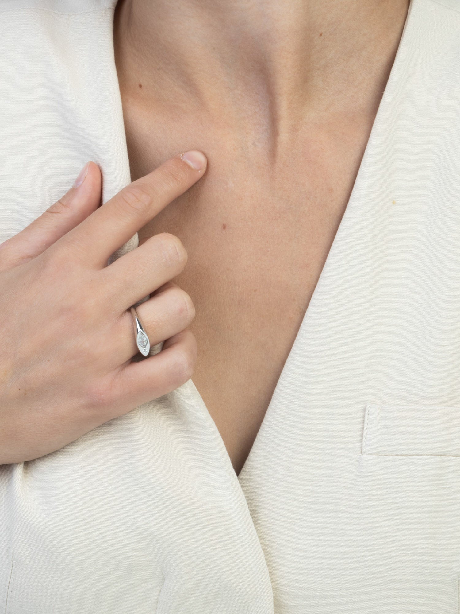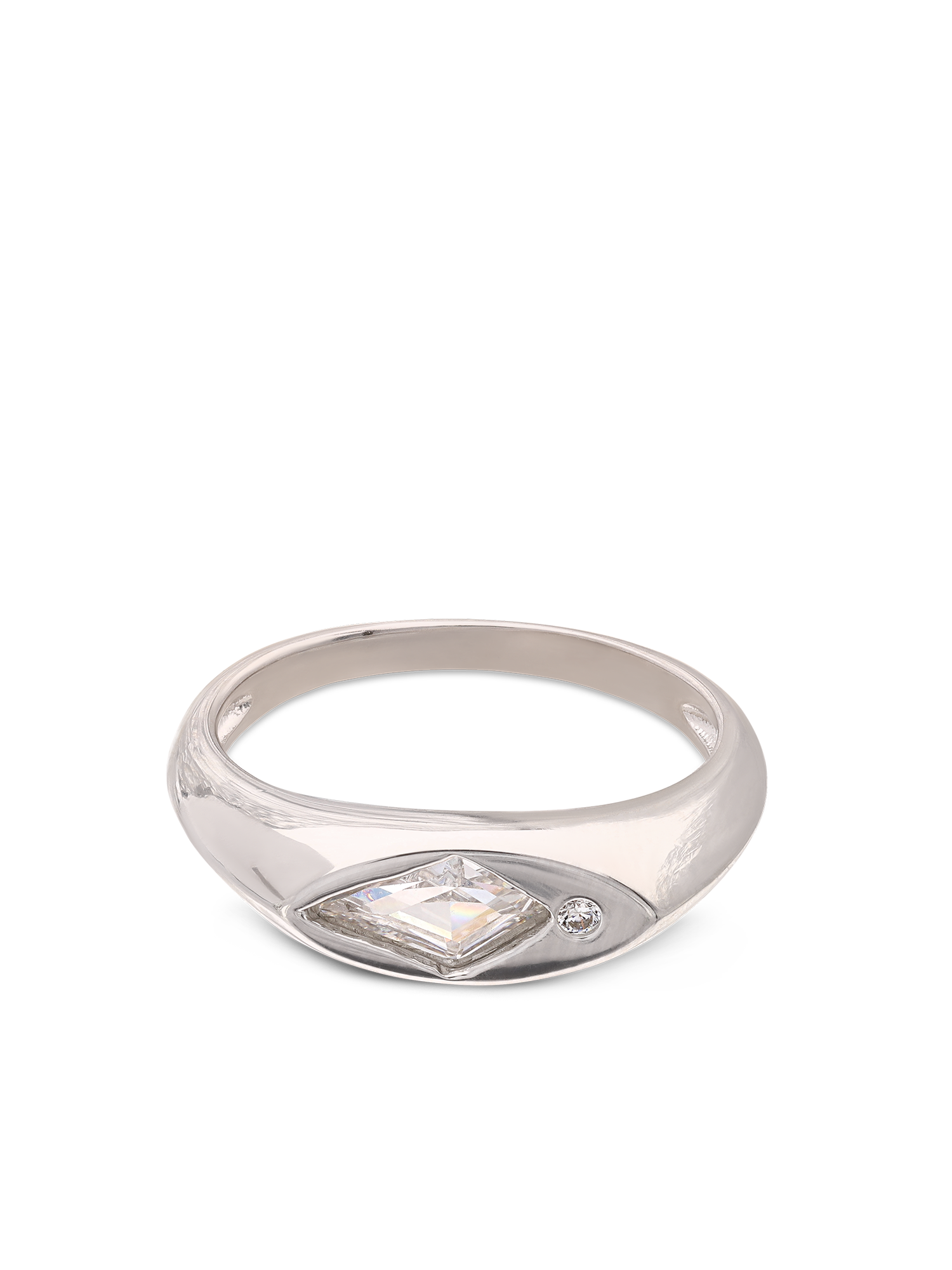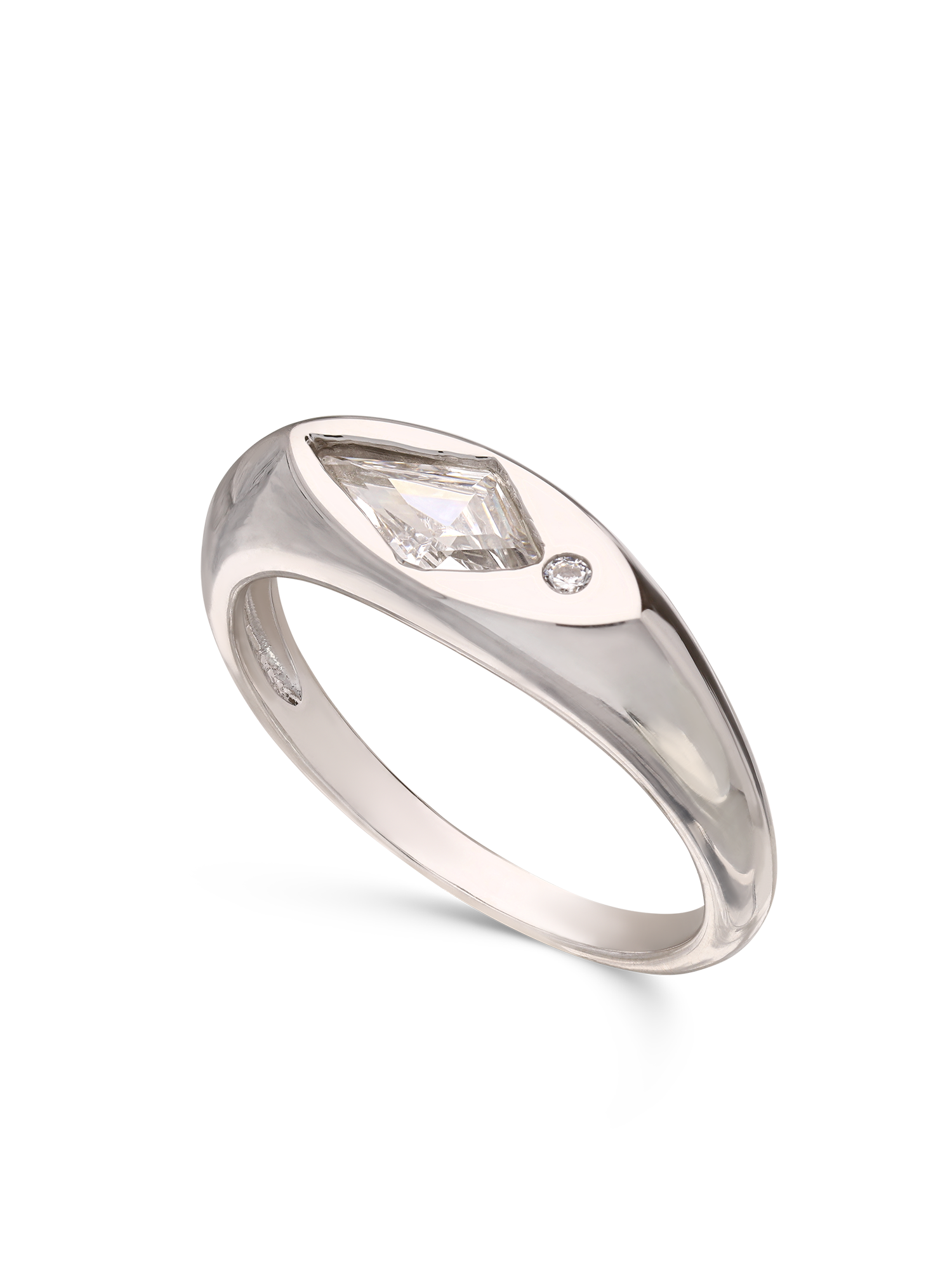 Anel Delicado, Prata de lei 925, Zircónia de cultivo, Claro, Quadrado, Feito à mão,, Prateado, 3.12 gramas.