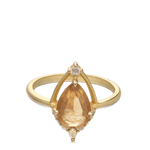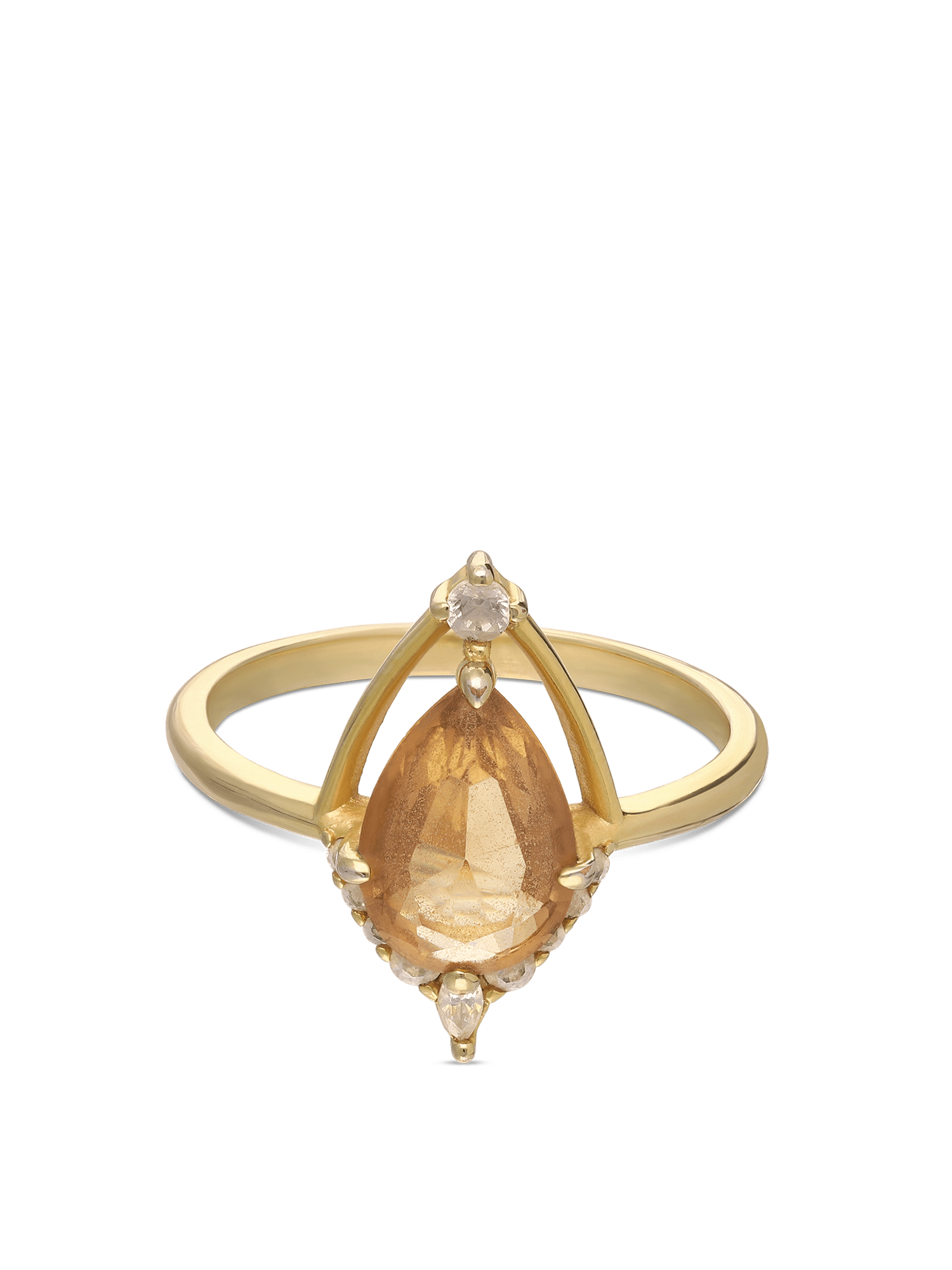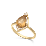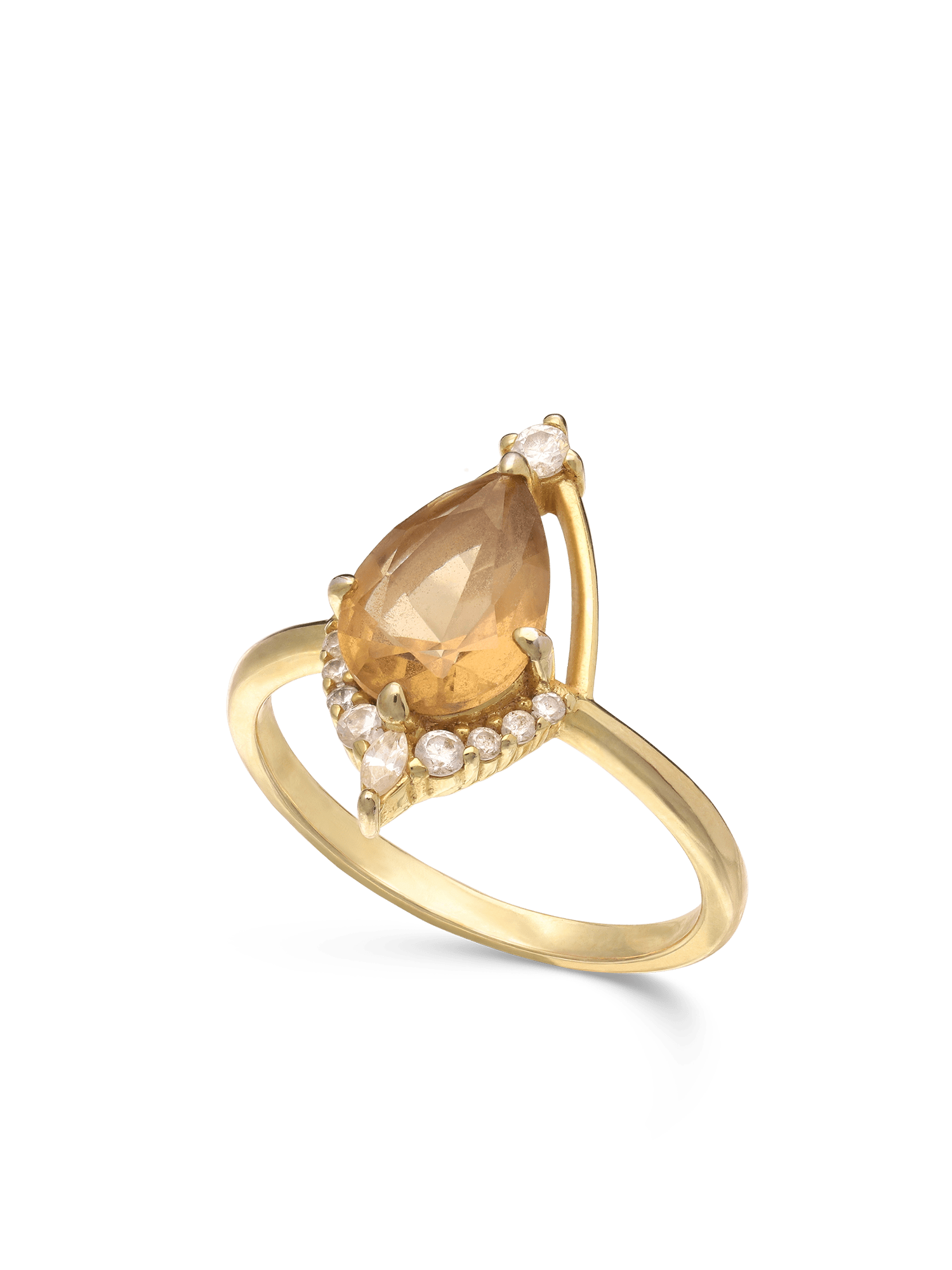 Anel Delicado, Banhado a Ouro, Zircónia de cultivo, Claro, Castanho, Lágrima, Feito à mão, Dourado, 2.15 gramas.