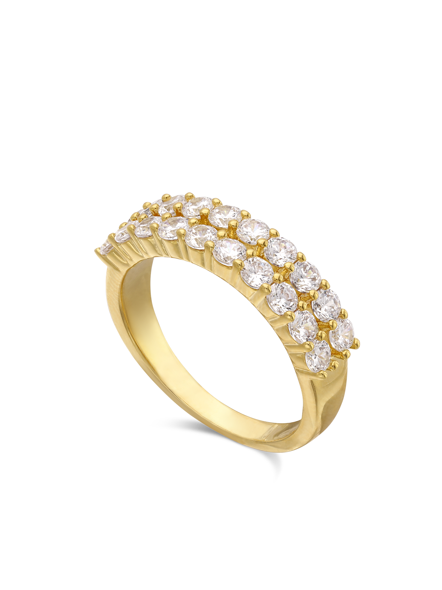 Anel Delicado, Banhado a Ouro, Zircónia de cultivo, Claro, Círculo, Feito à mão,, Dourado, 3.68 gramas.