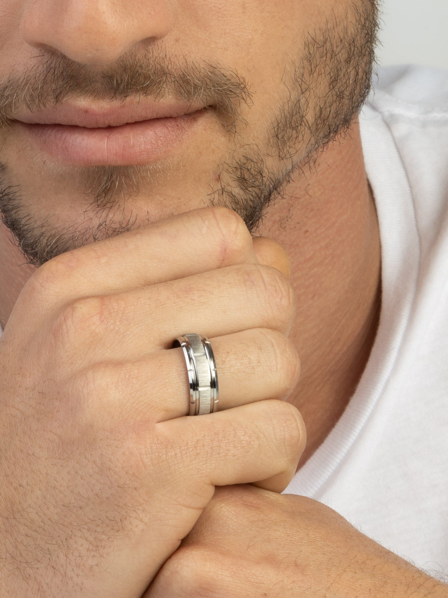 Anel masculino, Aço inoxidável, Nenhuma pedra, Sem cor, Forma não específica, Prateado, 5.00 gramas.