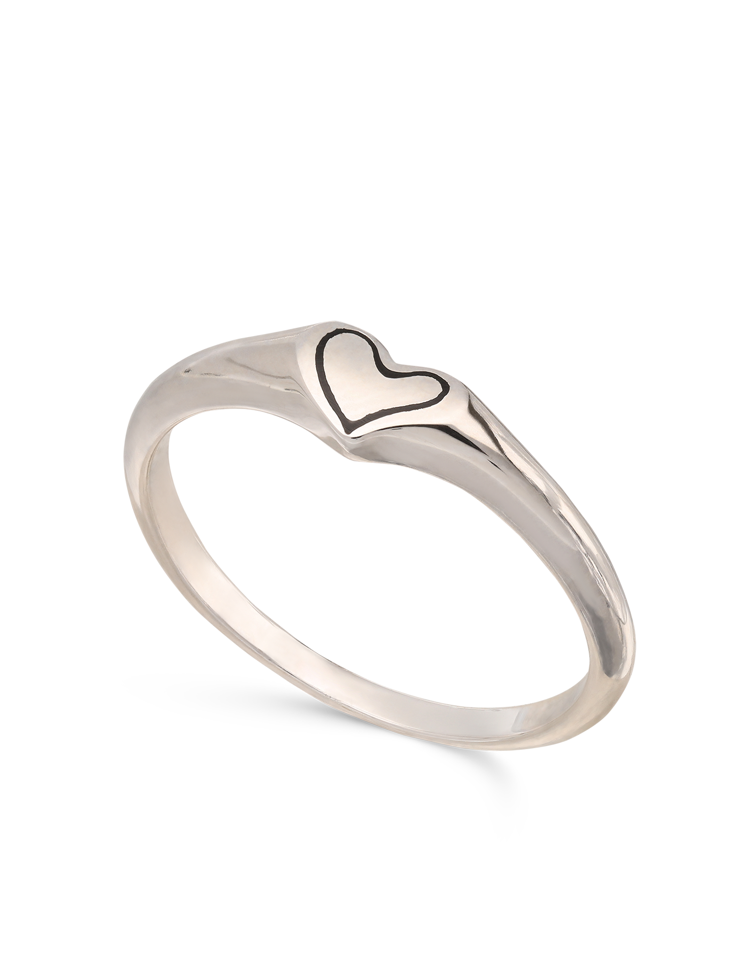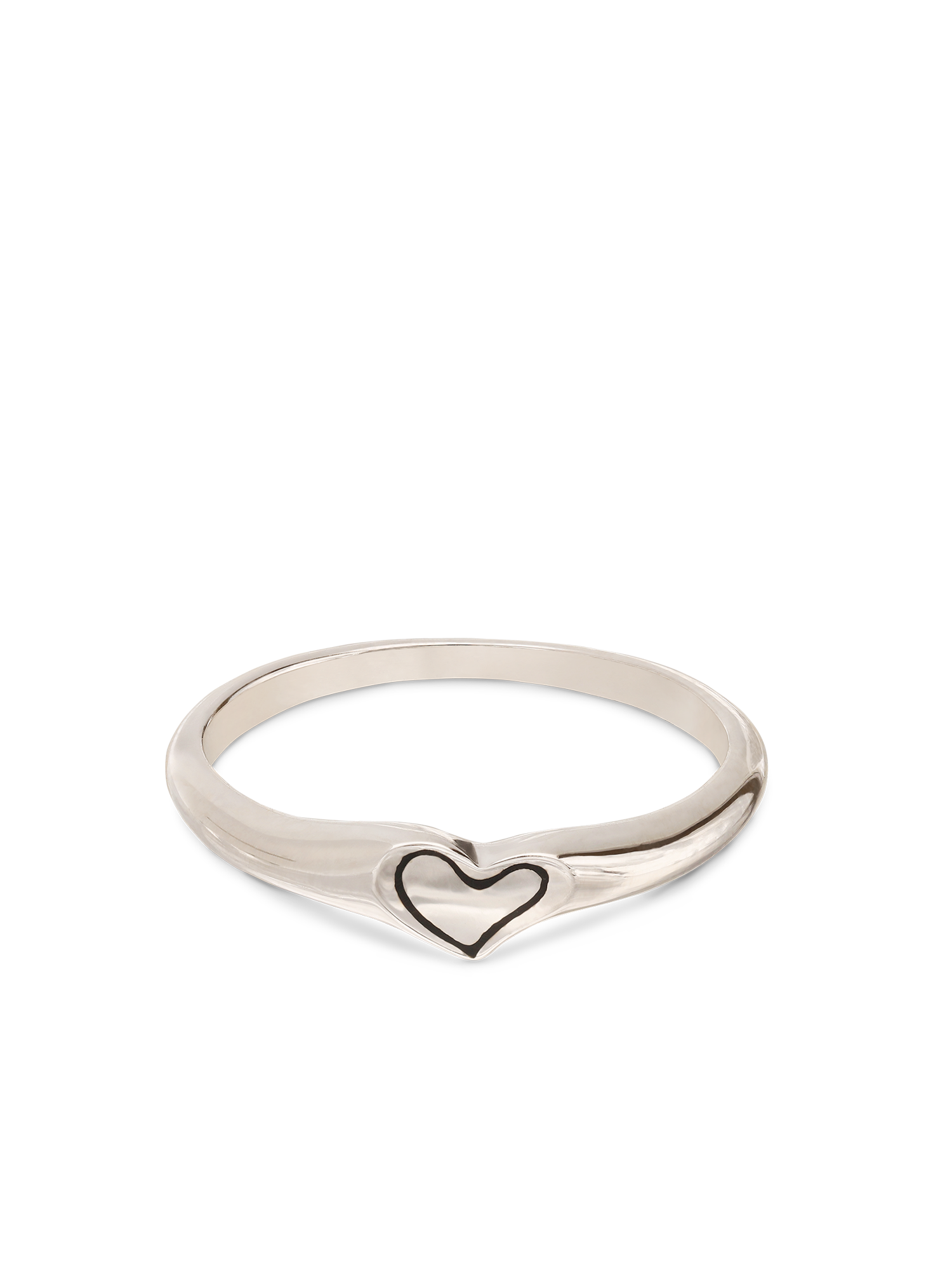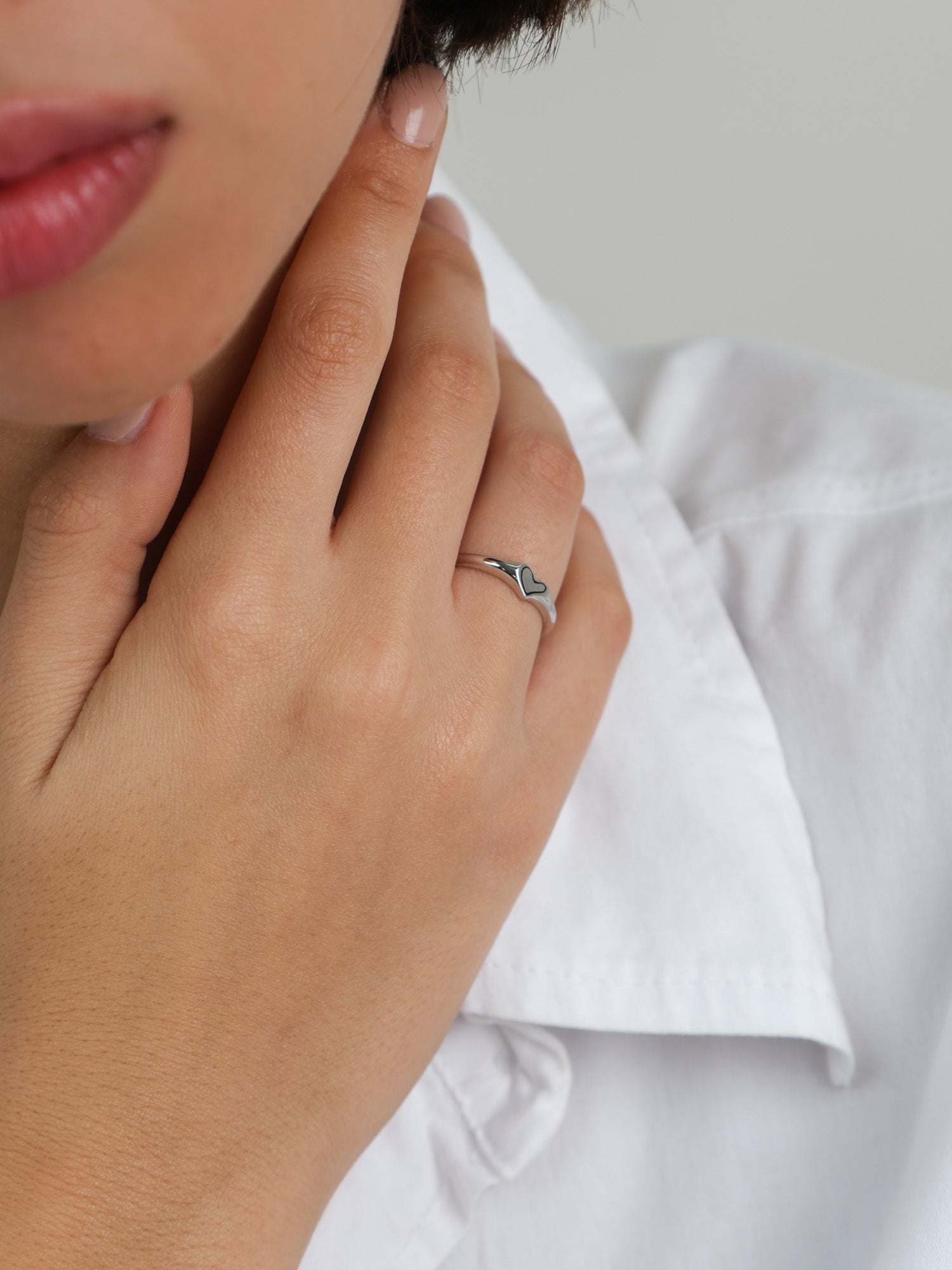 Anel Delicado, Prata de lei 925, Esmalte, Preto, Coração, Feito à mão,, Prateado, 1.30 gramas.