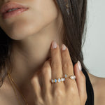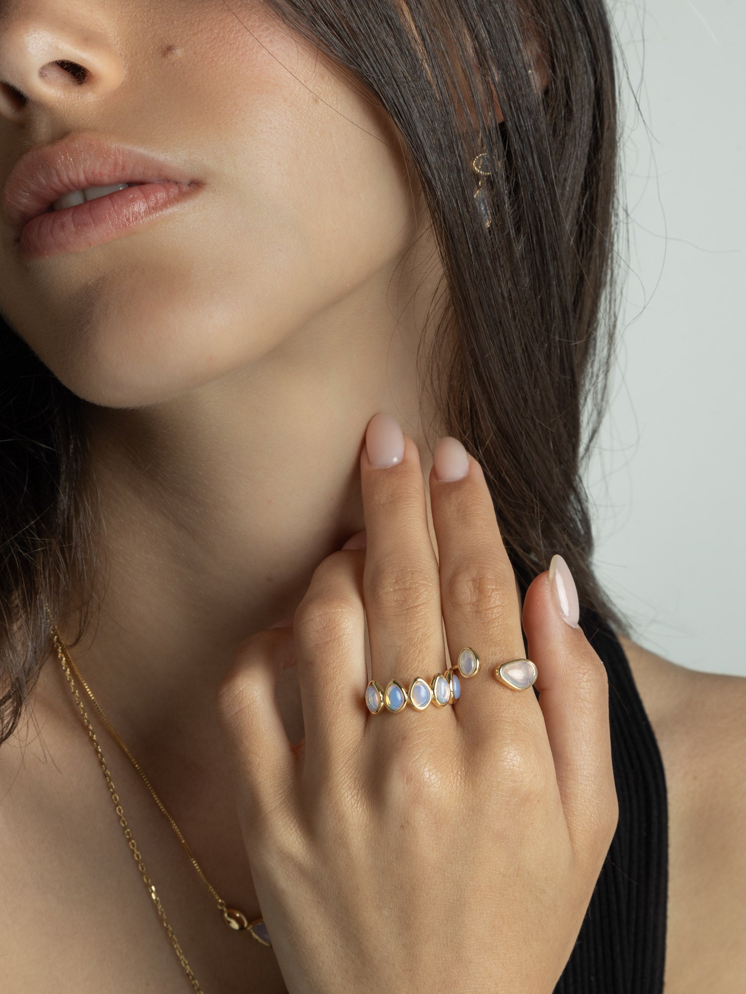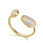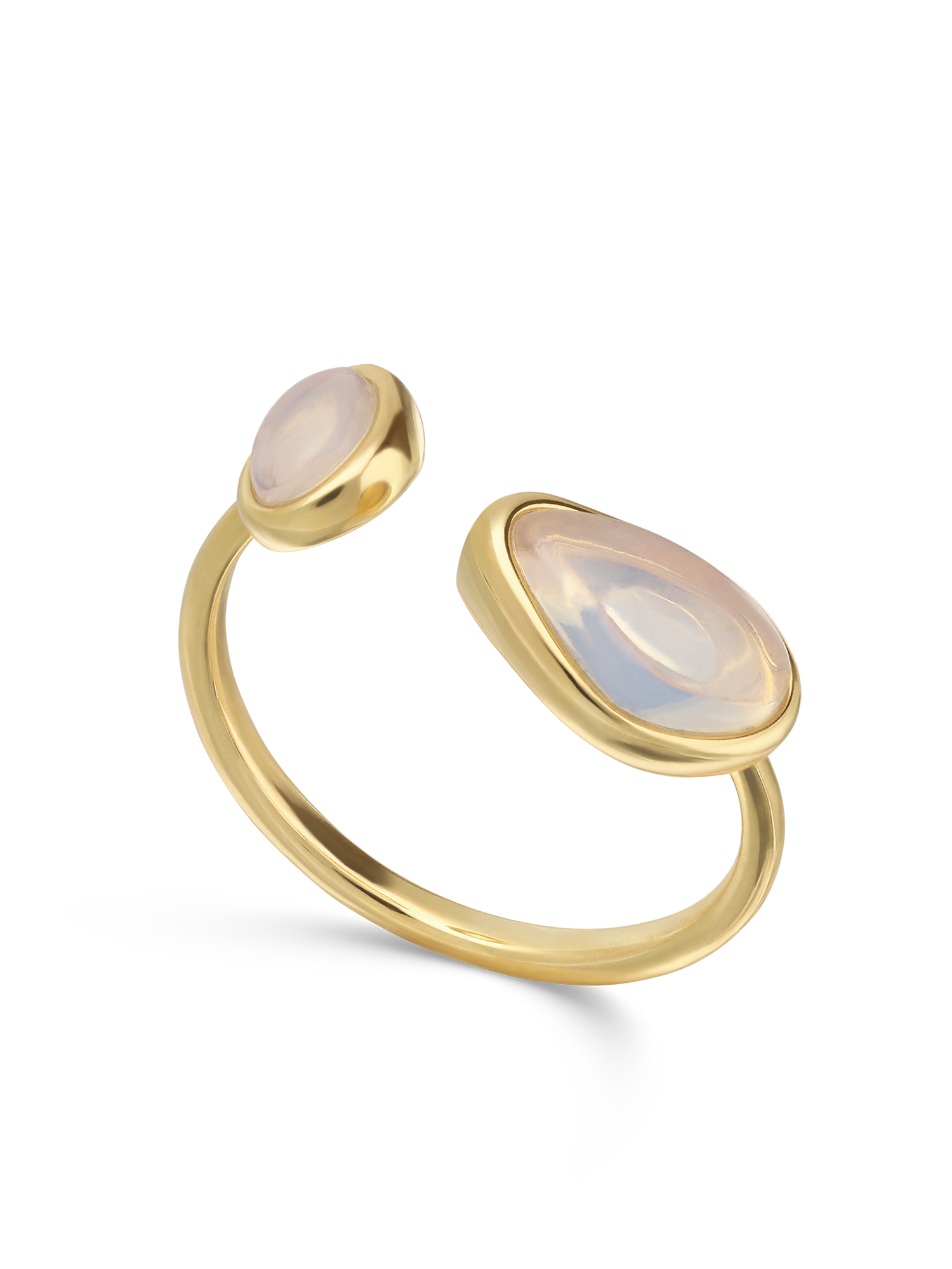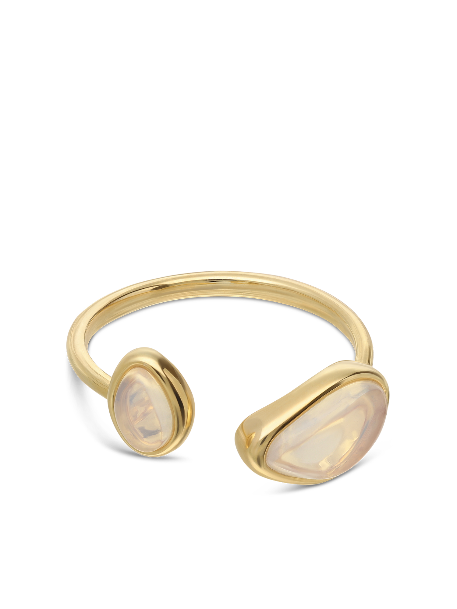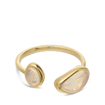 Anel Delicado, Banhado a Ouro, Opalite de cultivo, Branco, Seixos, Feito à mão,, Dourado, 1.82 gramas.