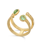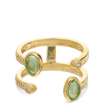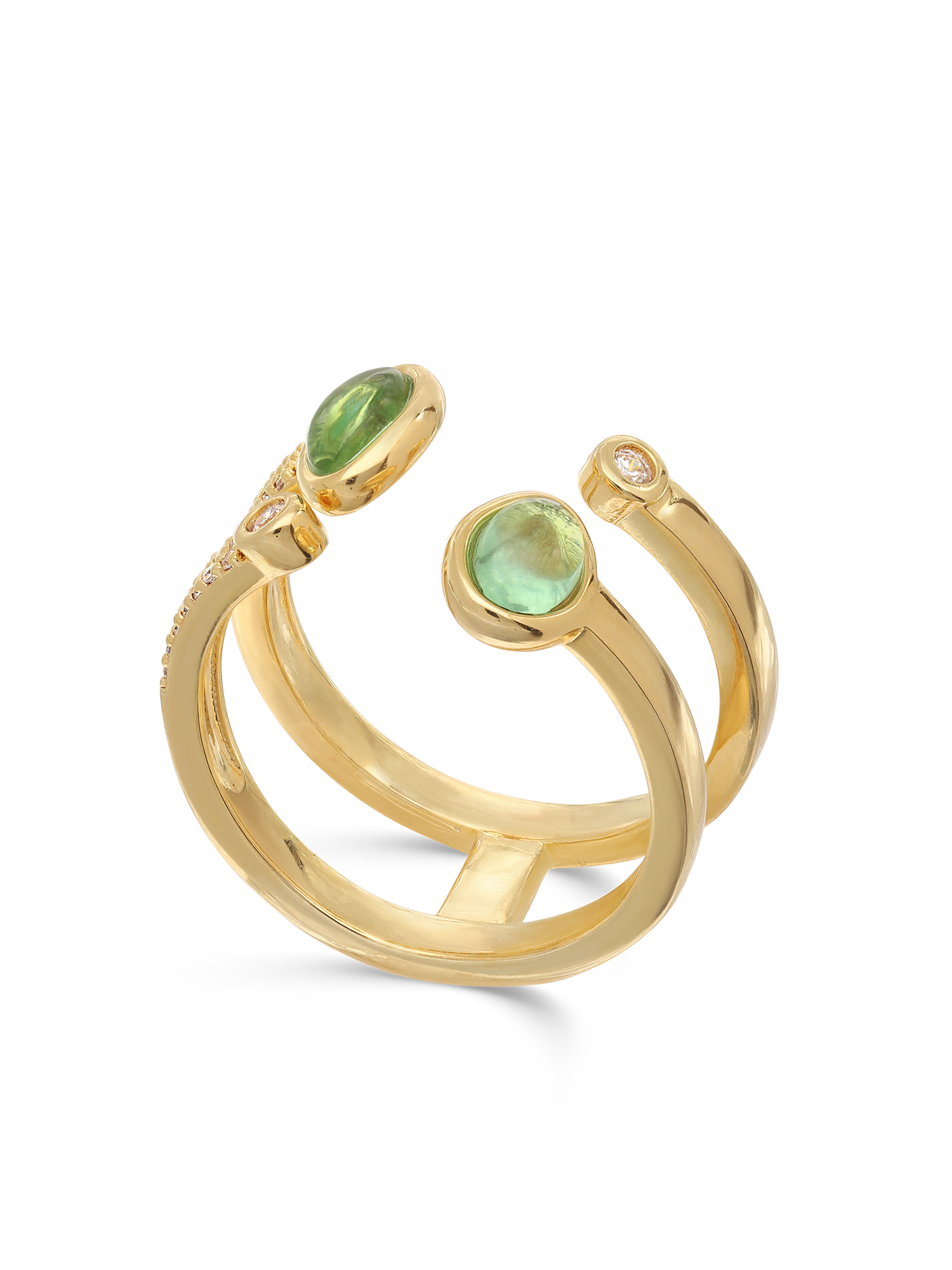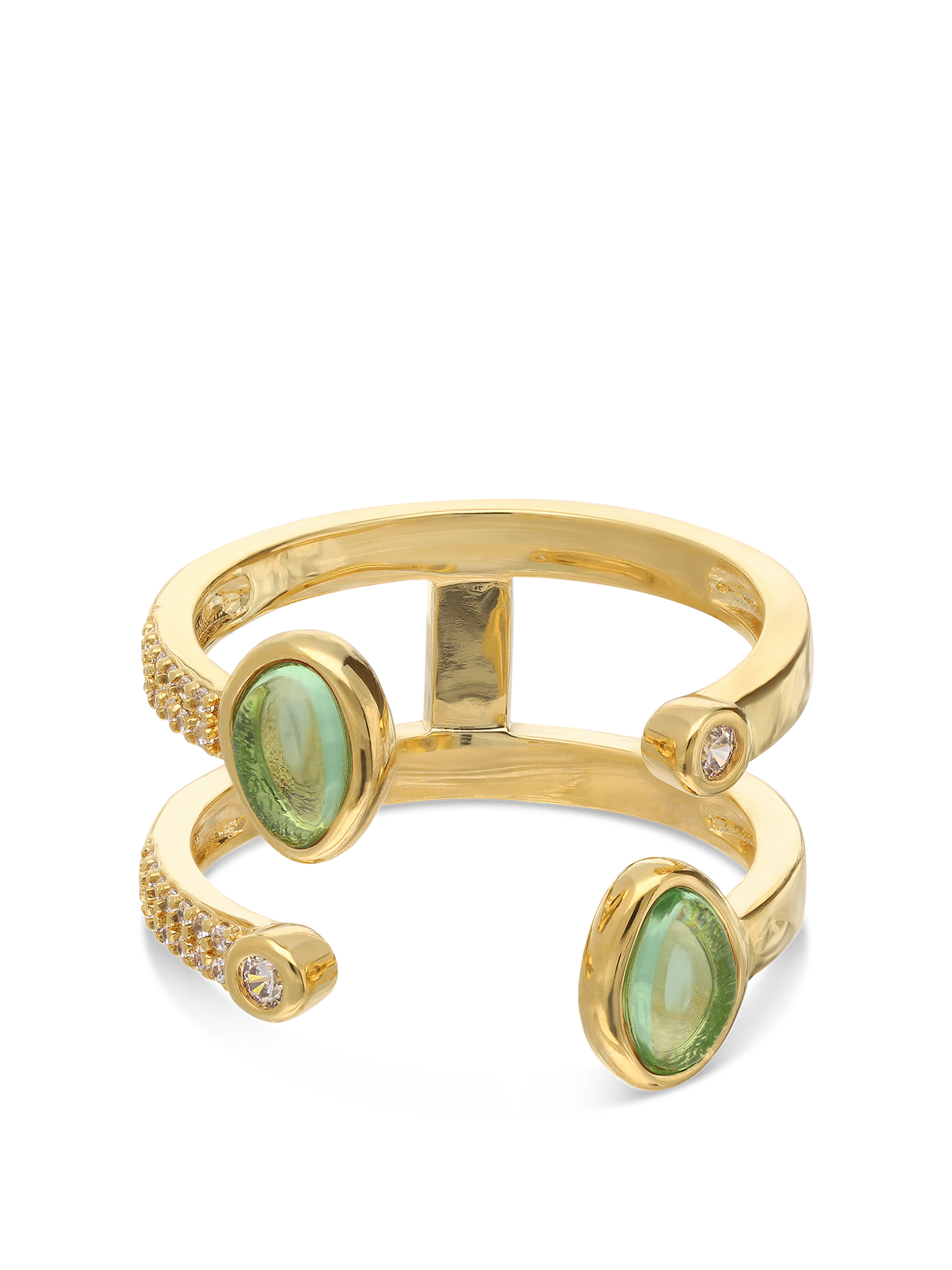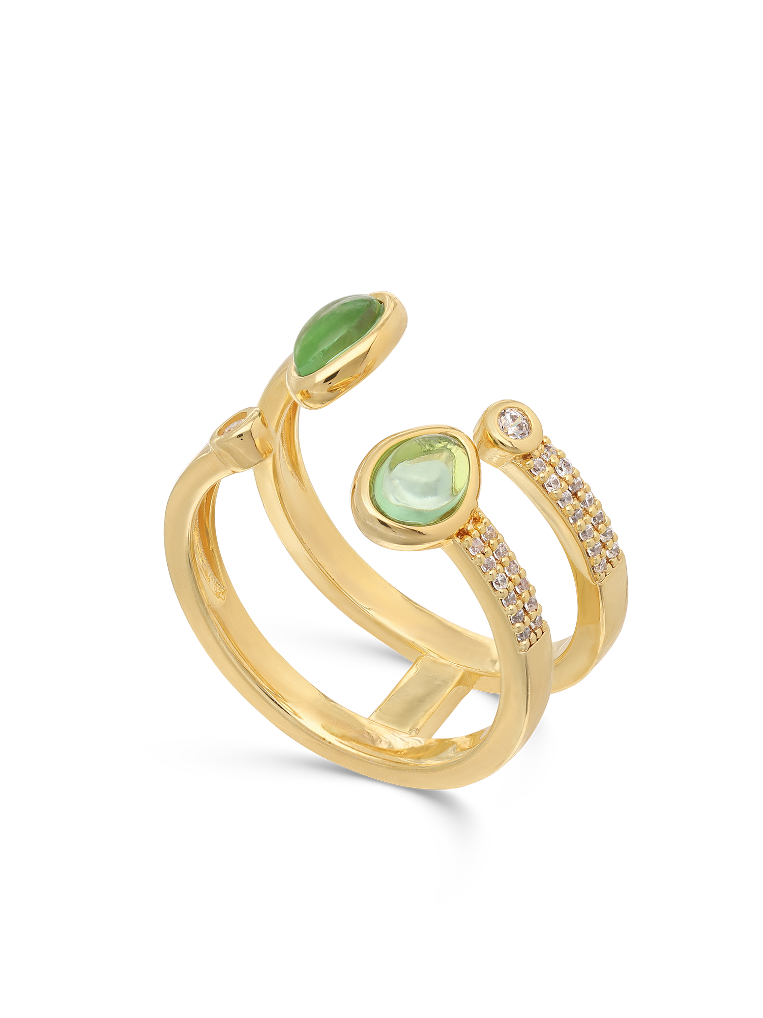 Anel delicado banhado a ouro com zircónia e vidro cristal verde
