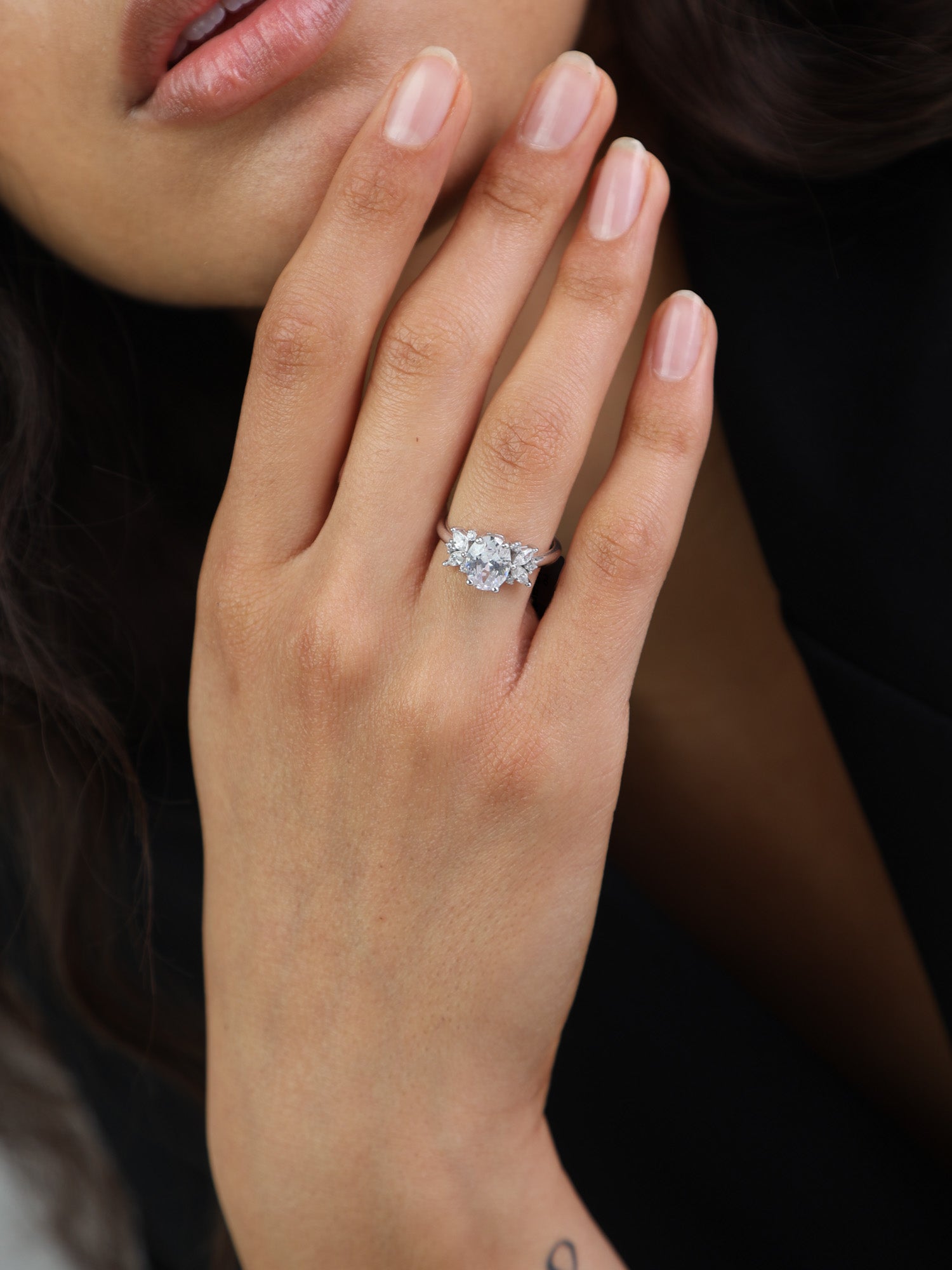 Anel Delicado, Prata de lei 925, Zircónia de cultivo, Claro, Variedade de formas, Feito à mão, Prateado, 3.10 gramas.