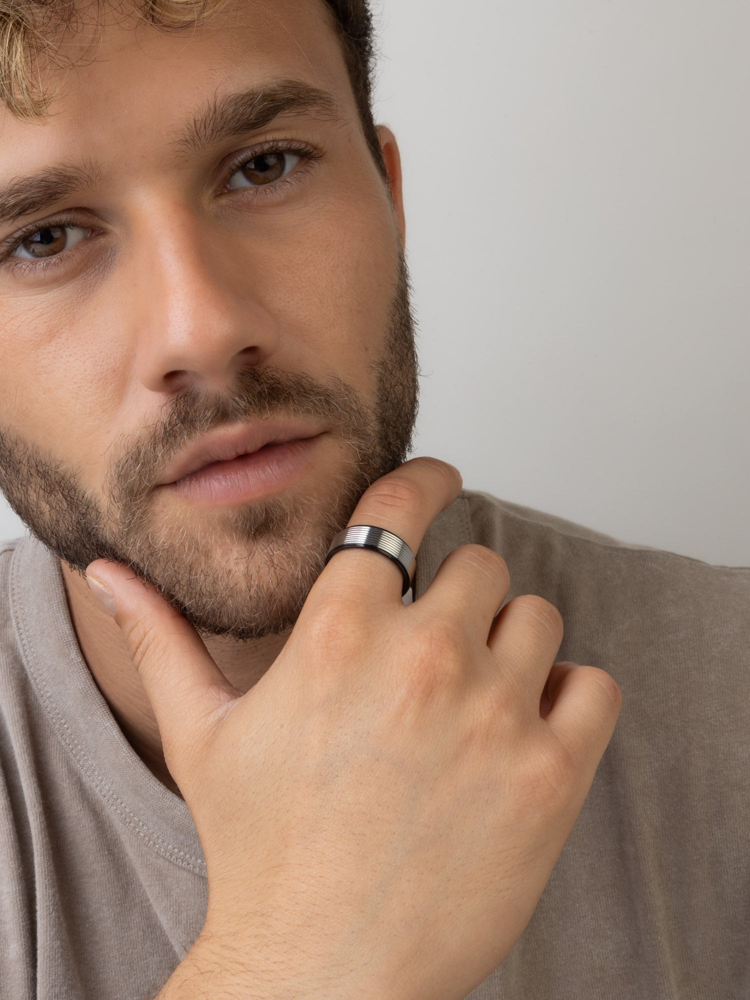 Anel masculino, Aço inoxidável, Nenhuma pedra, Sem cor, Forma não específica,, DOIS TONS, 7.00 gramas.