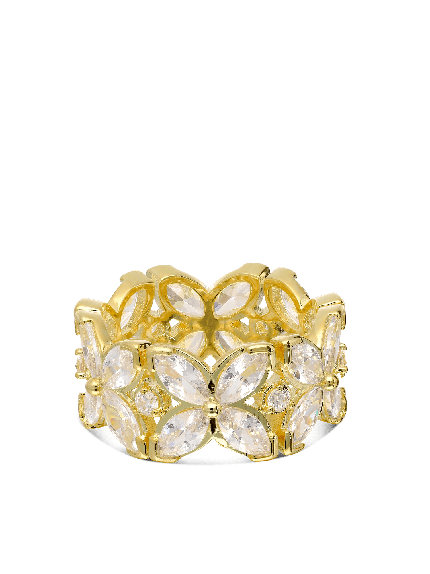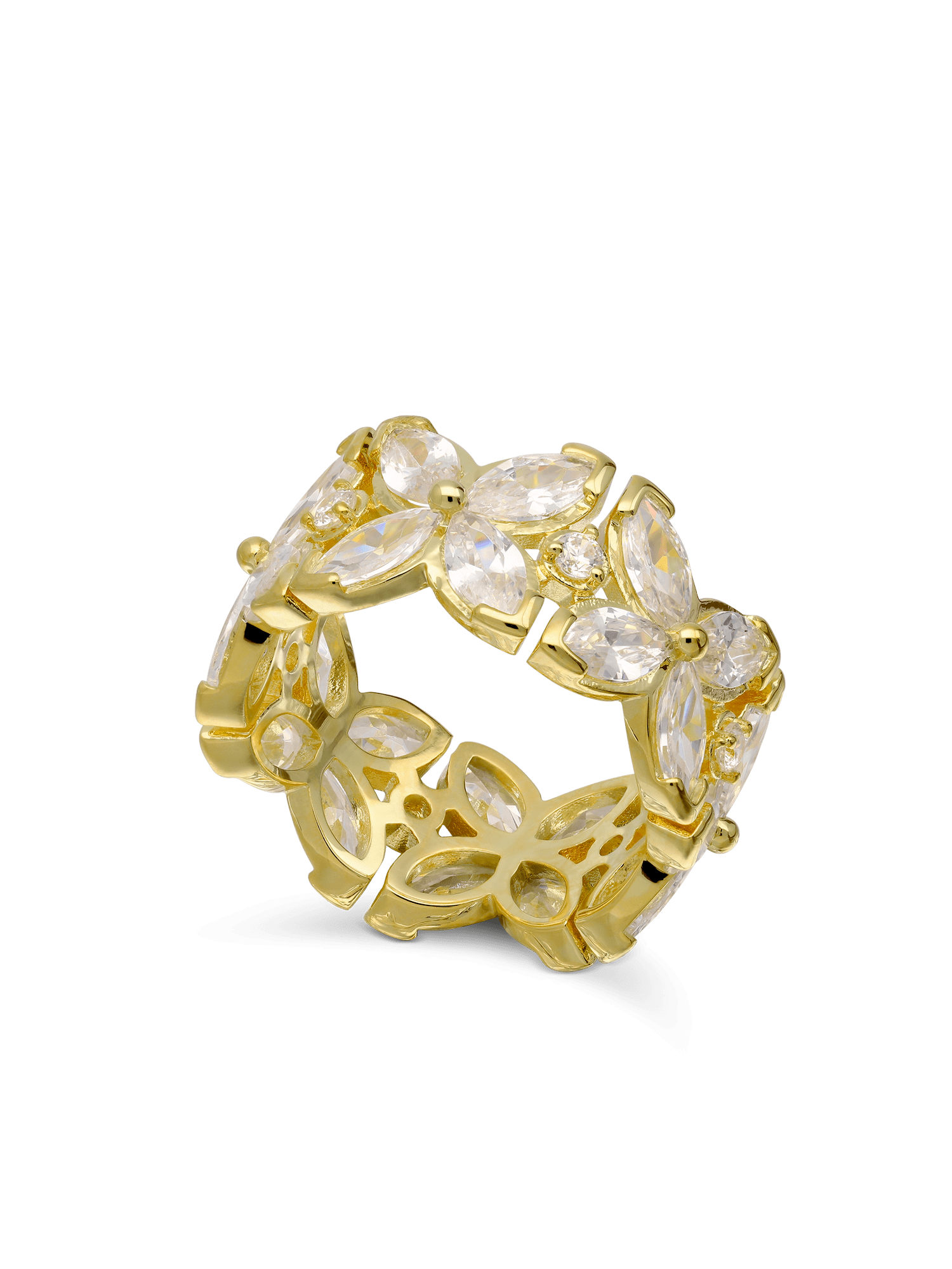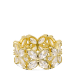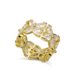 Anel Grande, Banhado a Ouro, Zircónia de cultivo, Claro, Flor, Feito à mão, Dourado, 5.20 gramas.