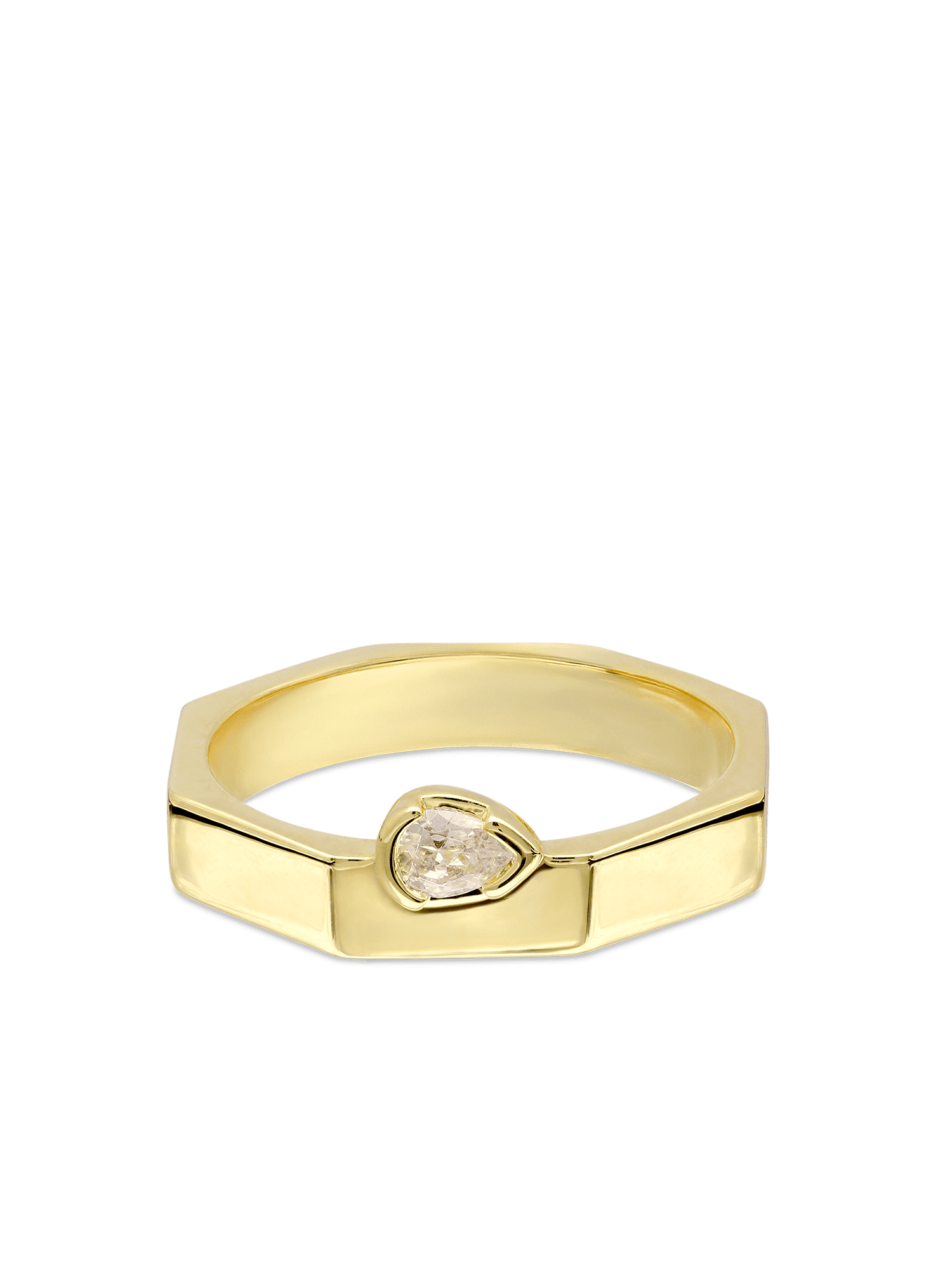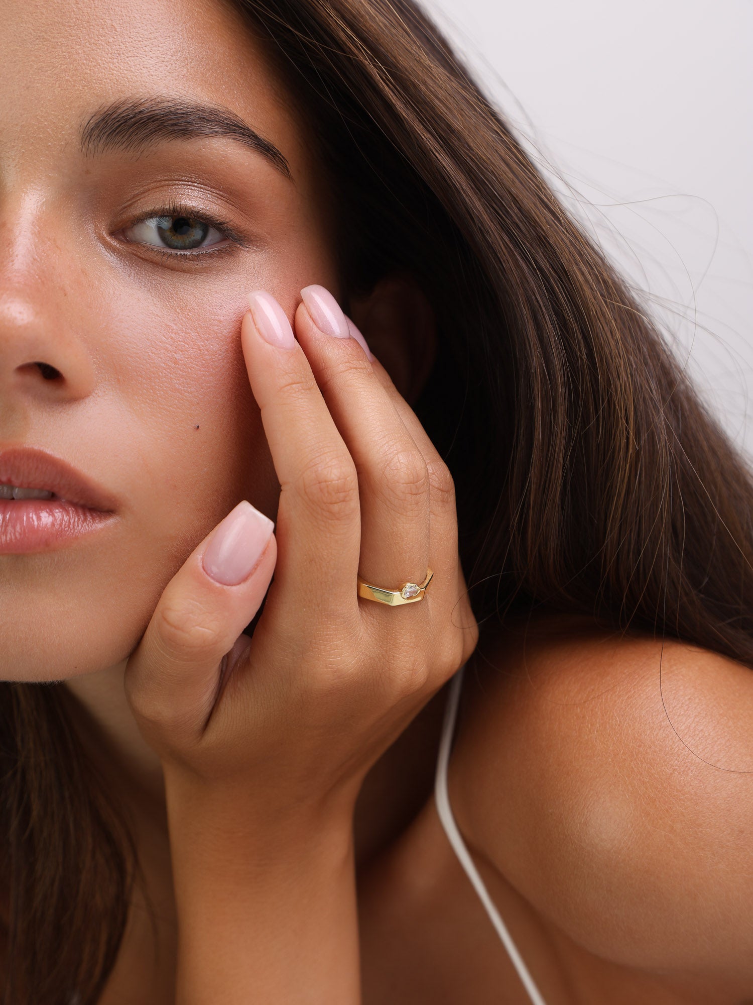 Anel Delicado, Banhado a Ouro, Zircónia de cultivo, Claro, Lágrima, Feito à mão, Dourado, 2.68 gramas.