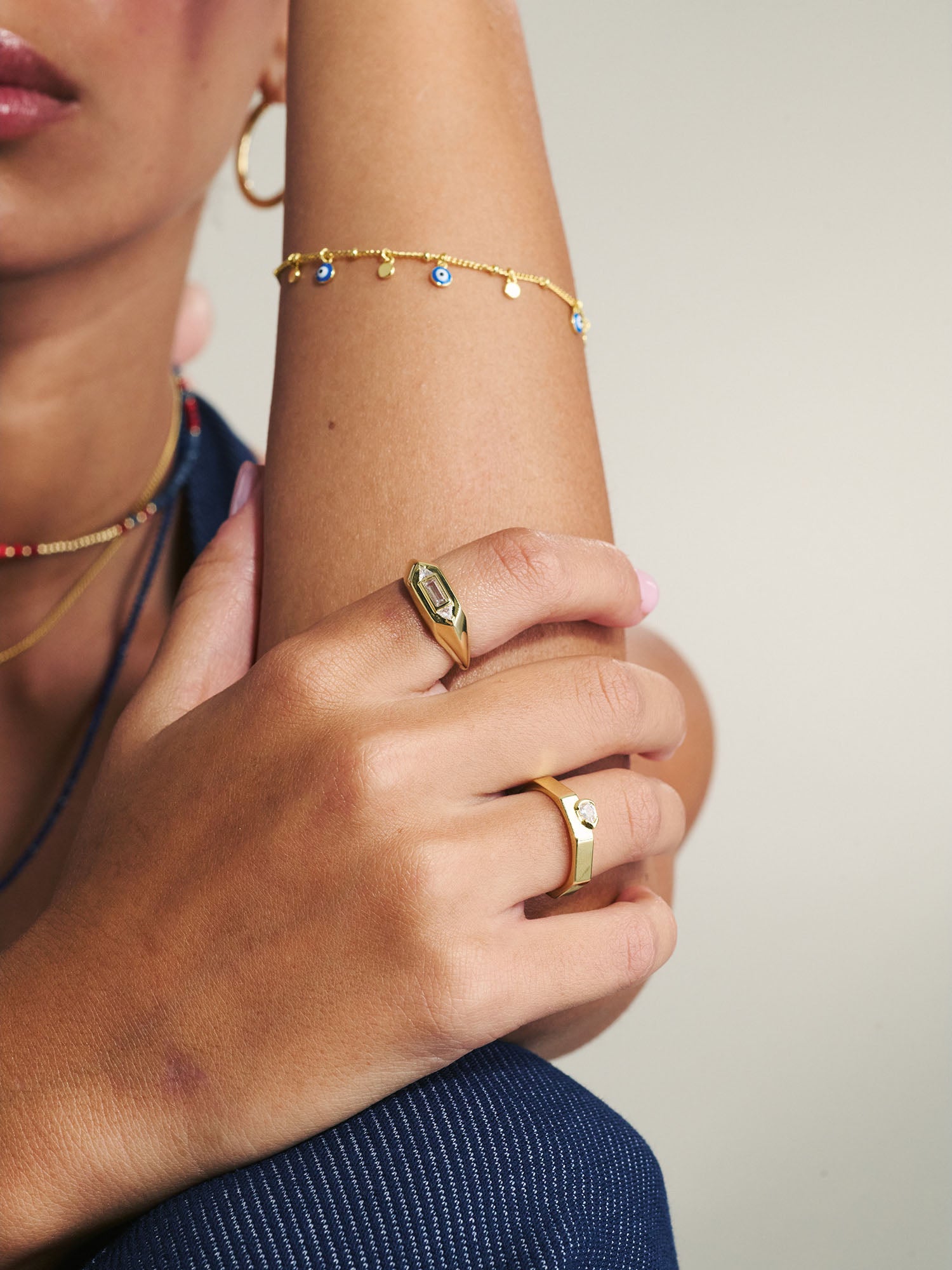 Anel Delicado, Banhado a Ouro, Zircónia de cultivo, Claro, Variedade de formas, Feito à mão, Dourado, 3.45 gramas.