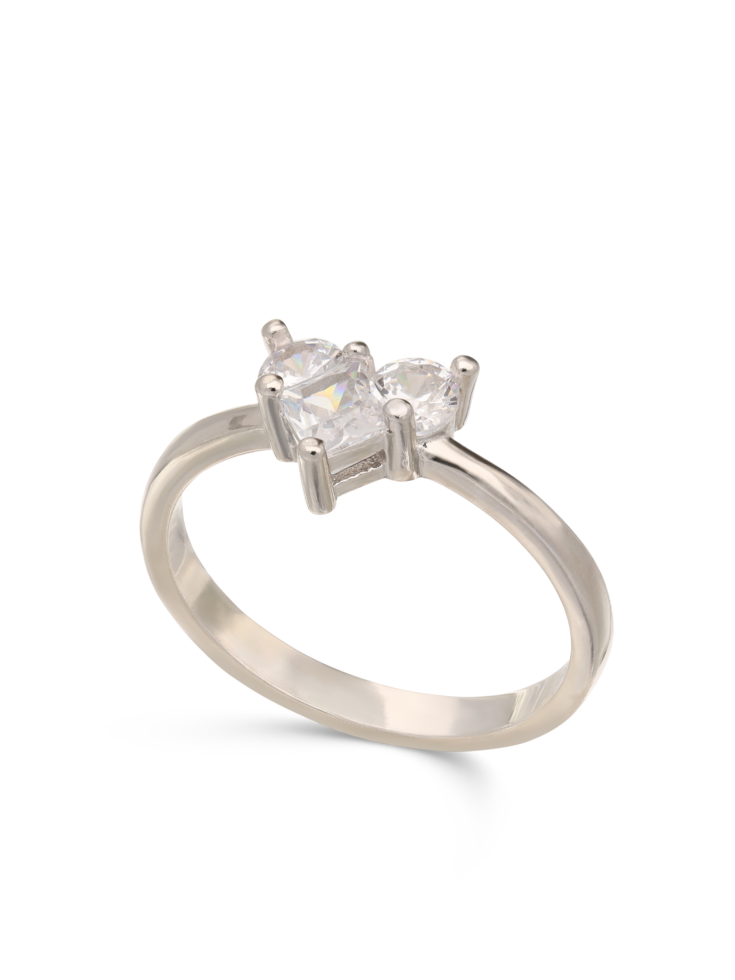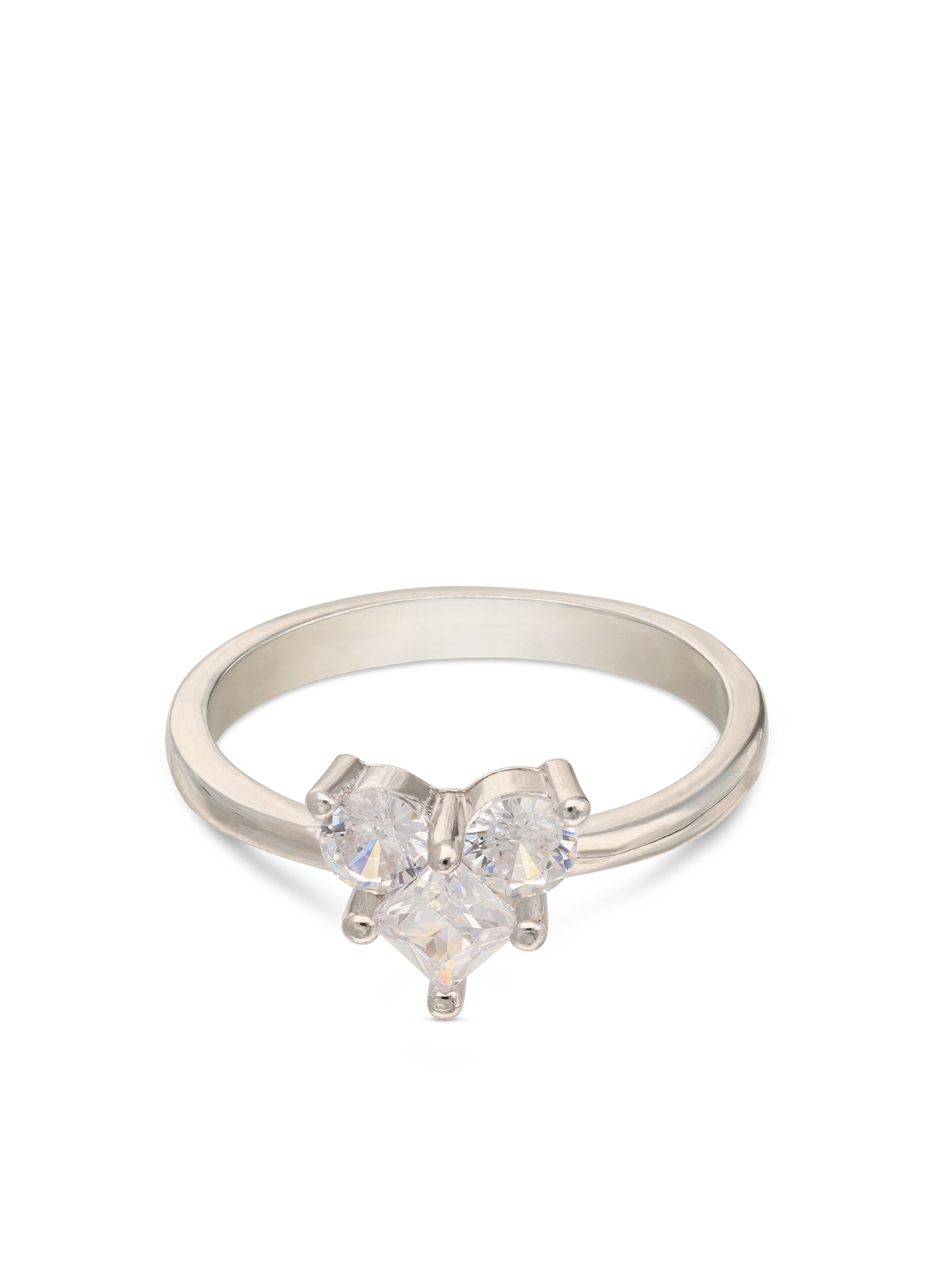 Anel Delicado, Prata de lei 925, Zircónia de cultivo, Claro, Coração, Feito à mão, Prateado, 1.90 gramas.